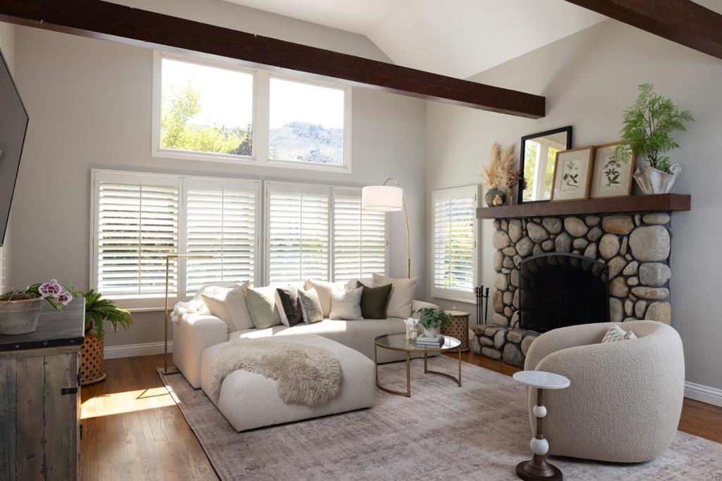 Nestled on a beautifully landscaped acre in the heart of sunny Mid Carmel Valley, this remodeled 3,500 sq. ft. modern farmhouse combines style, luxury, and functionality. Featuring 4 bedrooms, 2.5 baths, and an open, flowing floor plan, this home offers abundant space for both everyday living and entertaining. The home features abundant natural light due to its southern exposure, as well as beautiful mountain views and gorgeous sunsets in the evening. The main level welcomes you with a formal entry, gourmet kitchen, a spacious family room, two bedrooms and more. The grand great room is a showstopper, with hardwood floors, plantation shutters, vaulted and beamed ceilings, and a stunning river rock fireplace. Upstairs, the private primary suite offers a serene retreat, complete with a spa-like bathroom and walk-in closets. The 630 SQ FT 4th bedroom is perfect for multiple uses and has a private deck to take in the breathtaking valley views. Designed for seamless indoor-outdoor living, the property boasts lovely patios, a lush turf lawn, beautiful gardens, a raised vegetable garden, and even a hobby vineyard. With sweeping valley vistas and ample space for entertaining, this home truly offers the perfect Carmel Valley lifestyle!