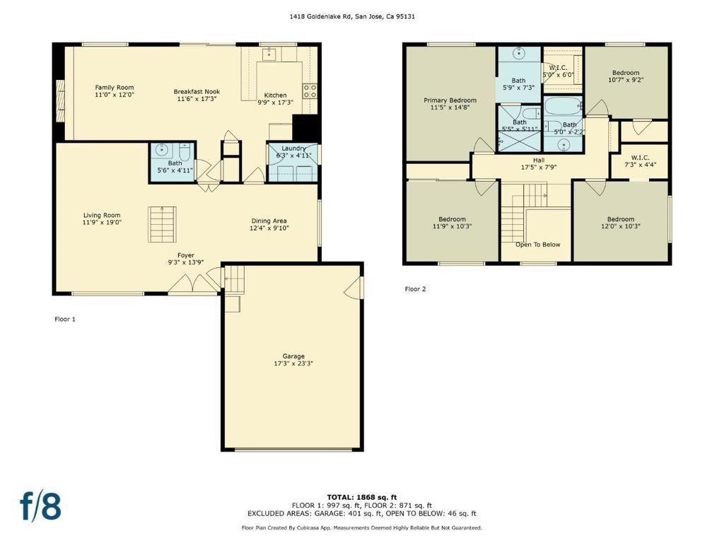 Located in a sought-after and friendly San Jose neighborhood, 1418 Goldenlake Rd is a well-maintained two-story home offering 1,960 sq ft of living space on a spacious 6,000 sq ft lot. This charming residence features 4 bedrooms and 2.5 bathrooms, and is known for its great bones and lasting quality. Enjoy the convenience of being in close proximity to parks and schools, making it an ideal spot for families. Commuters will appreciate the easy access to highways 680, 880, and 101, as well as nearby BART stations, the airport, shopping centers, and a variety of restaurants, bringing both comfort and convenience to everyday living. Dont miss this great opportunity to own a beautiful home in one of San Joses most desirable neighborhoods!