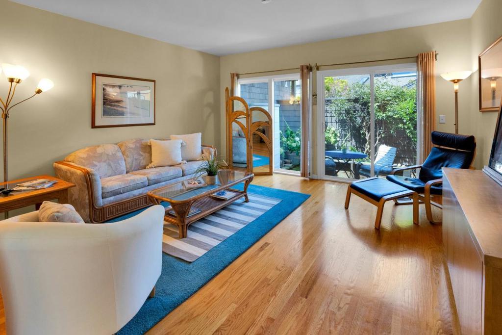 Oceanviews from this unit in sought after complex. Rarely on the market and accessible to ocean paths and long stretches of beach. Enjoy the large pool , tennis courts and work out room. Beautiful hardwood floors welcome you in to the French country kitchen and dining area with oceanviews and delightful bird watching on your patio. There is another deck off living room for sitting with a good book. Only the sounds of the ocean and the birds create a place of retreat and relaxation. The 3 bedrooms and 2 baths are upstairs and bathed in light from skylights. The primary bedroom has exceptional oceanviews. Enjoy morning coffee greeted by a view .There are two HOA's. Total monthly is $775 plus $333.Sunrise to sunset views from the cliff just steps from this unit. As a part of Los Barrancos you have use of large pool, spa and tennis/sports courts, just a short walk from the unit. This is a gated community. The Trestle Beach townhomes also have carport parking and a clubhouse with gym and work out space .From the cliff walk you can access a locked gate only available to Trestle Beach homeowners that goes down to the long stretches of beach. This is truly a secret treasure that not many people are aware of. Convenient to Seascape area shops and restaurants.