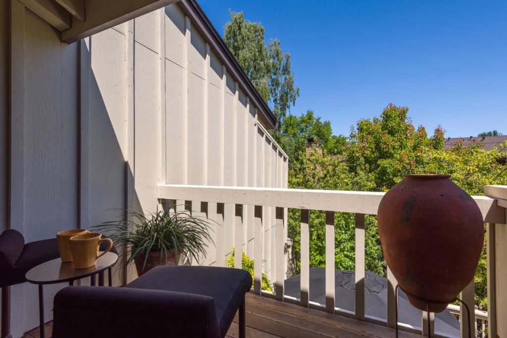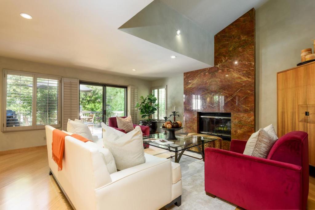 GREAT NEW PRICE REDUCTION! Remodeled and on the market for the first time, this two-story end-unit townhome offers stylish living in a peaceful garden setting in desirable Sharon Hills community. Bamboo floors, designer finishes, and an open concept layout enhance the main level with spacious living room, formal dining room, designer kitchen and expanded rear deck for indoor/outdoor living. Upstairs, the primary suite includes a private deck and spa-like bath plus there are two additional bedrooms, one customized for office use. Garden vistas fill every room and there is a community pool, spa, and tennis court. The location is ideal just minutes from Sand Hill Road venture capital centers, Stanford University, and top-rated Las Lomitas schools.