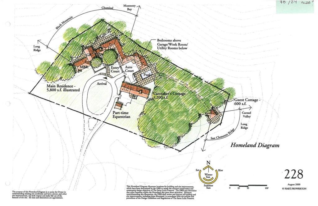 Enjoy your privacy behind secured gates of the Santa Lucia Preserve with mountain and valley views on this 45+- acre sun-drenched homesite. The generous 2.27+- acre homeland allows for a 1+ level main house, guest cottage, ADU, barn for horses, cars or other recreation, and part-time equestrian use. Large grasslands sprinkled with stately oaks create the perfect blend of filtered light, mild temperatures and a diverse living space surrounded by nature. The Preserve is a premier private 20,000-acre community limited to just 300 owners with world-class amenities including a top-rated Tom Fazio golf course, 100 miles of scenic trails, equestrian center, fitness facilities, pools, tennis and pickleball courts, and a serene lake for relaxing, paddling and fishing. Resident services staff, a fire department and paramedics, fuel management plans, a surplus of water storage and additional safety measures are in place for your enjoyment of living in the exquisite natural setting. Experience the perfect balance of seclusion and convenience in this extraordinary community. Utility conduits, water and fiber optics are brought to the lot at the beginning of the homesite.