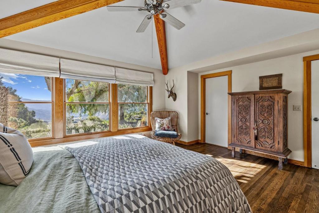 This is an incredible, turnkey home that overlooks the "Pastures of Heaven", which is the setting of John Steinbeck's book of short stories. The home is situated on 3.2 acres with beautiful, oak trees, 1,500 feet above sea level and and has expansive south facing views and a window to Monterey with its sparkling lights at night and the Pacific. The 3,000 sq ft, 4-bedroom, 2.5 bath home was built in 1964 and has been completely remodeled. It is replete with a gourmet kitchen, open living and dining room that walks out to a 400 square foot deck and fireplace with access to spectacular views of the valley below. The home has dark stained oak flooring and gas forced air heating and AC. There are a primary bedroom with an en-suite bathroom and door to the garden and three guest bedrooms that are all spacious and light. One bedroom is currently a home office but can be easily converted back to its original purpose. Additionally there is an 800 sq ft accessory building that could be turned into an ADU. This is country living at its finest with abundant wildlife and large surrounding ranches, while being very close to local amenities. Pebble Beach, Carmel & Monterey are all close by with world class golf and restaurants. Come and enjoy this wonderful lifestyle!