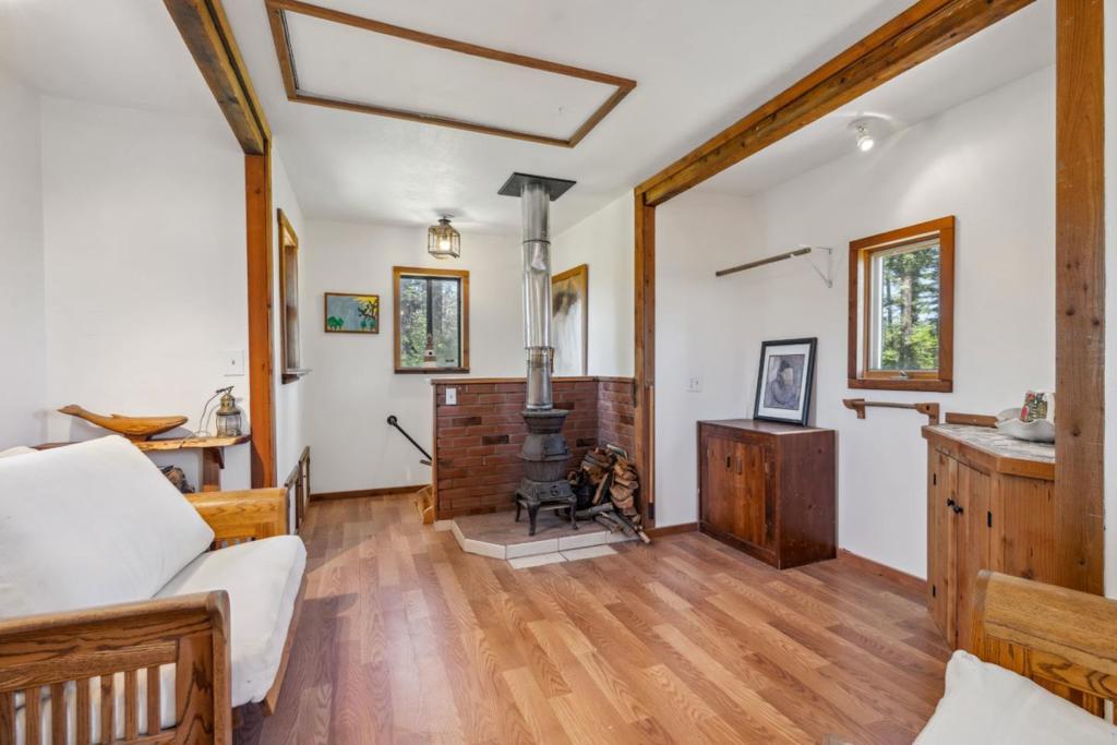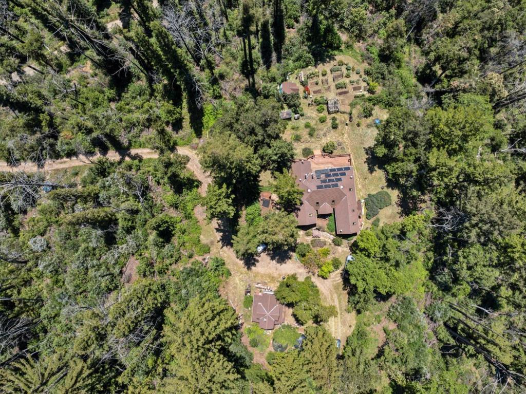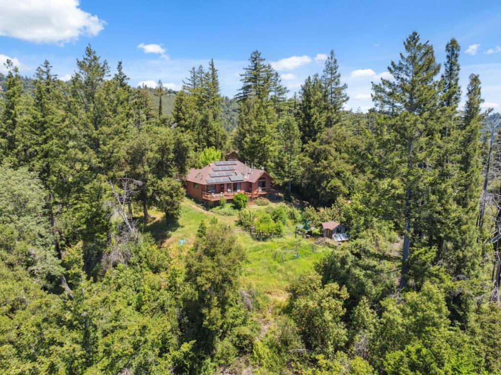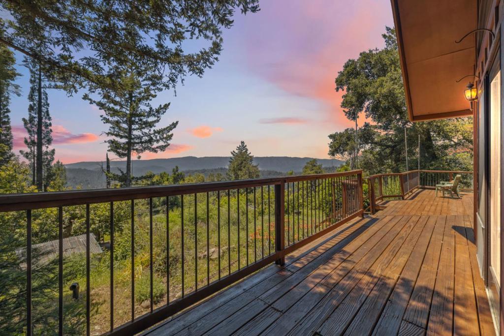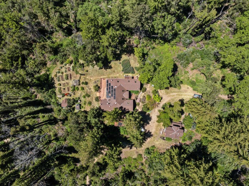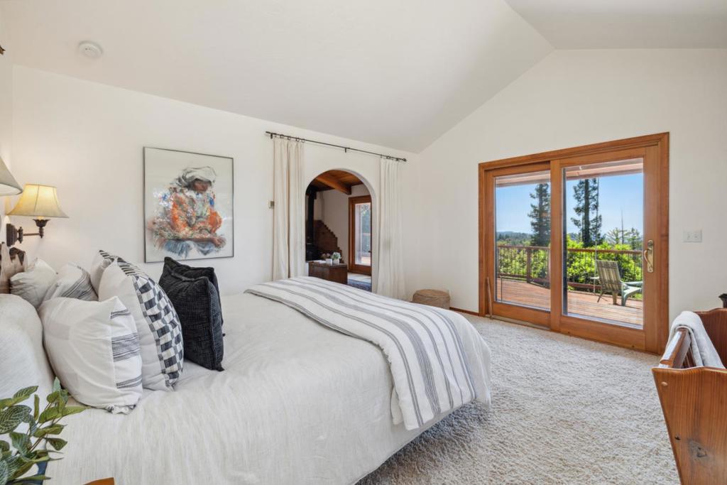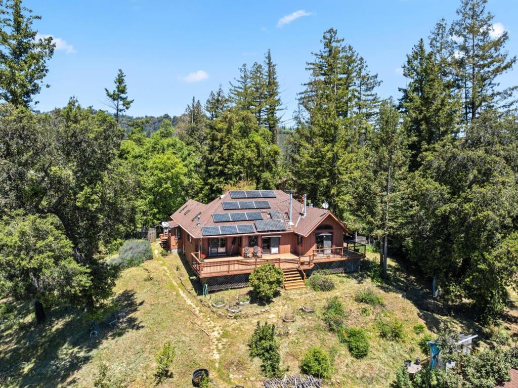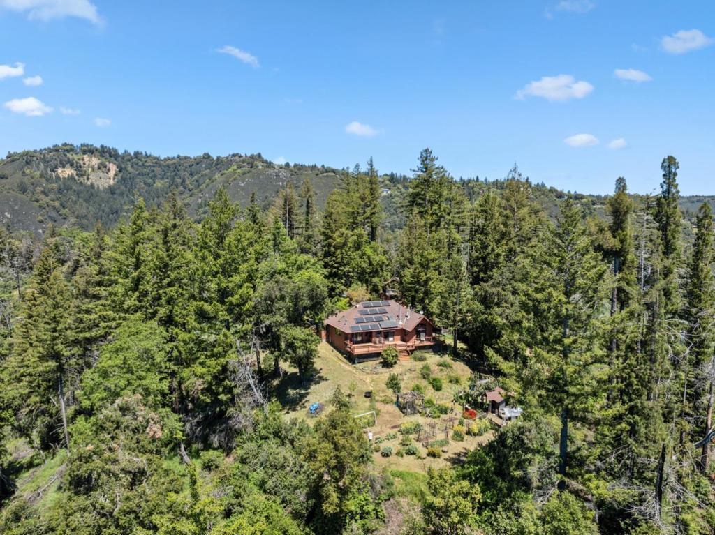 Get away from it all, relax and take in breathtaking views of the Santa Cruz Mountains and Monterey Bay from this epic 28-acre ridgetop estate. This expertly designed 3-bedroom, 2-bathroom home features picture windows in every room, bringing the outdoors in and flooding the space with natural light. Upon entry, curved archways, vaulted ceilings, and beautiful hardwood floors create a warm, inviting atmosphere. Enjoy the peace of a decorative pond, abundant privacy, and a connection to nature that is second to none. Incl 2 parcels (8ac/20ac). The property is fully equipped for modern comfort with a state-of-the-art owned solar system, a reliable private well, and excellent internet and cell service. A large detached barn features a 400-square-foot workshop, perfect for woodworkers or hobbyists. Grow an organic vegetable garden that can thrive in the sunny mountain climate, with a potting shed, attached cold frame, and hotbox for year-round growing. The primary bedroom boasts an adjoining walk-in closet and a dramatic bathroom with an oversized soaking tub. Located at the end of a private country road, this property is a rare opportunity to embrace a homesteading lifestyle in one of California's most beautiful regions with all the peace, privacy, and adventure you could desire!