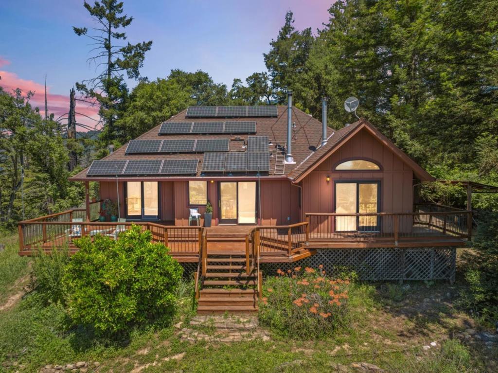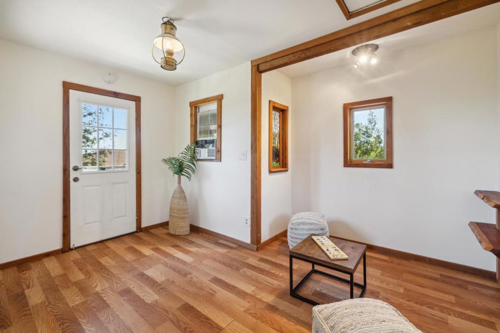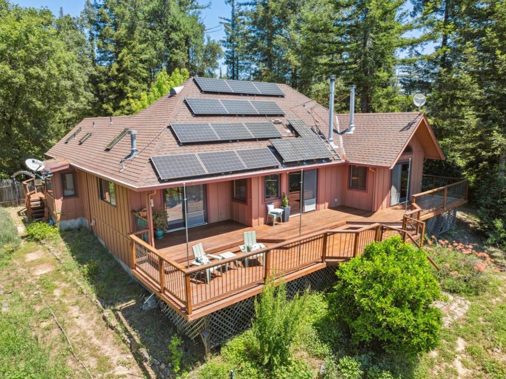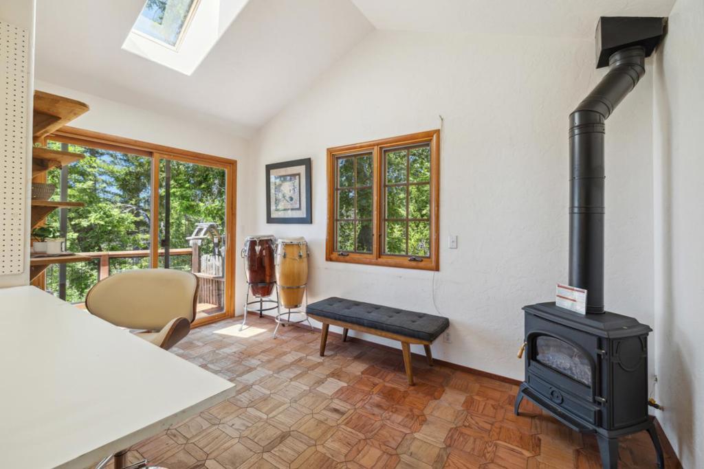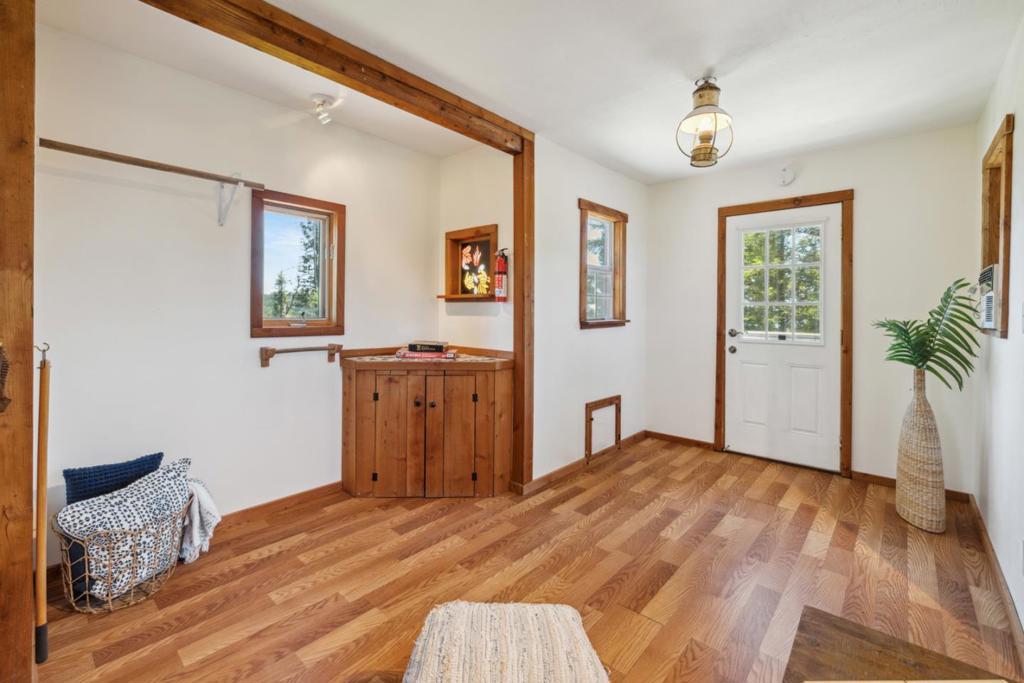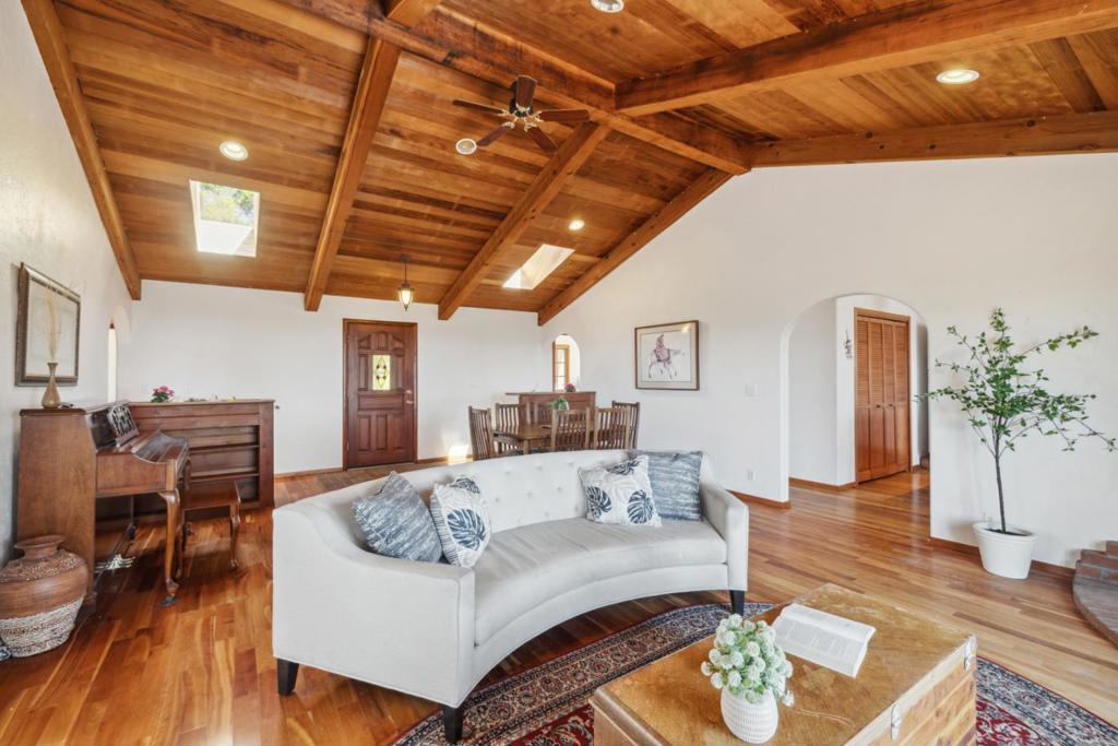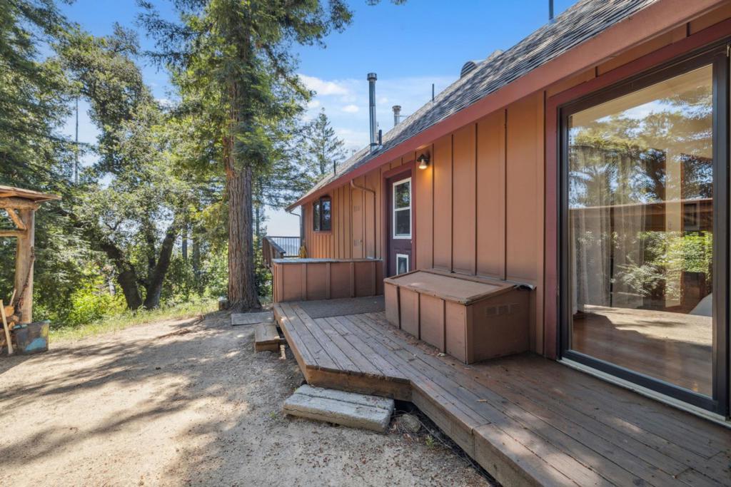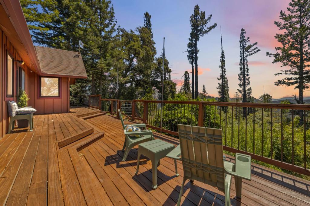 Get away from it all, relax and take in breathtaking views of the Santa Cruz Mountains and Monterey Bay from this epic 28-acre ridgetop estate. This expertly designed 3-bedroom, 2-bathroom home features picture windows in every room, bringing the outdoors in and flooding the space with natural light. Upon entry, curved archways, vaulted ceilings, and beautiful hardwood floors create a warm, inviting atmosphere. Enjoy the peace of a decorative pond, abundant privacy, and a connection to nature that is second to none. Incl 2 parcels (8ac/20ac). The property is fully equipped for modern comfort with a state-of-the-art owned solar system, a reliable private well, and excellent internet and cell service. A large detached barn features a 400-square-foot workshop, perfect for woodworkers or hobbyists. Grow an organic vegetable garden that can thrive in the sunny mountain climate, with a potting shed, attached cold frame, and hotbox for year-round growing. The primary bedroom boasts an adjoining walk-in closet and a dramatic bathroom with an oversized soaking tub. Located at the end of a private country road, this property is a rare opportunity to embrace a homesteading lifestyle in one of California's most beautiful regions with all the peace, privacy, and adventure you could desire!