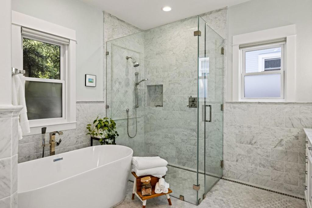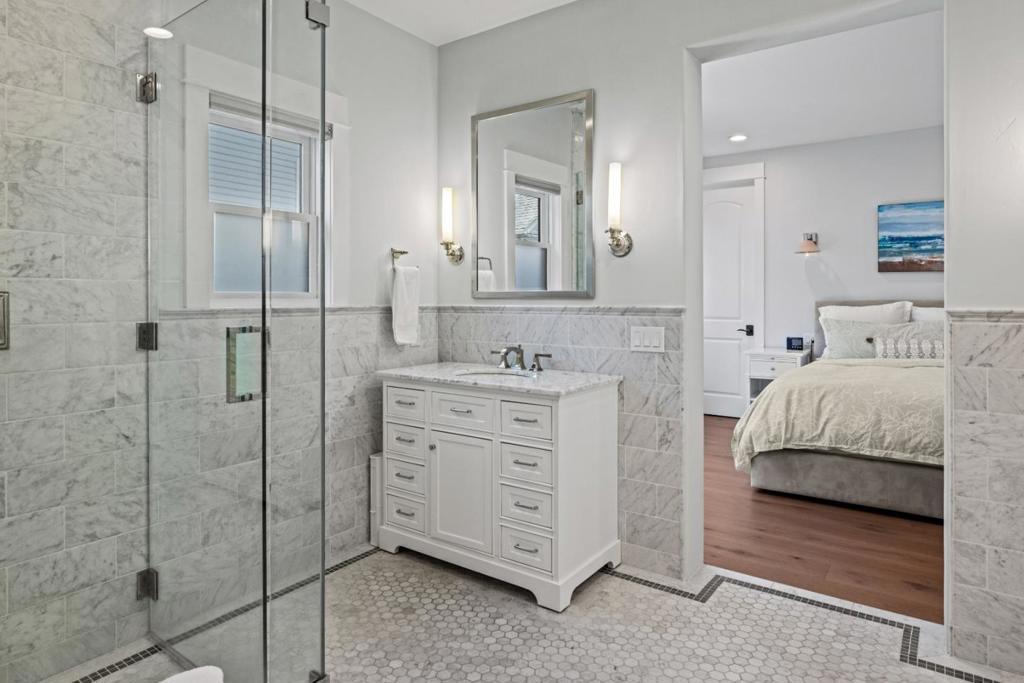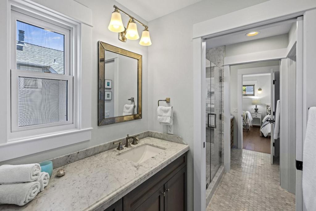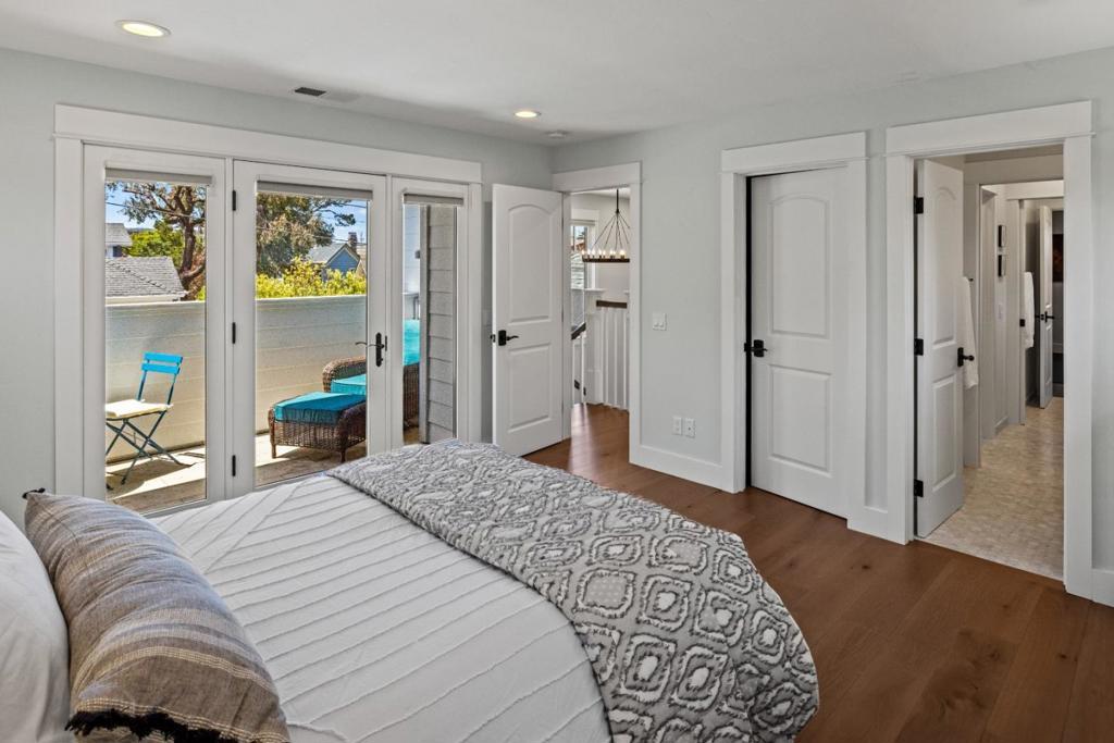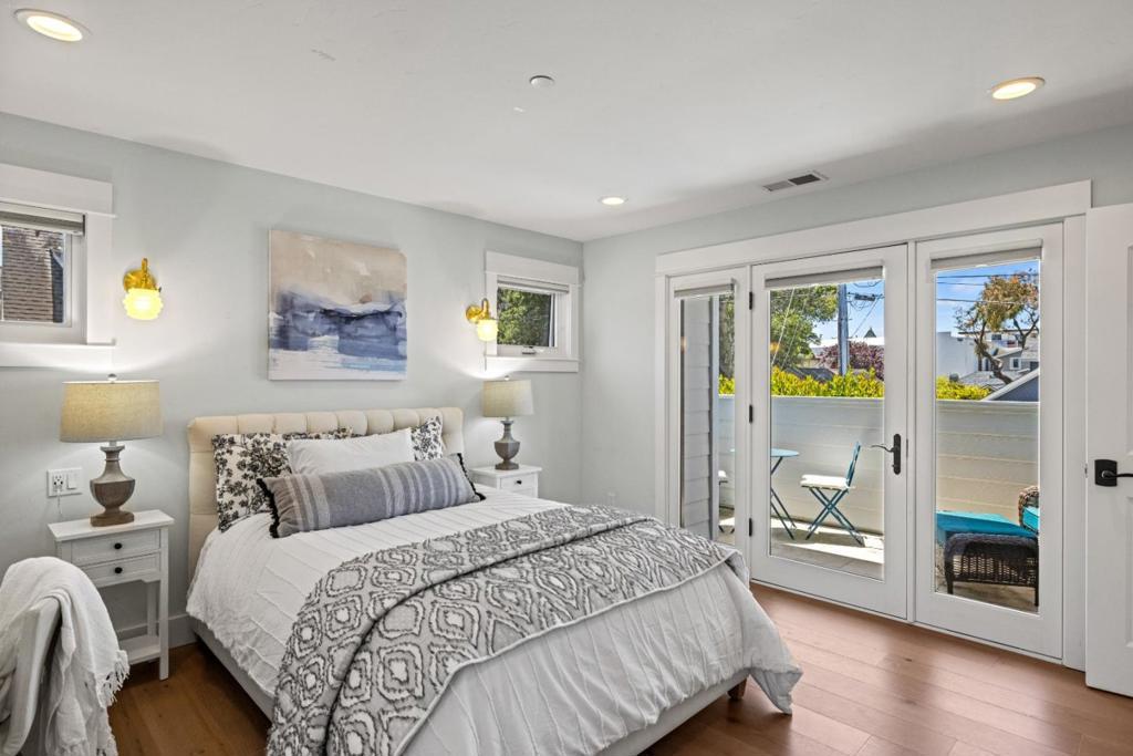 If Goldilocks wanted a home in Pacific Grove, she would surely choose this one. From its central location and tranquil feel to its flexible layout and deluxe finishes, everything about this turn-key treasure is "just right." Situated on a quiet, one-way street just half a block from downtown PG and fewer than two blocks from the Monterey Coastal Recreation Trail, here is a delightful property offering that oh-so-rare combination of total privacy and total proximity. Inside, relax in sun-drenched rooms, including an expansive open living room with high-ceilings, custom Roman shades, a smart fireplace, and seamless access to a truly exceptional gourmet kitchen. Pulling up to sip her porridge on pristine marble countertops, Goldilocks couldn't possibly offer anything less than her wholehearted approval of the top-notch appliances and amenities that are yours to discover and enjoy here, including a six-burner stainless steel Wolf range. At bedtime, while you wind down in your ground level primary suite, your guests and family members can have their pick of two additional bedrooms upstairs, one of which has a spacious balcony from which to fully appreciate your spot in this lovely neighborhood. Don't settle for less than your own fairytale ending. Here, you really can have it all!