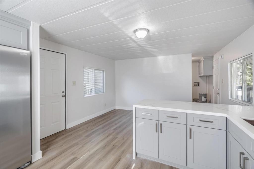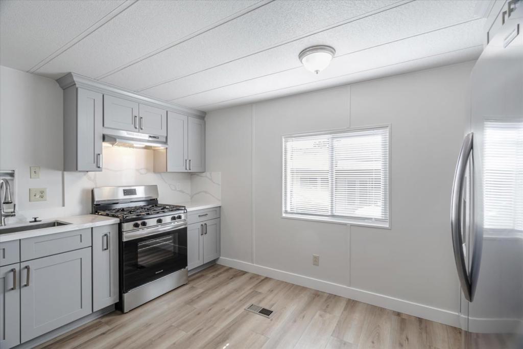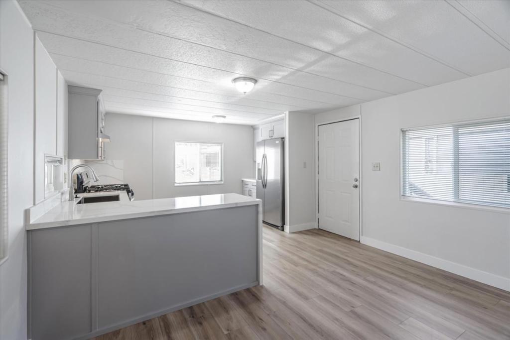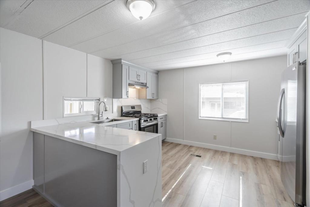 Location, location, location! This beautiful and affordable 1 bedroom, 1 bathroom home is located in the quiet, all-age community of Willow Glen. This home has been completely renovated and has 532 sq. ft. of living space. The home has new wood laminate floors throughout, fresh interior/exterior paint, and brand new double paned windows for natural light to shine throughout. The bright kitchen includes new high-end appliances, a large peninsula island with waterfall quartz countertop, and plenty of built-in modern grey cabinets for storage. The primary bedroom is spacious with great closet space. The bathroom is remodeled with new quartz countertop, cabinets, sink, and tub. Willow Glen is a friendly community with amenities including a clubhouse, swimming pool, laundry facility, car wash area, and tons of guest parking. The community also has easy access to Highway 87