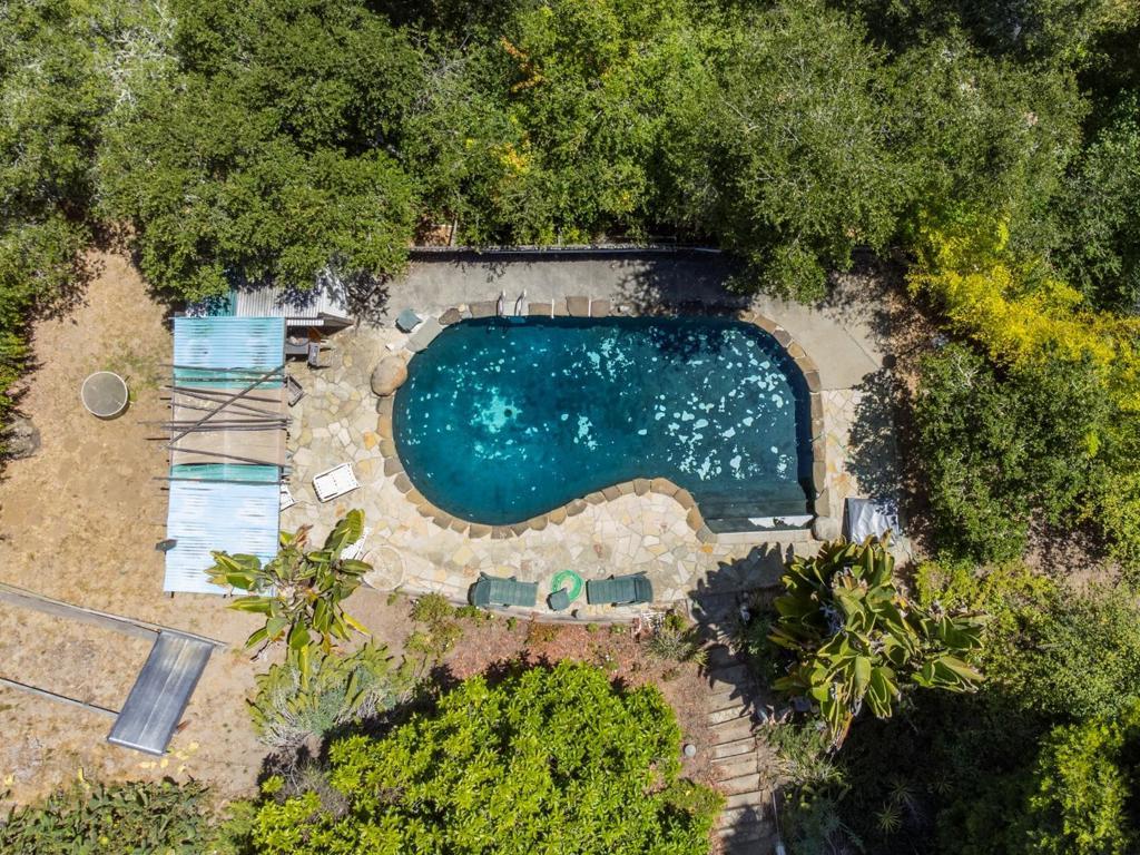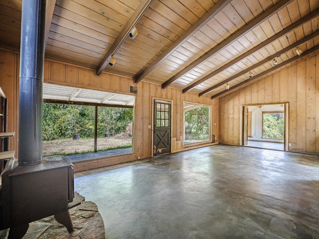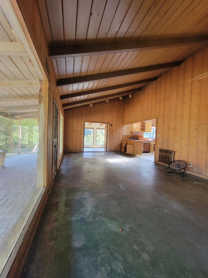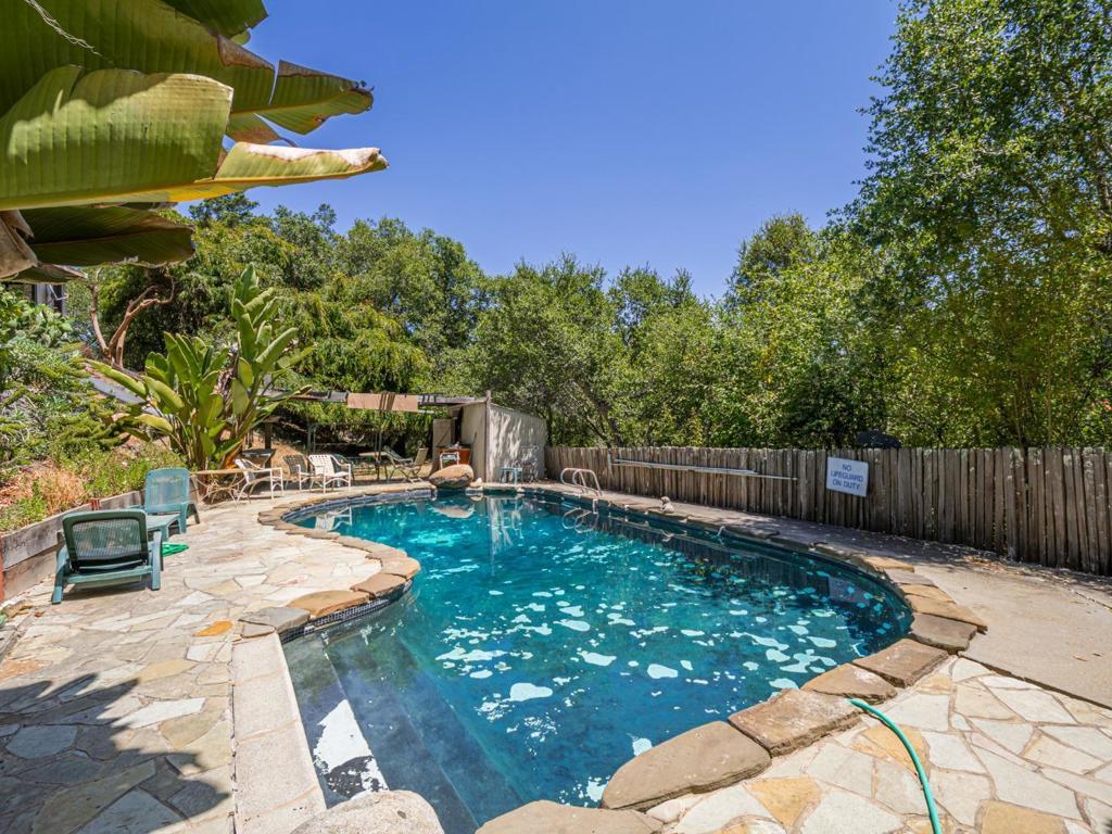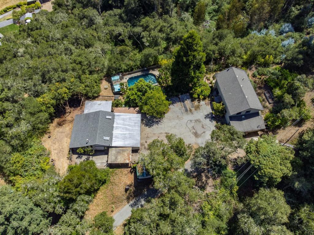 Nestled in the charming hills of Aptos, this unique property offers a blend of rustic charm and future potential. With an expansive lot size of 363,465 sq ft (8+ acres), this home provides ample space for outdoor activities and quiet country living. Home is a true fixer - appears to have solid bones - buyer would need to further investigate. The flooring features a mix of concrete and tile, adding to the home's distinct character. A cozy wood stove serves as the primary heat source, adding warmth and ambiance to chilly evenings. Additional amenities include a black-bottom, in-ground pool that promises endless summer enjoyment, and a 1800+ sq. ft. barn (built in 2001), perfect for storage or hobbyists. The property also features 2 useable flat acres in the lower lot (2 acres of sunflowers at one point:) It is located within the Pajaro Valley Unified School District, ensuring educational facilities are accessible. Although there is no formal dining room or family room, this home offers informal spaces for gatherings and family time. Find yourself in the heart of Santa Cruz County with beautiful beaches and endless outdoor adventures.
