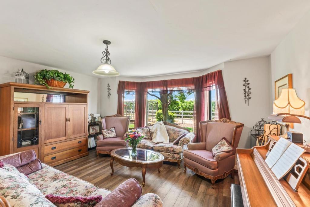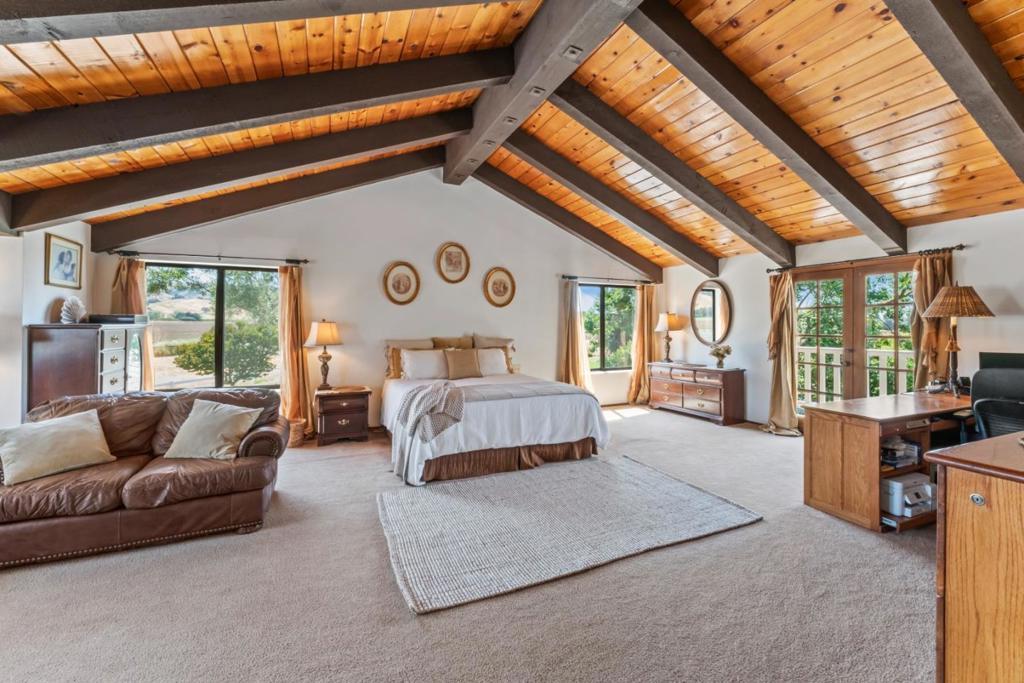 Live, Work, Play at Lazy K Ranch! Discover a rare opportunity to own this beautifully maintained 11.54 acre country estate in Gilroy's scenic countryside. Enjoy 360 degree views, a 4,200 sqft main home (4 bed/4 bath) 5th bedroom option. Two income-producing guest houses: a charming 1 bed/1 bath Red Cottage (495 sqft) and a 2 bed/1 bath guest home (925 sqft), each with private yards. Zoned AW, this versatile property includes a 7.23 acre U Pick cherry orchard, a beloved seasonal agritourism destination. This property has the capacity for multiple RVs, trailers and parking. Horse enthusiasts will appreciate the barn with 5 stalls (potential), breezeway, and fenced paddocks. Car lovers and hobbyists will enjoy 2 workshops and 3 garage bays in the Barn and 2 car garage attached to home. Ideal for multigenerational living, an active family, or investors seeking a rural retreat with diverse revenue streams and agricultural potential. Live luxuriously while earning income from rentals and orchard operations all in one exceptional estate. True Pride of ownership with many upgrades (full copper pipe, quality flooring, updated kitchen, new Ag well +) 11 mins to Caltrains for the commuter with easy access to Silicon Valley. Buyer to Verify All Data All Sqft and Acreage is Approximate.