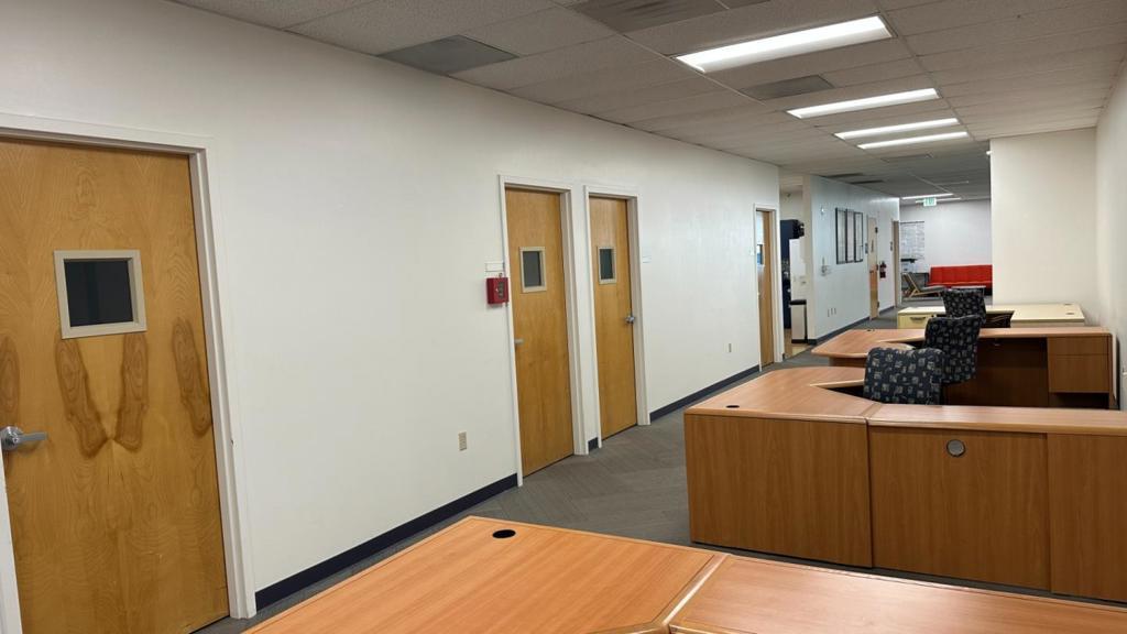 The entire building is approximately 19,966 square feet. It can be divided into two separate units or leased as a whole. Next to the building, theres a fenced yard of about 8,000 square feet, which is ideal for parking or yard storage. Please refer to the satellite map for a better view. The owner is open to leasing the entire space, but would prefer to retain a portion of it for their own use, if possible.