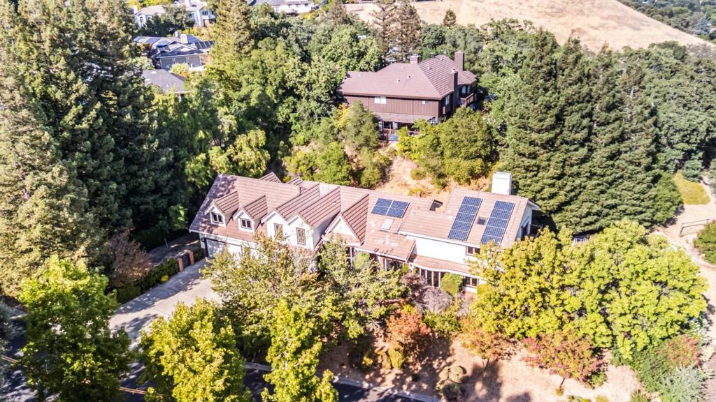 Tucked away on a quiet private road in desirable Lafayette Hills, this half-acre retreat offers rare privacy, hill views, and light-filled spaces designed for both comfort and connection. The open kitchen flows into a spacious family room with a fireplace and sunroom that opens to the backyard, perfect for entertaining or laid-back mornings. Vaulted ceilings, skylights, and expansive windows bring the outdoors in. The primary suite feels like a retreat with Mt. Diablo views, a fireplace, a spa-style bath with a jetted tub and separate shower, and an automated blackout screen on the balcony. You'll find a guest bedroom downstairs, four bedrooms, including a primary suite, upstairs, plus a bonus room ideal for a gym, playroom, or storage. Built with steel frame construction and thoughtfully upgraded with solar, dual-zone AC, security system, and a 3-car garage. Enjoy the quiet of limited through-traffic and the convenience of being minutes to Hwy 24/680, downtown Lafayette, scenic trails, and top-rated Lafayette schools.