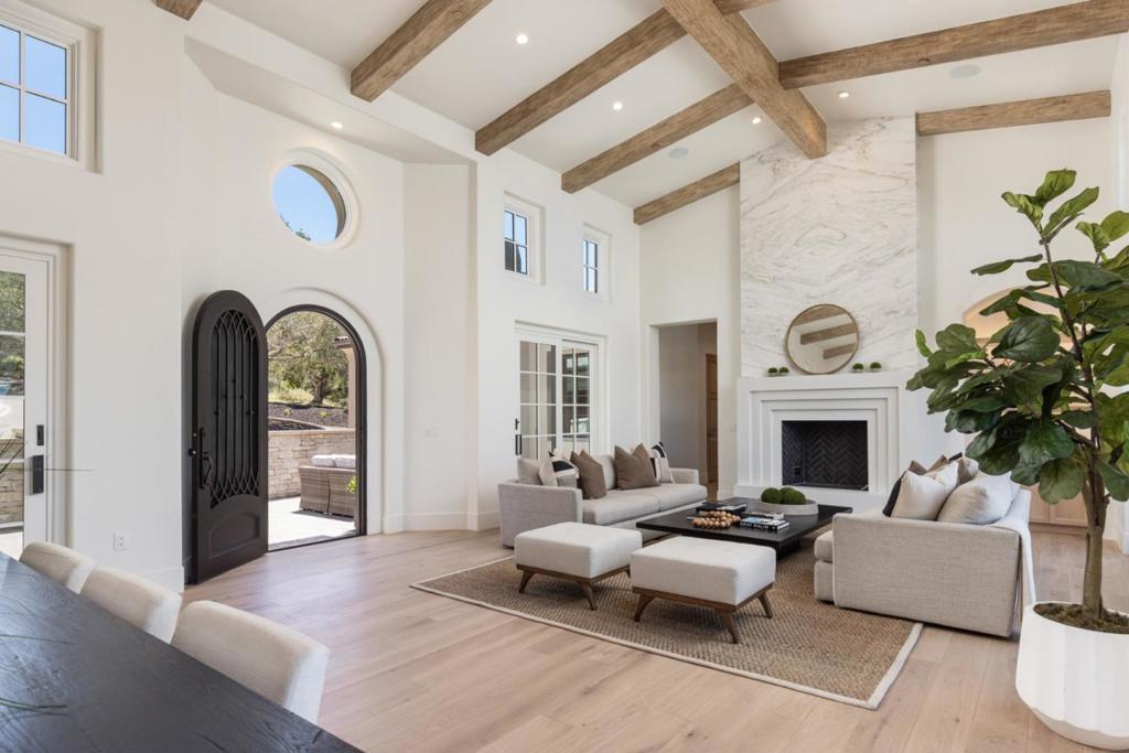 Nestled on a coveted street in Monterra, 8220 Manjares is a newly built custom home offering elevated coastal living. Set on a premier view lot surrounded by majestic oaks and sweeping bay views, this 5,800 sq ft masterpiece blends timeless sophistication with designer details. A private courtyard with an outdoor fireplace welcomes you to the home, leading to a grand, light-filled great room that opens onto a spacious balcony to capture the stunning views. The chefs kitchen features leathered quartzite countertops, Thermador appliances, and a large center island, perfect for both cooking and entertaining. The main-level primary suite is a serene retreat with its own fireplace, spa-inspired bathroom, and expansive closet. Downstairs offers three ensuite bedrooms, a family room, wine cellar, and second laundry area. Equipped with smart home technology, this property represents the finest in comfort, design, and craftsmanship. A rare opportunity for Monterra luxury living.