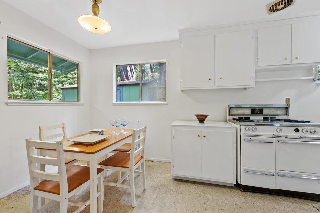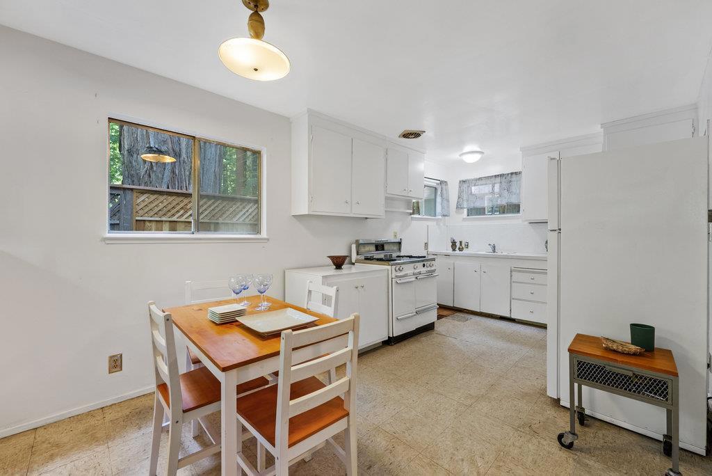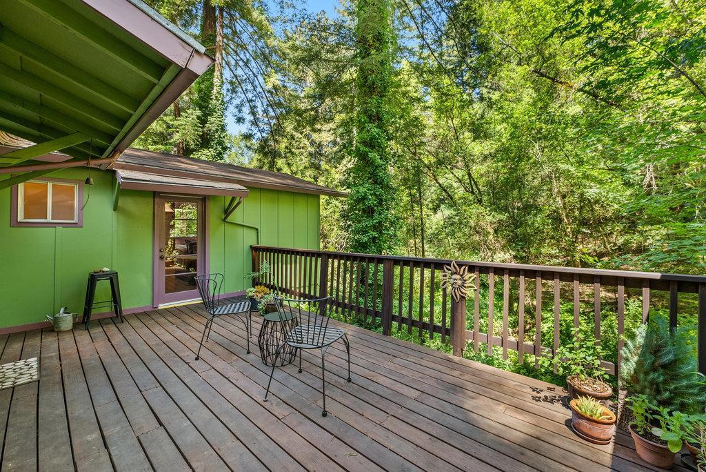 1930s cabin in the woods. This 2 bed, 1 bath Cottage on Bear Creek. It is in a Stock Coop: 24 homes share 12 acres. The fixer upper could use a new roof, AS IS, upgrade the rest to your taste. Summer is warm in the sun, and cool in the house with cross breezes through the trees. The vintage stove, and rock and brick hearth in the living room, may be part of the charm to keep. Enjoy the fenced private deck overlooking Bear Creek, and storage shed with Washer Dryer hookups. Is it an office space, studio, or simply storage in your future home? Walk into Boulder Creek, commute to the North cities, or Santa Cruz. Low HOA covers water, garbage, road & common area maintenance, clubhouse, BBQ area, and private trails to the Creek Beaches & arborist. Bear. Creek Stock co-op. requires ALL CASH or non conventional loan, ask me about it. Park Approval required. Ideal for a permanent residence or second home.