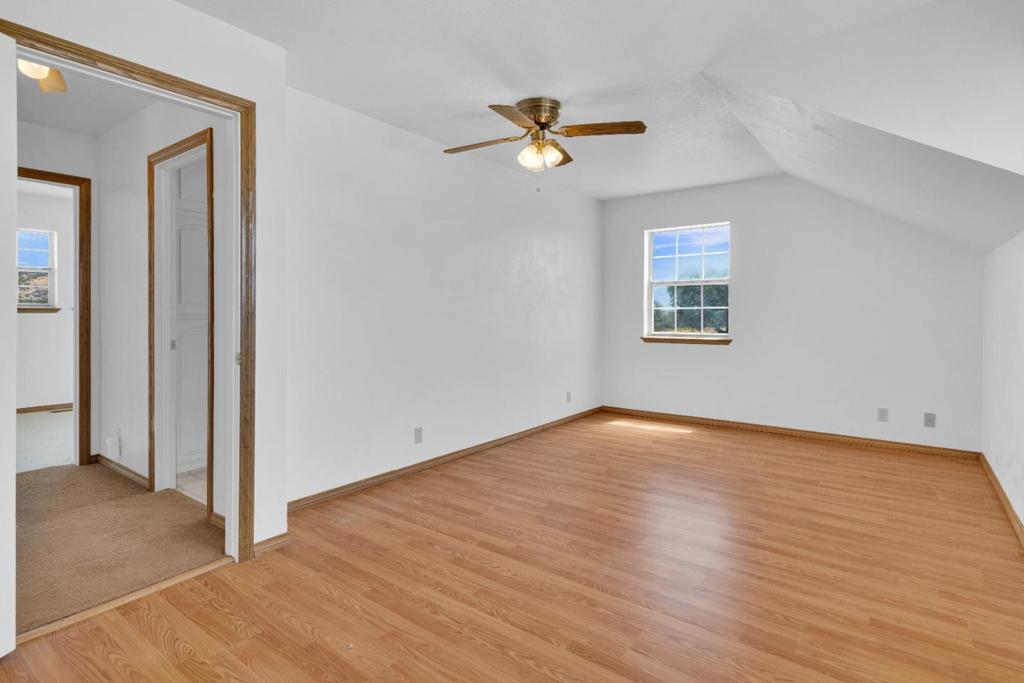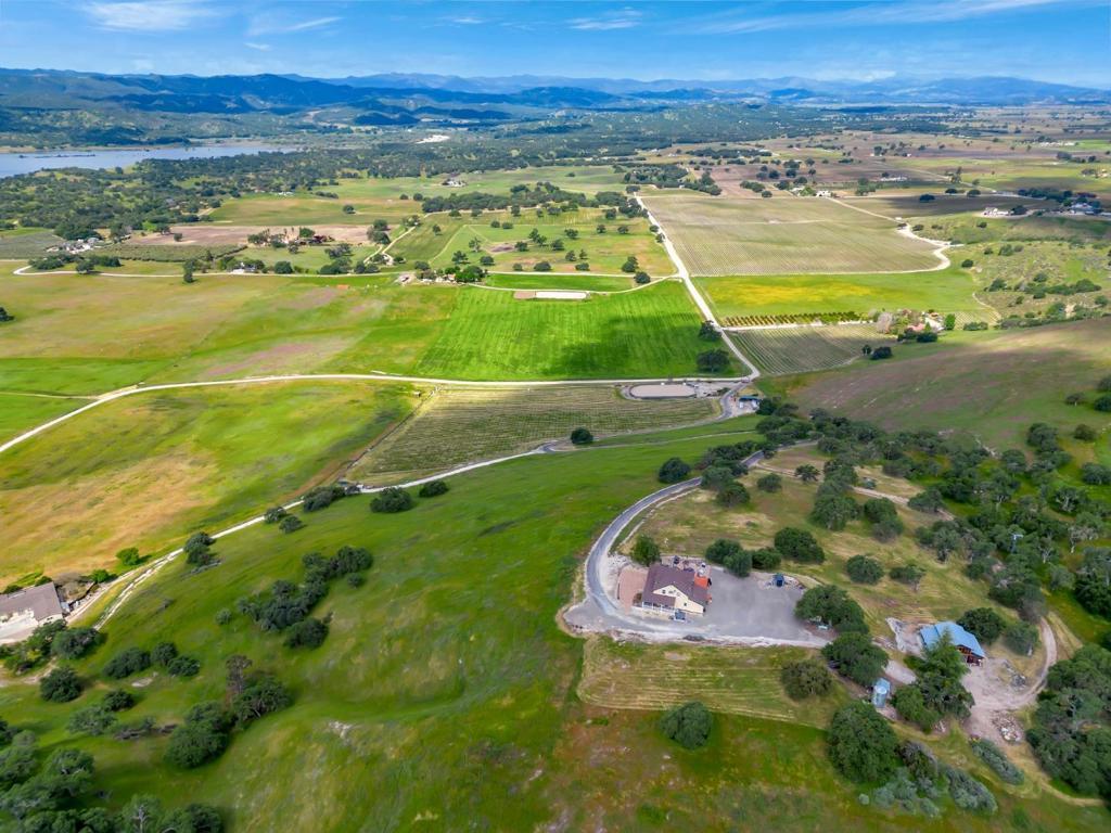 Discover your dream retreat on approximately 26 acres of peaceful countryside, just minutes from North Shore Lake San Antonio and a short drive from Paso Robles. This charming 3-bedroom, 2.5-bath home offers over 2,000 sq. ft. of comfortable living space filled with warm character and thoughtful details. The living room impresses with vaulted ceilings and a cozy wood-burning stove, effortlessly flowing into a dining area and a well-equipped kitchen featuring a gas burner stove on the island and abundant storage. The main floor primary suite is a true sanctuary with a walk-in closet, dual vanities, and a tile shower stall. Completing the main level is a laundry room that doubles as an indoor entertainment space and a convenient half bath for guests. Upstairs, you'll find two additional bedrooms, a full bath, and plenty of storage. Take in stunning Lake San Antonio views from nearly every corner of the home, or from the recently redone wraparound porch perfect for entertaining or unwinding at sunset. Horse lovers will appreciate the horse arena, stables, and a barn/shop, while a small vineyard adds a charming touch to this remarkable property. Your perfect blend of country living and recreation awaits!