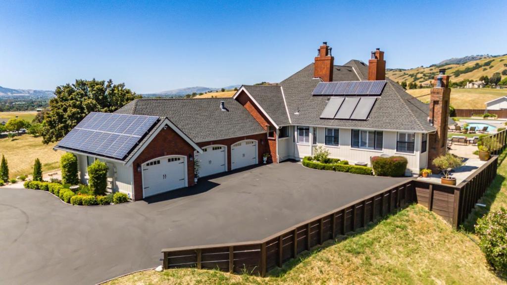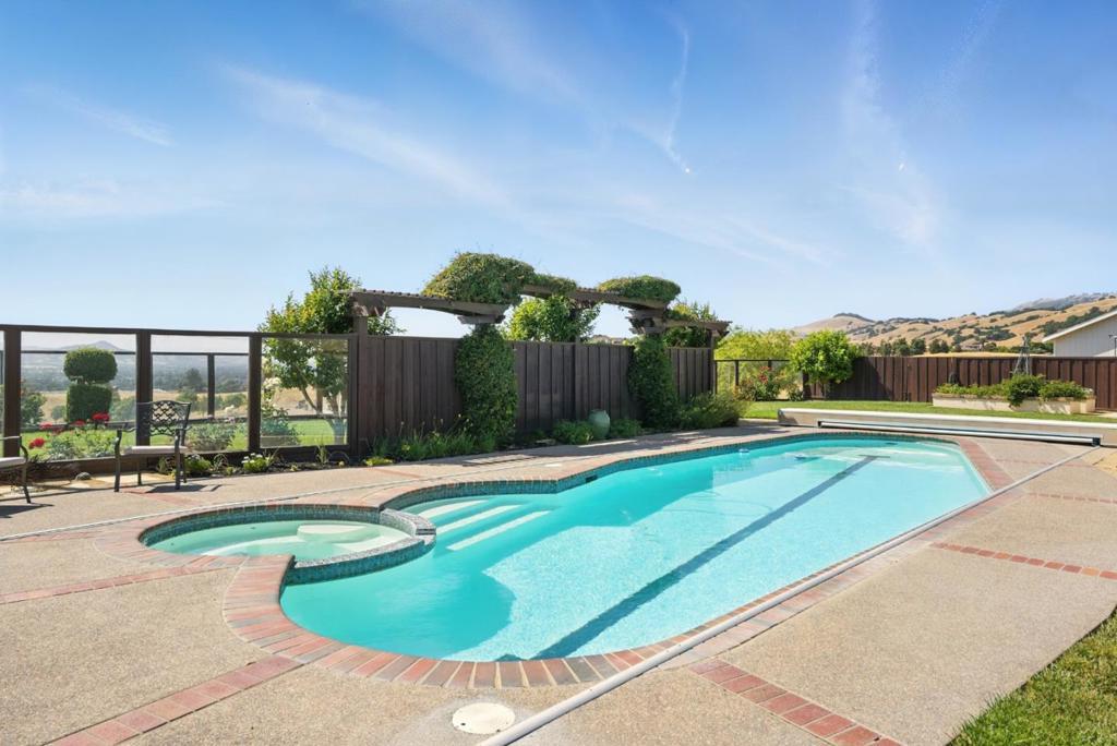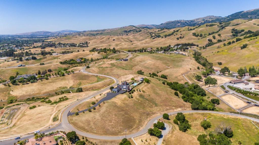 Perched atop 10.7 private acres with sweeping 360º views, this 5-bed, 4.5-bath hilltop estate offers 4,207 sq.ft. of refined living space & a rare combination of privacy, natural beauty, & convenience. The kitchen pairs maple cabinetry with granite counters, a large island with prep sink, & high-end appliances including a Wolf 5-burner cooktop, Thermador double oven, Sub-Zero refrigerator, Miele dishwasher, & built-in warming drawer. A formal dining room seats 12, while multiple living areas provide inviting spaces to relax & entertain. The primary suite features a fireplace lounge, vaulted ceilings, a jetted soaking tub, dual vanities, & a walk-in closet. All bedrooms offer hillside or valley views, with one used as a dedicated office boasting a south-facing window that frames stunning sunsets over Gilroy Valley. Once outdoors enjoy the pool, fire pit, grassy lawn, & stone patio all set against open skies & quiet stillness. Skillet Creek runs through the property, & in winter its gentle, winding flow adds a soft, lyrical soundtrack to the landscape. Minutes to Gilroy Outlets, golf, dining, & Harvey Bear/Coyote Lake parks, with farmers markets, the Wine Trail, & essentials like Costco, Home Depot, & local restaurants this home is the ideal balance of retreat & convenience.