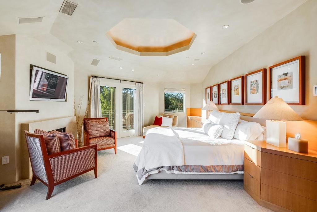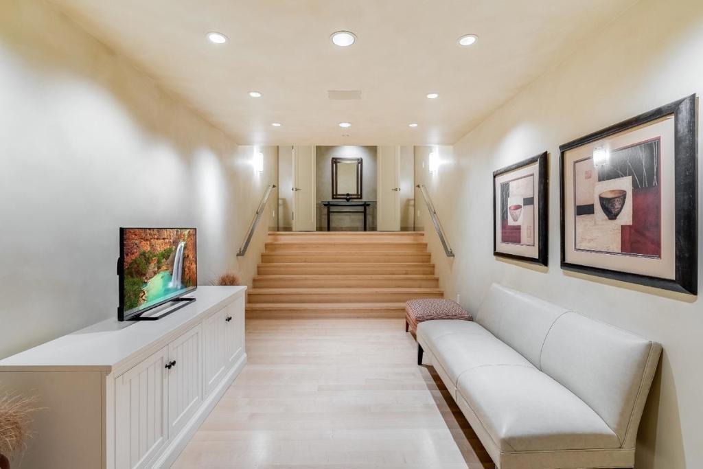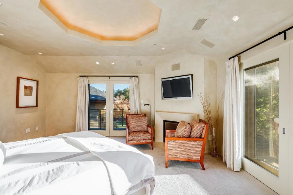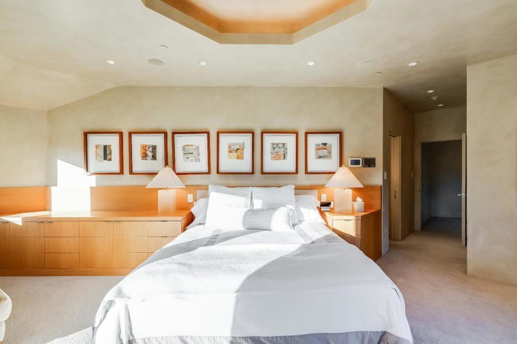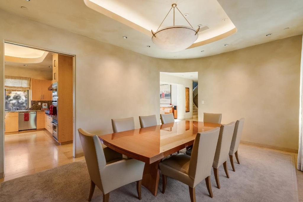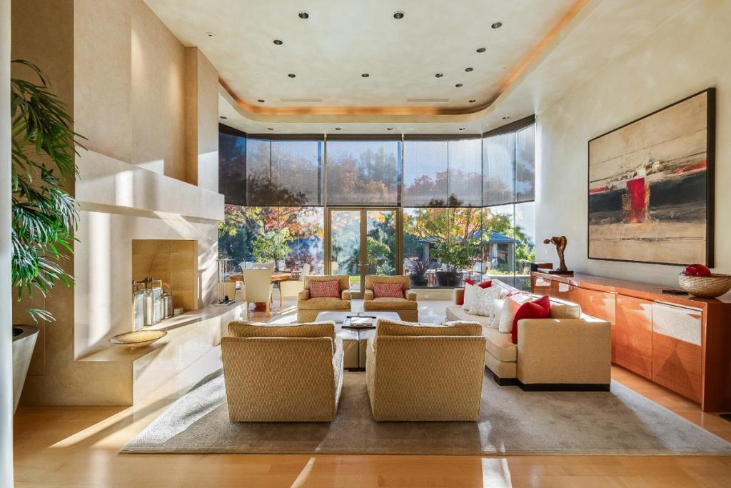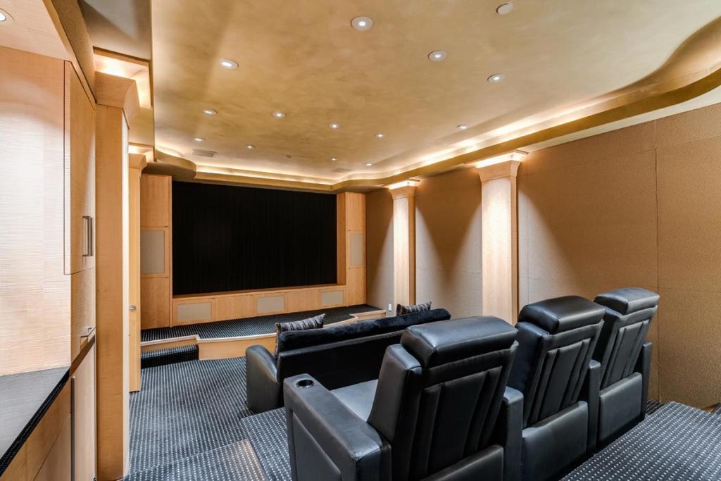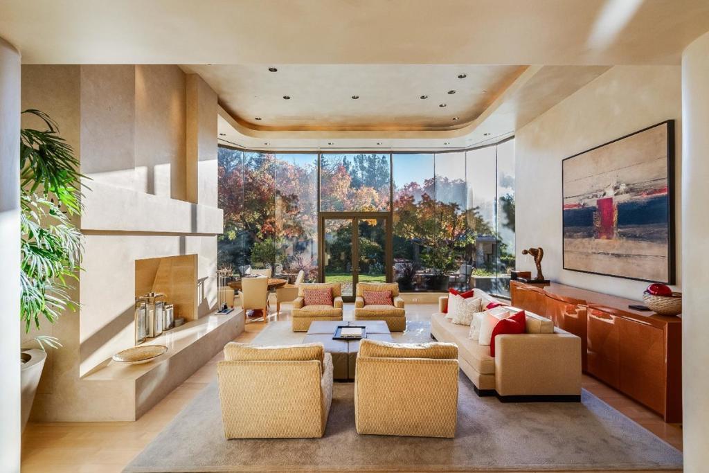 Contemporary masterpiece with 2-story guest house, pool pavilion, plus pool and spa on just over 1 acre of manicured gated grounds. Exotic woods of curly maple, pear, and Sapele mahogany complement maple and Halila limestone floors and counters in Brazilian granite and limestone. Graceful curves adorn walls, ceilings, windows, and cabinetry that maximizes storage. 5 bedrooms and 6.5 baths, library, lounge, full bar, 9-seat theatre, 2,000 bottle wine cellar, fitness center with steam & sauna, plus 2 offices one with secret Orient Express train car room with overhead train track that runs through both rooms. The guest house is designed in a Japanese teahouse style and the pavilion has a full kitchen for poolside entertaining. Meticulously landscaped grounds have many water features including streams, ponds, and waterfalls. Behind the scenes is home automation, security, whole-home backup generator, radiant heat & EV charging in the 5 car garage. Desirable cul-de-sac and close-in location. Excellent Los Altos schools.