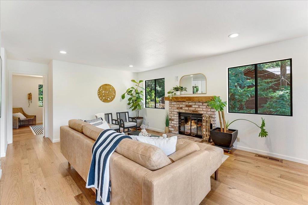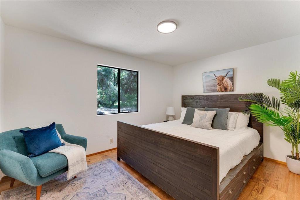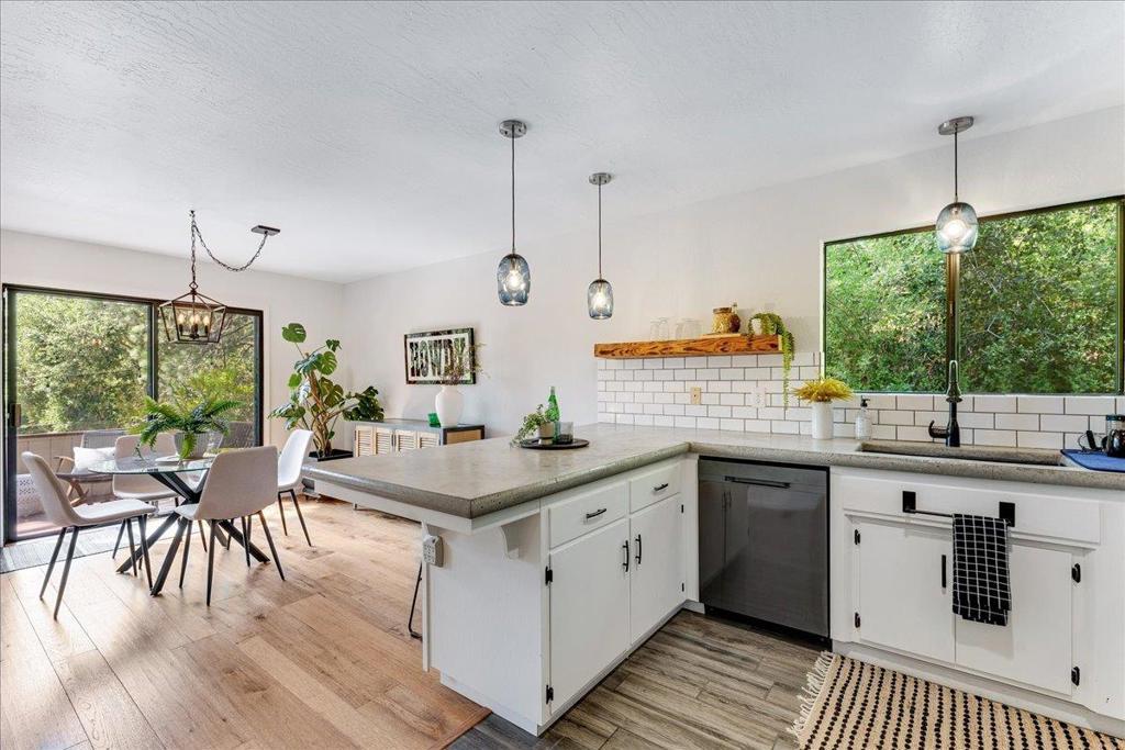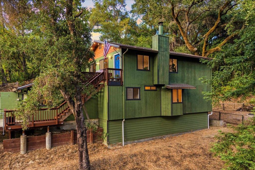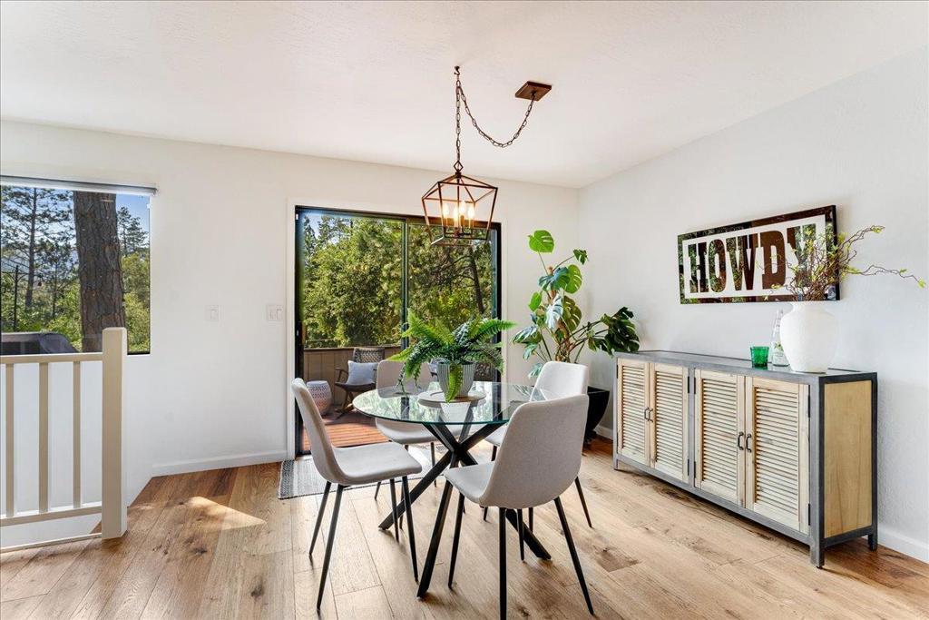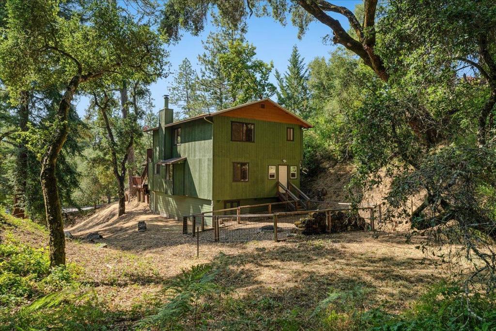 Set in the quiet Quail Hollow neighborhood of Ben Lomond, this inviting home offers a true sense of peace and privacy. Thoughtfully maintained and surrounded by lush greenery, it features a functional layout with great separation of space. The main level is designed to take in natural light and scenic views from nearly every room, including the living room, primary suite, kitchen, and dining area, creating a strong connection to the surrounding landscape. The spacious kitchen includes a large breakfast bar and flows easily into the dining area, with sliding glass doors opening to the front deck, perfect for morning coffee or evening gatherings. Downstairs, two additional bedrooms, a full bath, and an enclosed bonus room offer flexible space for a home office, gym, studio, or extra storage. The flat backyard offers room to garden, play, or simply enjoy the sunshine. A two-car garage, bonus driveway parking, and a dedicated garden area round out the features. Located just minutes from downtown Ben Lomond with easy access to Highway 9 and Zayante Road, this home blends comfort, function, and a tranquil setting, ideal for your next chapter.