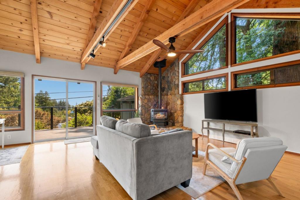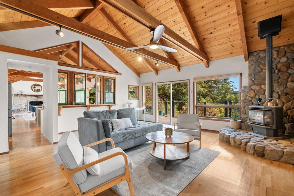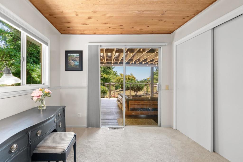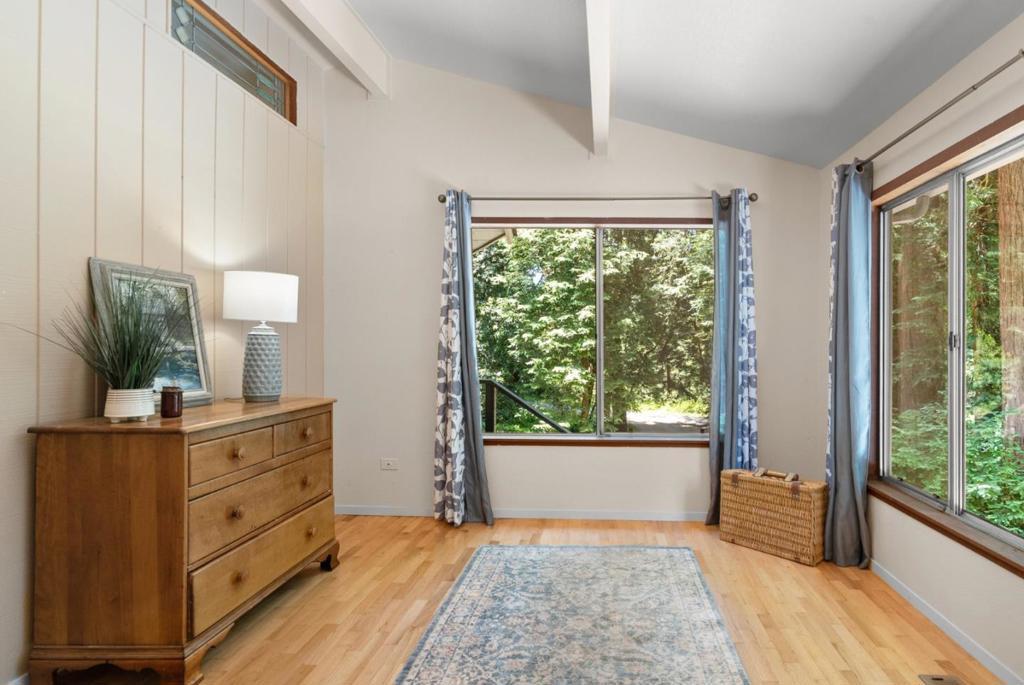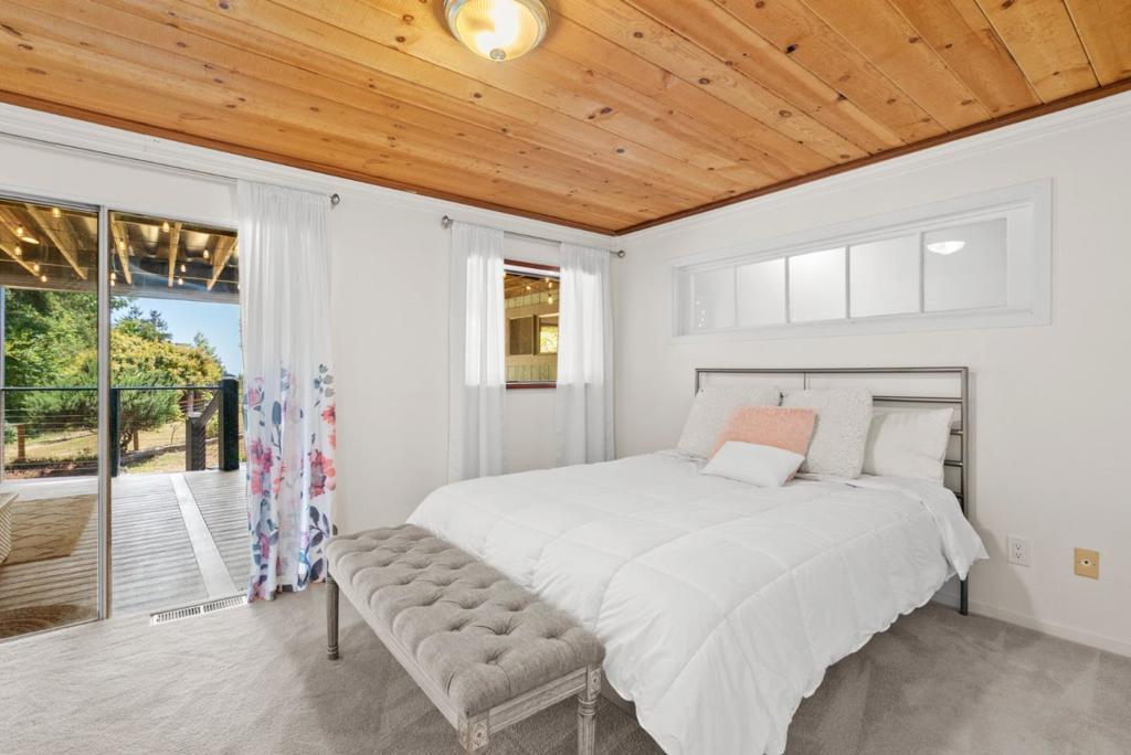 Ideal Mt. Madonna location with an easy commute to Gilroy & the Bay Area, all while enjoying the serenity of coastal country living. Located on over 2.28 acres in a private cul-de-sac, it offers easy access from Mt Madonna County Park to Gilroy wineries/shops, as well as a short ride to the beach. This 4-bedroom, 3-bathroom home, surrounded by majestic redwood trees, offers 2,798 sq. ft. of comfortable living space with a large bonus room and views of the Pacific Ocean, Monterey, and Watsonville. The private, west-facing backyard features fruit trees, a pool, and a large workshop. It is perfect for entertaining and enjoying breathtaking sunsets. Step inside to find beautiful open beam ceilings, oak hardwood floors, a spacious living room, kitchen, and family room. The master suite includes a relaxing sitting room with a fireplace. Significant upgrades enhance this property, including a Trex deck, updated kitchen and bathrooms, Tesla Power wall/solar panels with EV charging, and a new well water maintenance system. This renovated home offers an unparalleled lifestyle.
