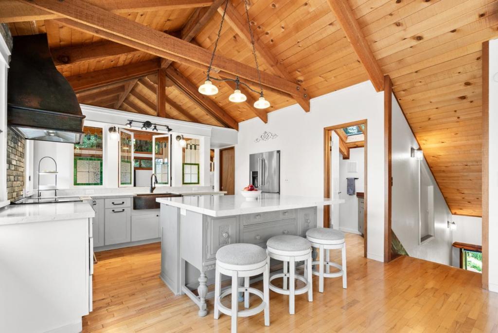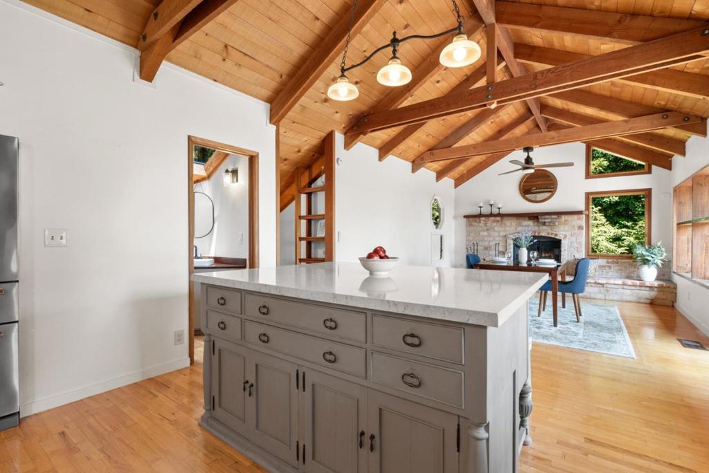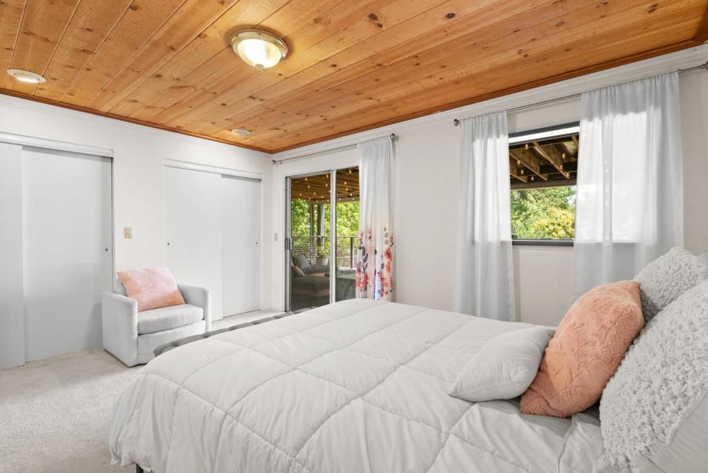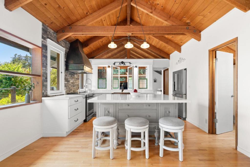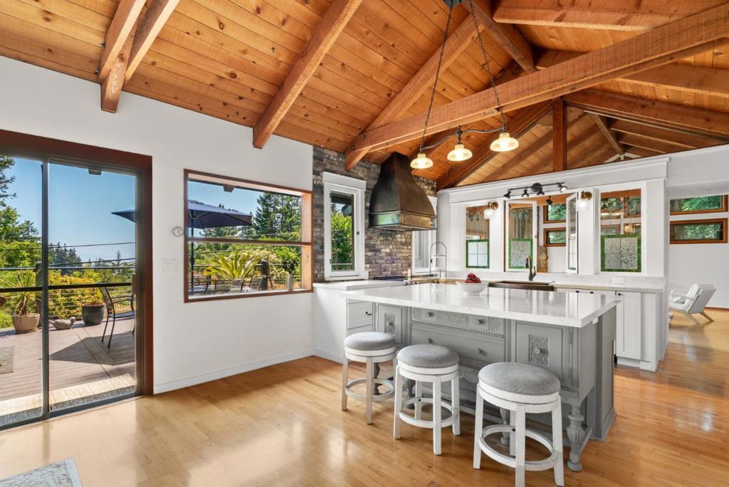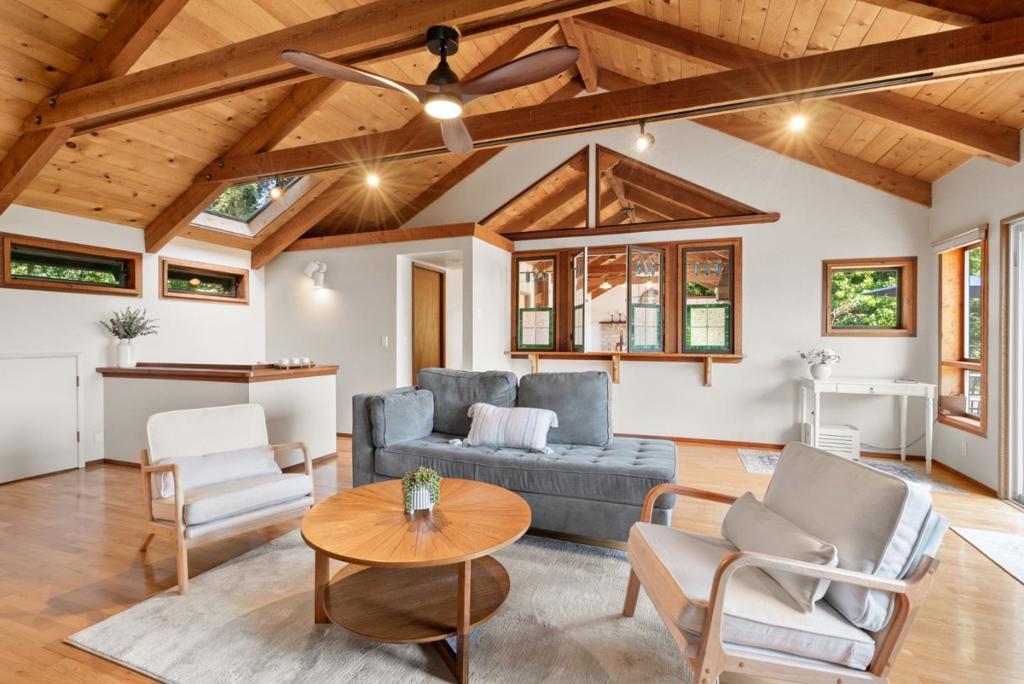 Ideal Mt. Madonna location with an easy commute to Gilroy & the Bay Area, all while enjoying the serenity of coastal country living. Located on over 2.28 acres in a private cul-de-sac, it offers easy access from Mt Madonna County Park to Gilroy wineries/shops, as well as a short ride to the beach. This 4-bedroom, 3-bathroom home, surrounded by majestic redwood trees, offers 2,798 sq. ft. of comfortable living space with a large bonus room and views of the Pacific Ocean, Monterey, and Watsonville. The private, west-facing backyard features fruit trees, a pool, and a large workshop. It is perfect for entertaining and enjoying breathtaking sunsets. Step inside to find beautiful open beam ceilings, oak hardwood floors, a spacious living room, kitchen, and family room. The master suite includes a relaxing sitting room with a fireplace. Significant upgrades enhance this property, including a Trex deck, updated kitchen and bathrooms, Tesla Power wall/solar panels with EV charging, and a new well water maintenance system. This renovated home offers an unparalleled lifestyle.