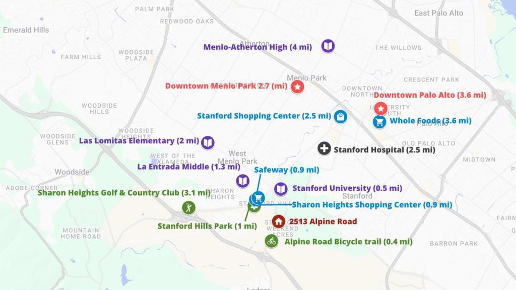 Rare opportunity in one of Menlo Parks most sought-after neighborhoods. Built in 1954 & set on a generous 14,625 sq. ft. lot, this distinctive property offers exceptional flexibility with three separate living units perfect for multi-generational living, rental income, or future redevelopment.The home provides approximately 1,515 sq. ft. of living space, thoughtfully arranged across three units: - Lower Unit: 2-bedroom, 1-bath, 572 sq. ft. with a skylit primary bedroom & an open-concept living area. - Middle Unit: 491 sq. ft. bright studio with a built-in Murphy bed, skylights, & a spa-like bathroom featuring a soaking tub. - Upper Unit: 452 sq. ft. spacious studio, including a dedicated office/workspace, extensive built-in cabinetry, & access to a private deck. Detached 2-car garage with storage, refinished hardwood floors, & modernized fixtures. Tucked among mature trees & surrounded by multi-million-dollar homes. Alpine offers exceptional privacy in a peaceful setting backing onto San Francisquito Creek. Prime location is just minutes to Stanford University, Downtown Menlo Park, Sand Hill Rd, & the award-winning Las Lomitas School District. Easy access to I-280, local parks, & a vibrant mix of dining & shopping, the home offers the perfect blend of serenity & convenience.