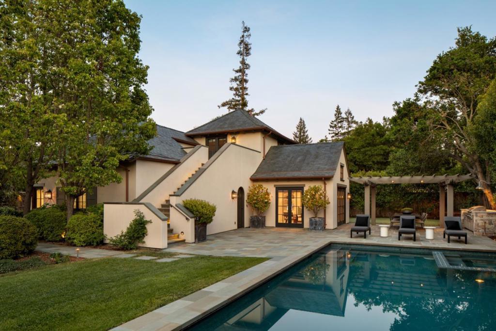 Situated on an unusually large lot in one of Palo Alto's most coveted enclaves. Designed for those who appreciate quality and comfort, every detail of this home has been carefully curated. The main level invites effortless gatherings with a gracious formal dining room, expansive living room, chef's kitchen that opens to a family room and two separate offices. Upstairs, four bedrooms offer privacy and comfort, including a serene primary suite with its own private deck, gas fireplace, generous walk-in closet, and a spa-like marble bathroom. The lower level unfolds as a retreat for leisure and exercise, featuring a game room, billiards lounge, wine cellar, light-filled gym and a bathroom with steam shower. First rate craftsmanship is evident throughout. Equipped with advanced systems including 8-zone HVAC, Lutron lighting, integrated audio, home monitoring and security, and a standby generator. The resort-inspired backyard features a large fireplace, pool, spa, outdoor kitchen, pergola, putting green, pool house with changing room, and a separate guest suite. The 3-car garage also has two lifts. Located in Old Palo Alto, the prestigious neighborhood Silicon Valley tech titans call home. Centrally located, near Stanford University with access to top-rated public schools.