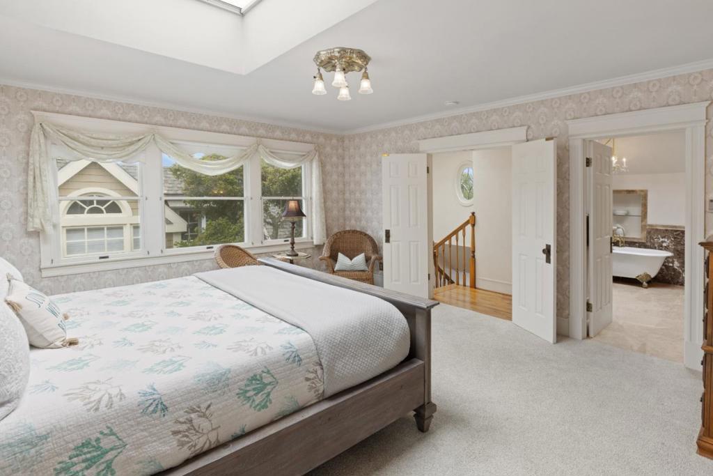 Experience timeless Victorian elegance at the "Daffodil House," a meticulously maintained 3-story residence in the heart of Pacific Grove's Retreat district. Built in 1989, this 2,316 sq ft home offers 3 bedrooms and 2.5 bathrooms, seamlessly blending classic charm with modern amenities. This Heritage Society design award-winning home is currently used as a short-term rental with an attractive rental history. The updated gourmet kitchen features granite countertops, new stainless steel appliances, and a central island, perfect for culinary enthusiasts. The spacious primary suite boasts an updated bath and walk-in closet, providing a private retreat. Enjoy the warmth of a gas-burning fireplace in the living room and a wood-burning stove in the family room. Additional highlights include hardwood flooring, a formal dining room, and a breakfast nook. Situated on a 2,385 sq ft lot, the property features a fenced backyard, balcony/patio, and a large 2-car garage. Located less than one block from Lover's Point, the ocean, and the coastal recreation trail, this home offers ocean views and easy access to Pacific Grove's vibrant downtown area.