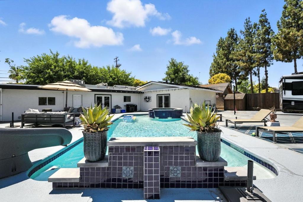 Welcome to your dream home! Nestled on an oversized 14,810 sq ft lot, this beautiful single-family residence offers 4 spacious bedrooms, 3.5 bathrooms, and 2,125 sq ft of living space. Inside, you're greeted by warm wood flooring and a bright, open living area perfect for family gatherings and entertaining. The heart of the home is the modern kitchen, featuring two-toned cabinetry, stainless steel appliances, ample storage, and a large island counter ideal for meal prep or casual dining. Glass doors off the kitchen lead to your backyard retreat, seamlessly blending indoor-outdoor living. Discover generously sized bedrooms, including a luxurious primary suite with a walk-in closet and an ensuite bathroom. Step outside to your private backyard oasis complete with a heated pool, hot tub, waterslide, outdoor sound system, and patio, all designed for unforgettable summer fun. A separate entrance to the yard ensures privacy and convenience, while RV parking with its own rear access adds versatility. Additional highlights include a commercial-grade solar system and plenty of room to entertain or relax under the sun or stars. This home is the perfect blend of comfort, functionality, and resort-style living. Dont miss your chance to own this incredible property!