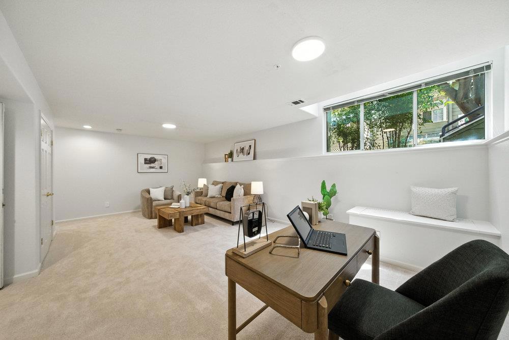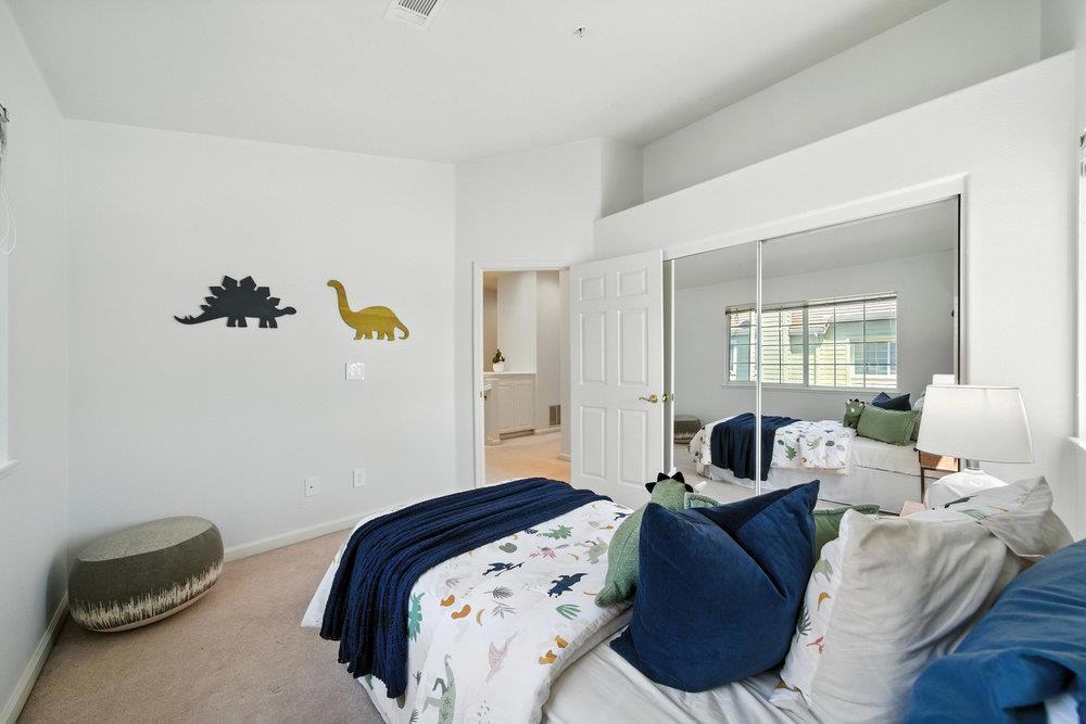 One of the most serene neighborhoods in Sunnyvale, the Traditions community is surrounded by soaring trees & loads of greenery! This spacious End Unit Townhome truly feels like a Single Family home, rare to find this much space in a townhome! Largest floor-plan in all of Tasman Crossings! Tons of natural light shine through large end unit windows, skylight & sliding doors! Refreshed townhome w/new carpets, new warm paint throughout, upgraded Kitchen and more! Living Rm / Dining Rm combo w/access to 1st private balcony, Family Rm off Kitchen w/gas fireplace. Gourmet Eat-In Kitchen w/white cabinets, quartz counters, large pantry, breakfast bar and nook w/access to 2nd private balcony! Oversized Owners suite w/WIC, dual sinks, separate tub & shower. Spacious 2nd & 3rd beds w/large closets. Extra Bonus Rm located downstairs, great for home office or entertainment area. Attached 2 Car garage! Central A/C & Heat. HOA includes: Community Pool & Spa, Water, Garbage, Earthquake Insurance & more! Short walk to SevenSeas Park, VTA, Grocery & coffee! Short drive to newly built Downtown Sunnyvale w/loads of dining, shopping & entertainment! Near 101, 237, 85! Minutes from major corporations such as Apple, Google, Nvidia, Meta, Microsoft & Amazon. Don't miss out, loads of nearby development!