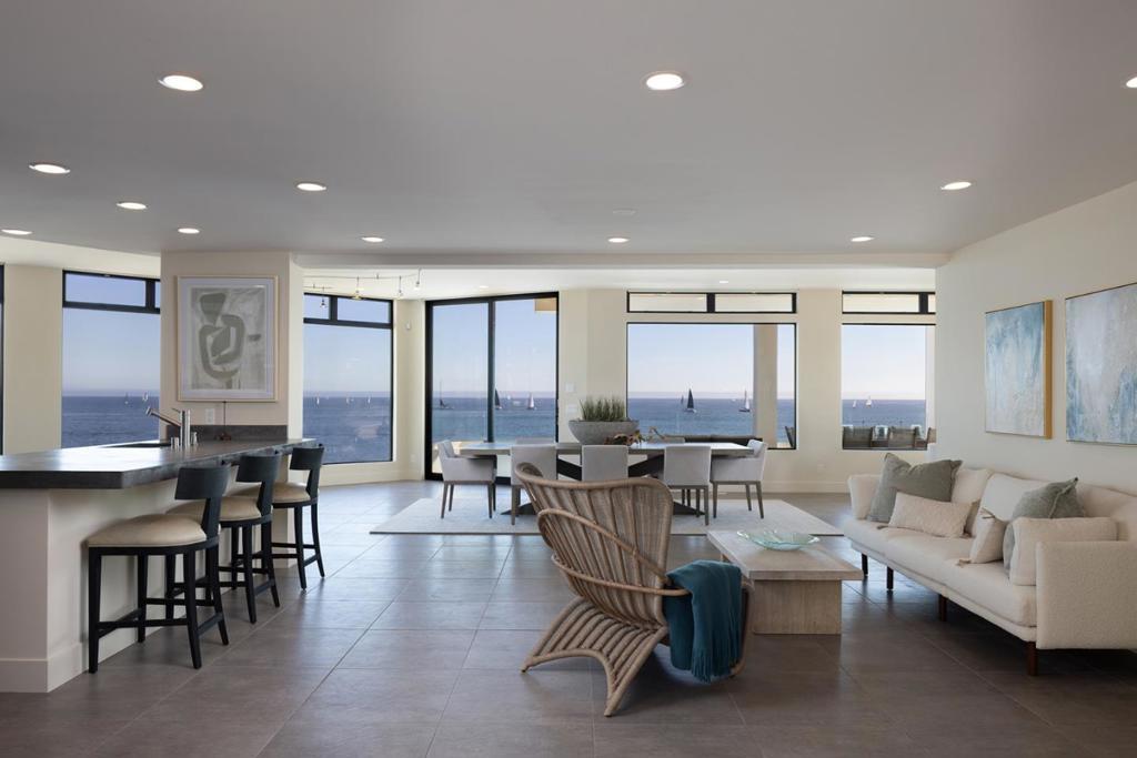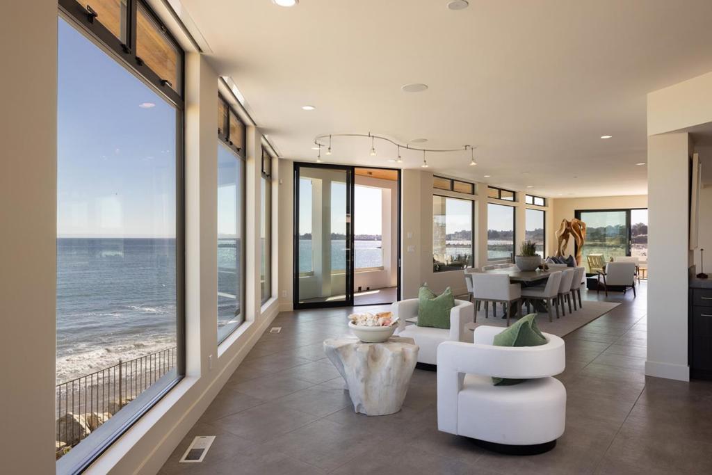 Experience unparalleled coastal living in this one-of-a-kind contemporary oceanfront home, set on over 500 feet of beachfront with stunning 240 degree views through expansive floor-to-ceiling windows. Fully remodeled, this luxury retreat is among Santa Cruz's most exceptional properties. Located on a ~3/4 acre private point, it offers dramatic views of the beach and lighthouse from nearly every room. The open layout includes a chef's kitchen, an atrium-style game room that opens to an outdoor BBQ area, and a relaxing ocean-view hot tub. Each bedroom features its own en-suite bath and breathtaking surf views. A separate lower-level suite with private entry, kitchen, living room, bedroom, and bath offers flexible living or guest quarters. Enjoy your own sandy beach area, with a gated path providing direct access to the public beach. Just a short beach stroll to the harbor, this rare gem blends privacy, luxury, and location into the ultimate Santa Cruz lifestyle.