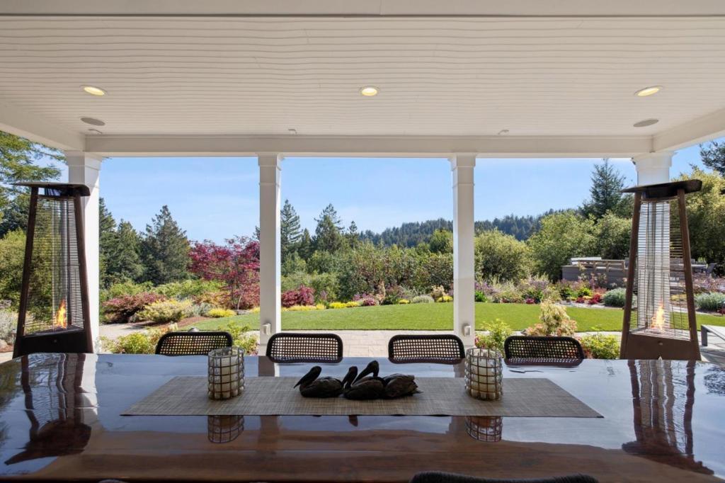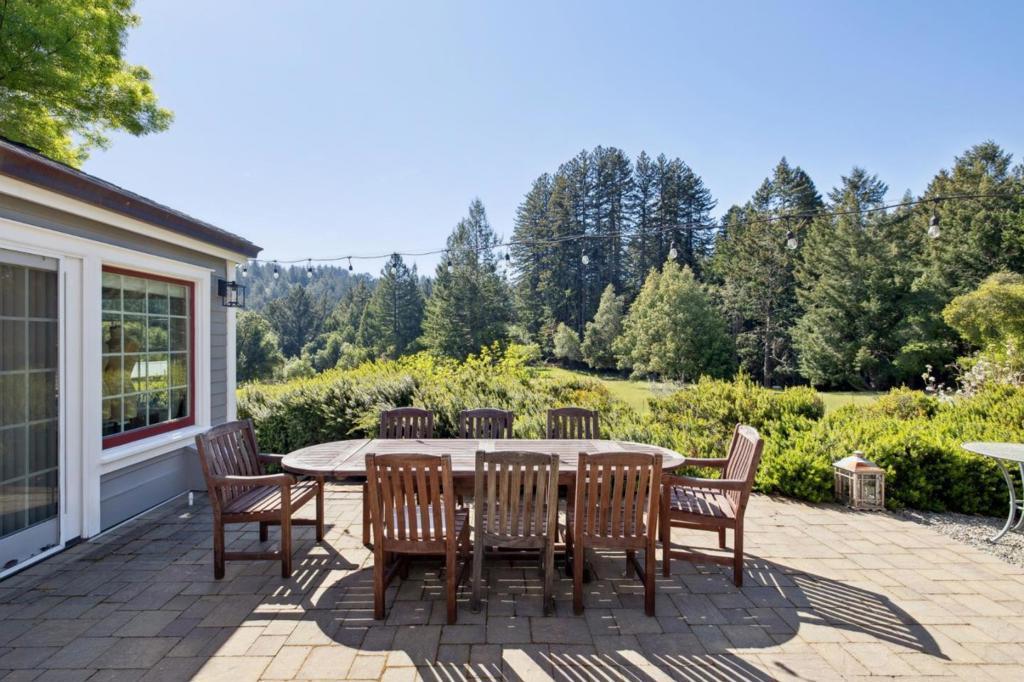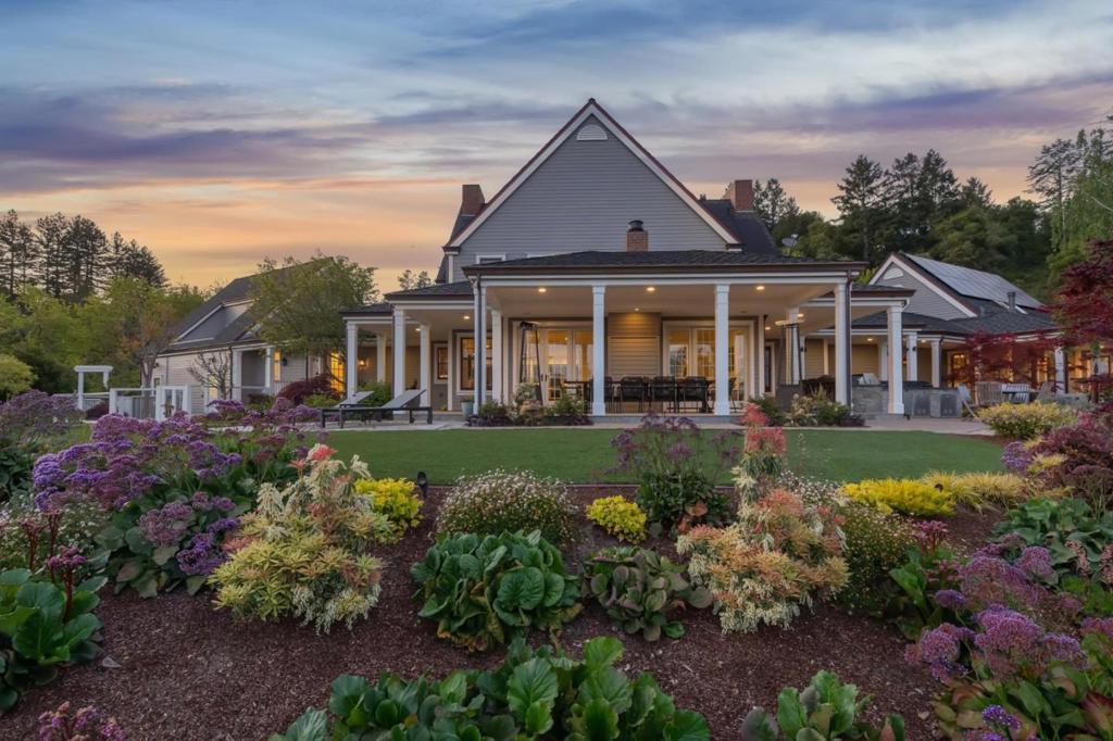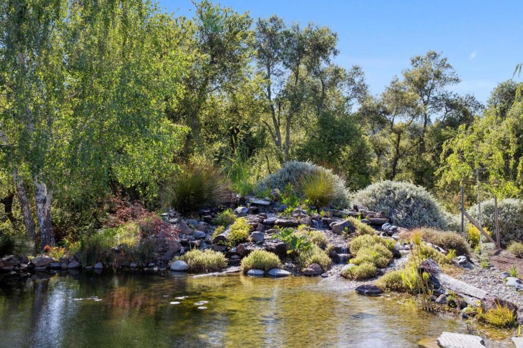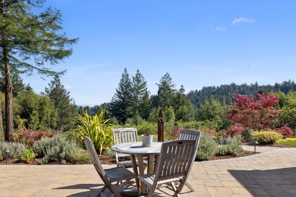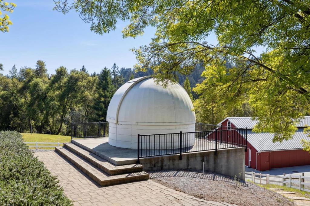 One-of-a-kind luxury estate set on ~30 acres with sunny pastures, redwood forest, & distant bay views. Impressive colonial style home with grand entry hall, formal living & dining rooms, family room, billiards room/library, wine tasting room with wine cellar, sumptuous primary suite with loft, 3rd floor recreation room & unfinished attic space, planned as home theater, has plumbing for half bath. All bedrooms have ensuite baths, 5th bed with wet bar over att. 3 car garage, and huge laundry room (potential 2nd kitchen). Detached guest house/legal ADU with own address: 3 beds/2.5 baths, sun room, private patio. Outdoor kitchen/living area with stone fireplace, European style pond with waterfall, beach entry & deck. Fenced gardens with custom pergola, mature orchard, bocce court. Fiberglass dome observatory with telescope, floodlit all-weather sports court, 60'x36' MD Barnmaster barn (inc. car lift, houses sellers' car collection), barn door raised for RV. Level/gently sloped fenced pastures, ample space to add a riding arena. Private trails through the redwood forest. Potential equestrian use, winery, organic farm, retreat/sanctuary. New roof, 22.5W solar system, auto generators for both houses. Only 1.5miles from Hwy 17, 8 miles/10-12 mins to downtown Los Gatos