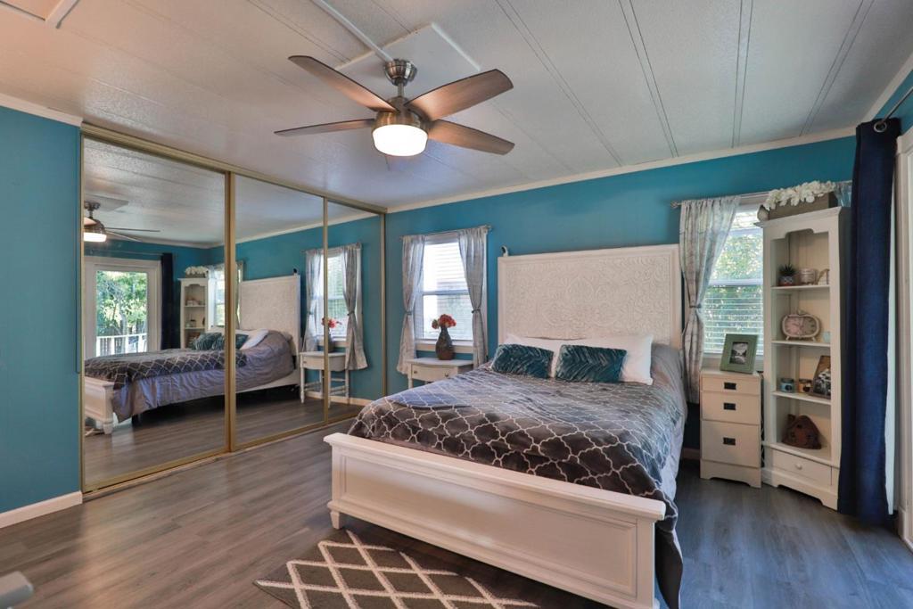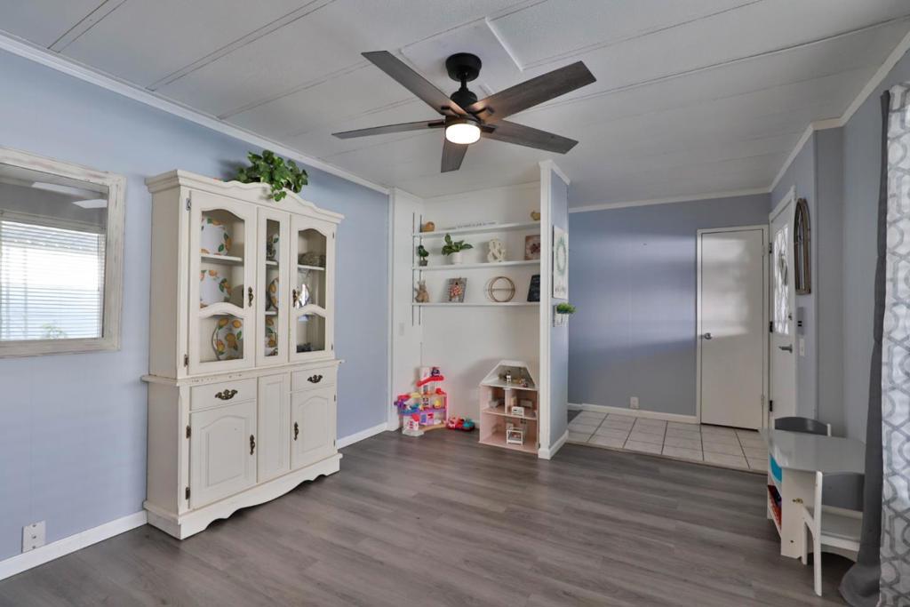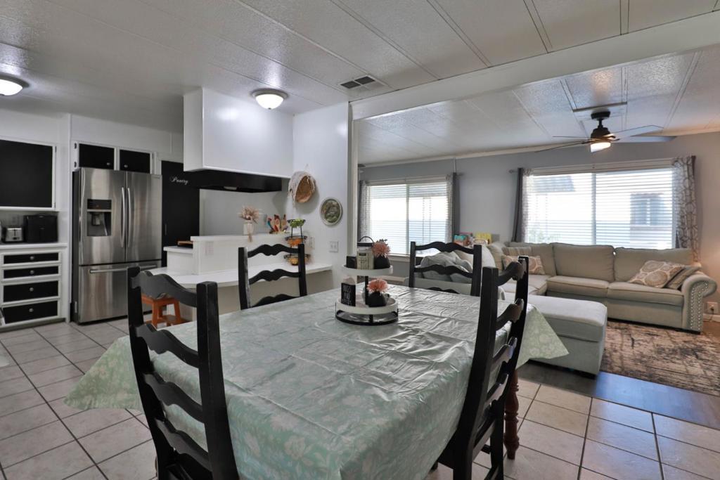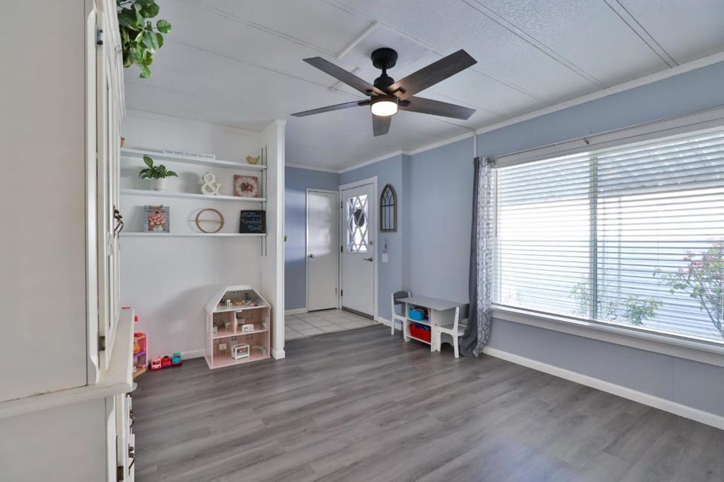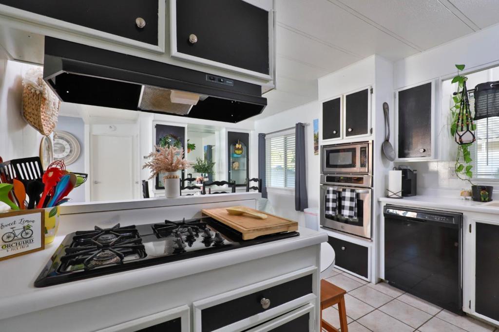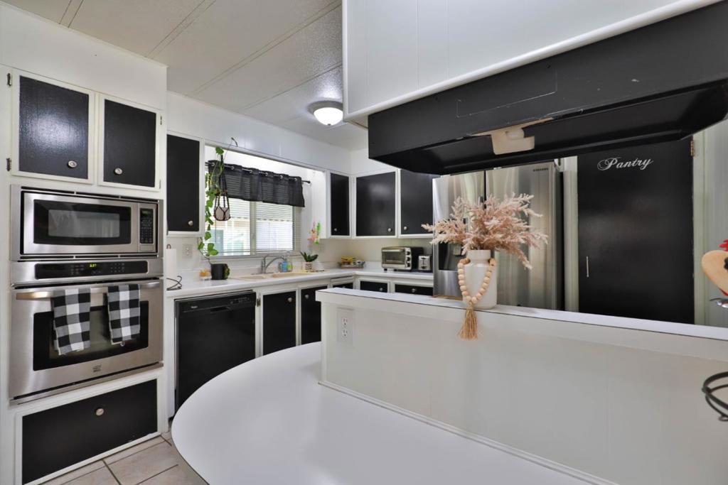 $250 Off Space Rent per month for the first year! Get moved in and through the holidays with a little help from the sellers! Move-In Ready bright and cheerful home tucked inside a well maintained all ages park, Surrounded by the vineyards of Lodi's celebrated wine country. From the moment you step up to the charming entry, you'll feel right at home. Inside, the spacious layout is designed with both comfort and privacy in mind. The primary suite is positioned at the rear of the home, featuring a large ensuite bathroom and shower over tub. A newly installed sliding door leads to your own private garden, recently landscaped with in-ground lemon tree and no rear neighbors! Up front you'll find two additional bedrooms and a stylishly updated full bath. The living room is filled with natural light pouring in through the oversized dual pane windows and rustic-modern ceiling fans add character and comfort. The heart of the home is the black & white themed updated kitchen boasting stainless steel appliances which opens to the dining area and its built-in hutch for storage & display. Adjacent cozy laundry room leads you out to the covered two-car carport and 2 8x6x7 storage sheds that both have power. Plus, the washer, dryer and refrigerator are included! Your Home Sweet Home!