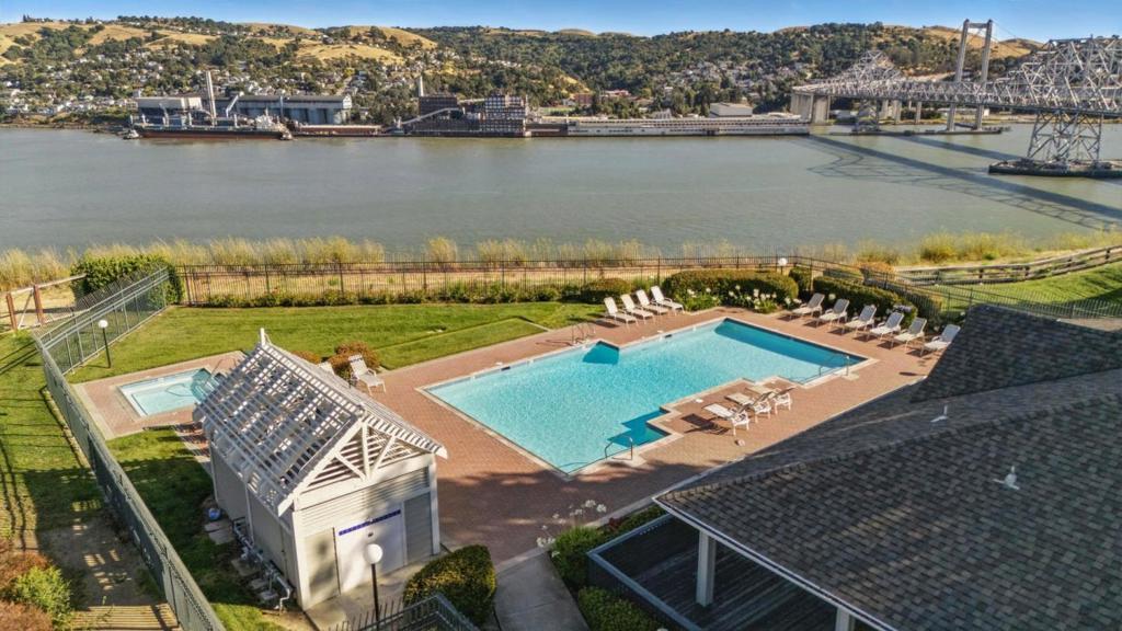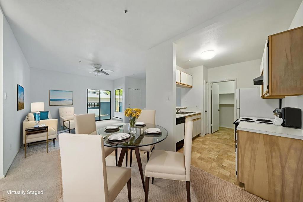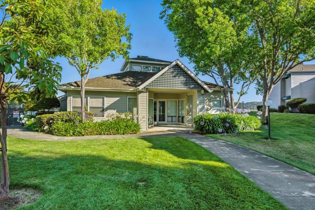 Tucked away in a quiet, private location, this desirable lower-level end unit offers comfort, convenience, and a spacious layout in beautiful Glen Cove. It features two generously sized bedrooms and full bathrooms, including a primary suite with a walk-in closet. The large living room opens to a peaceful front patio ideal for relaxing summer evenings while a separate dining area and well-appointed kitchen lead to a generous laundry room with full-size washer/dryer hookups and ample shelving. The patio also includes a large storage closet, and the nearby one-car garage offers additional storage, plus plenty of guest parking. Community amenities include a clubhouse, pool, and gym, with scenic trails showcasing stunning bridge and water views just moments away. Conveniently located near shopping, transportation, and freeways, this refreshed unit is move-in ready with great potential to make it truly your own.