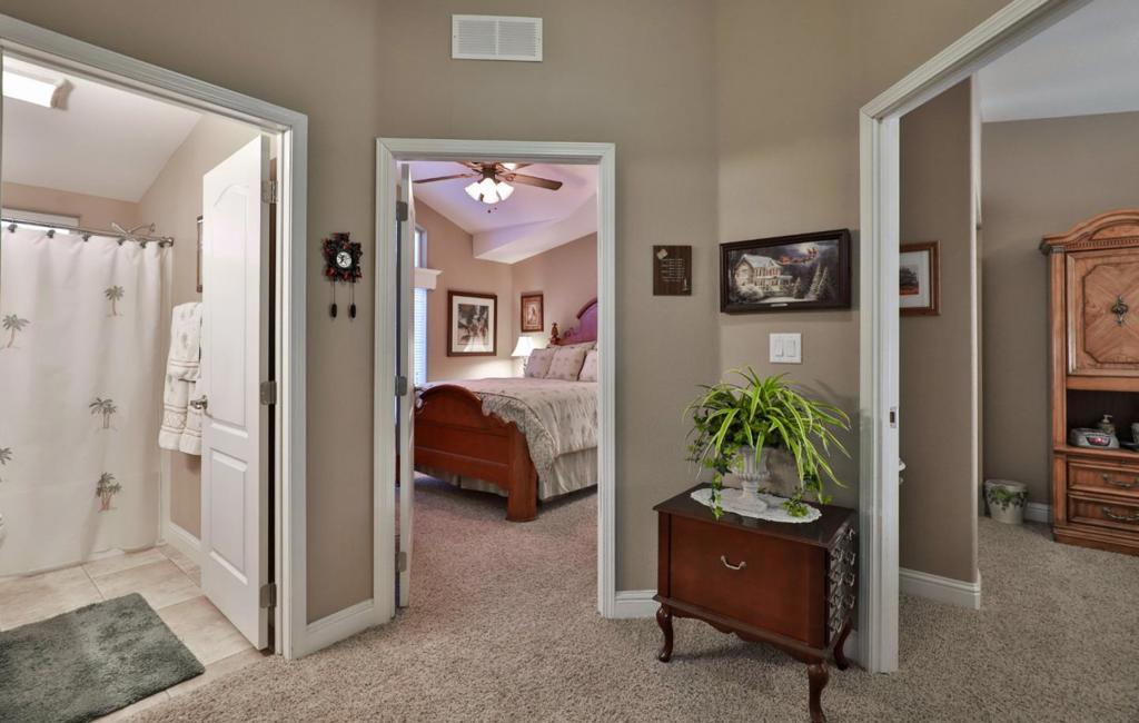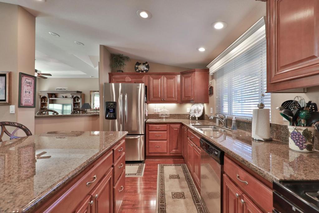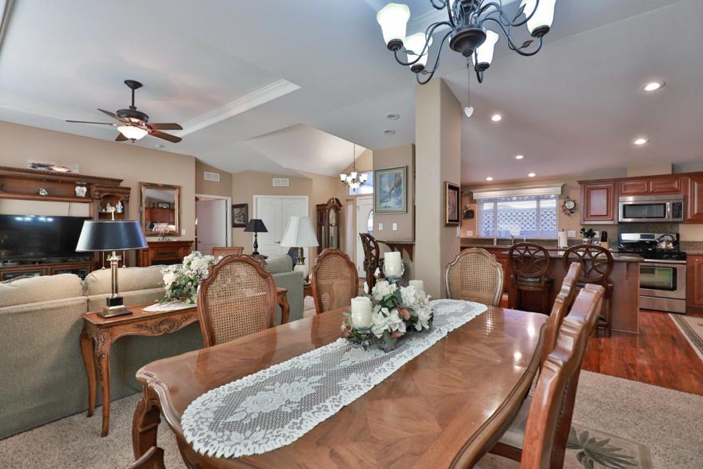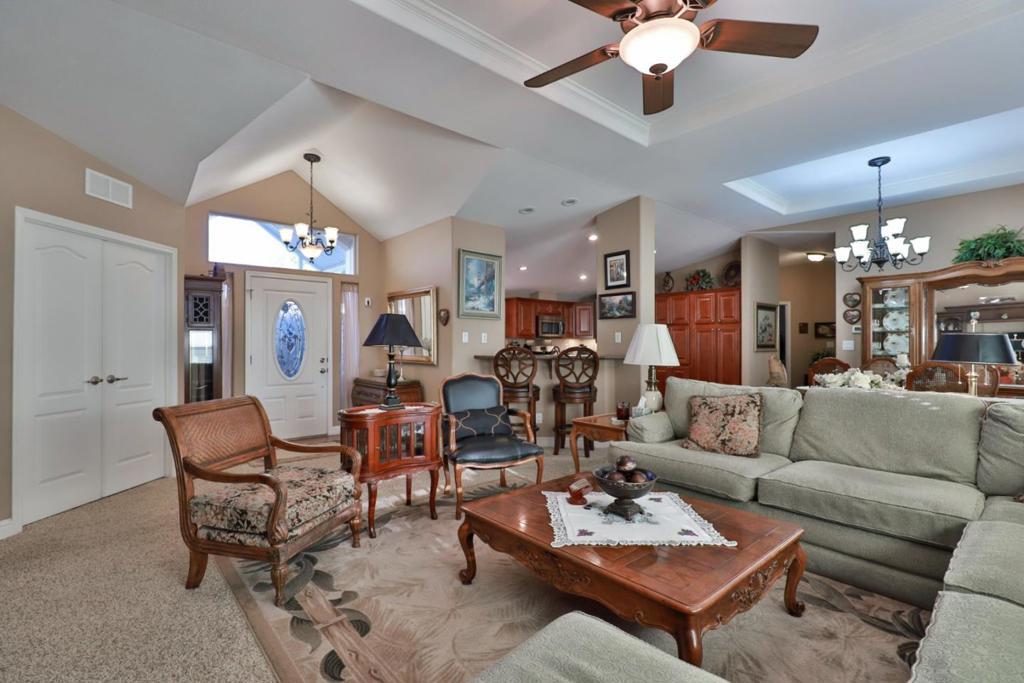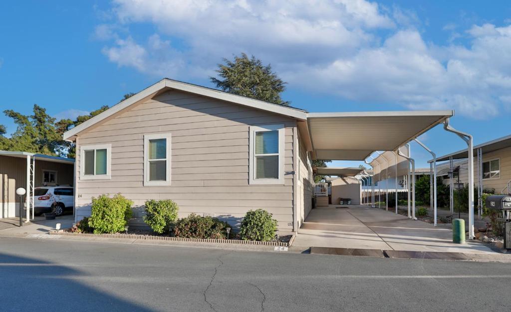 Step into timeless elegance with this beautifully appointed home, where every room is a showcase of refined craftsmanship and luxurious detail. Upon entry you'll notice the vaulted ceilings, the coffered ceilings, the recessed lighting and den. Then the welcoming great room as the heart of the home - an inviting space that effortlessly blends comfort and style. Offering warm neutral tones, there is a seamless flow into the dining and kitchen areas, breakfast bar to the kitchen, seating at the kitchen island, abundant custom cabinetry provides exceptional storage and ample counter space for all your culinary essentials. The primary suite is thoughtfully designed with privacy and relaxation in mind. Release the stress of the day in your soaking tub or enjoy the full size stall shower. Many other features include patio, front deck, storage shed, a huge laundry room, and room for at least 2 cars in the carport. This home offers a perfect balance of grandeur and comfort, crafted for those who appreciate quality. Nestled in the family friendly Arbor MH Park in the Lodi Wine Country with fantastic amenities include a pool, spa and outdoor basketball court, walking trails and clubhouse. All minutes away from charming Woodbridge, Downtown Lodi, the Mokelumne River and Lodi Lake!