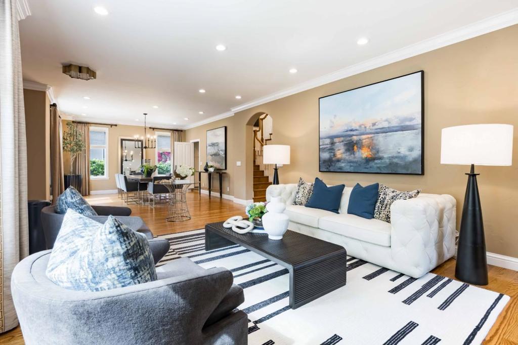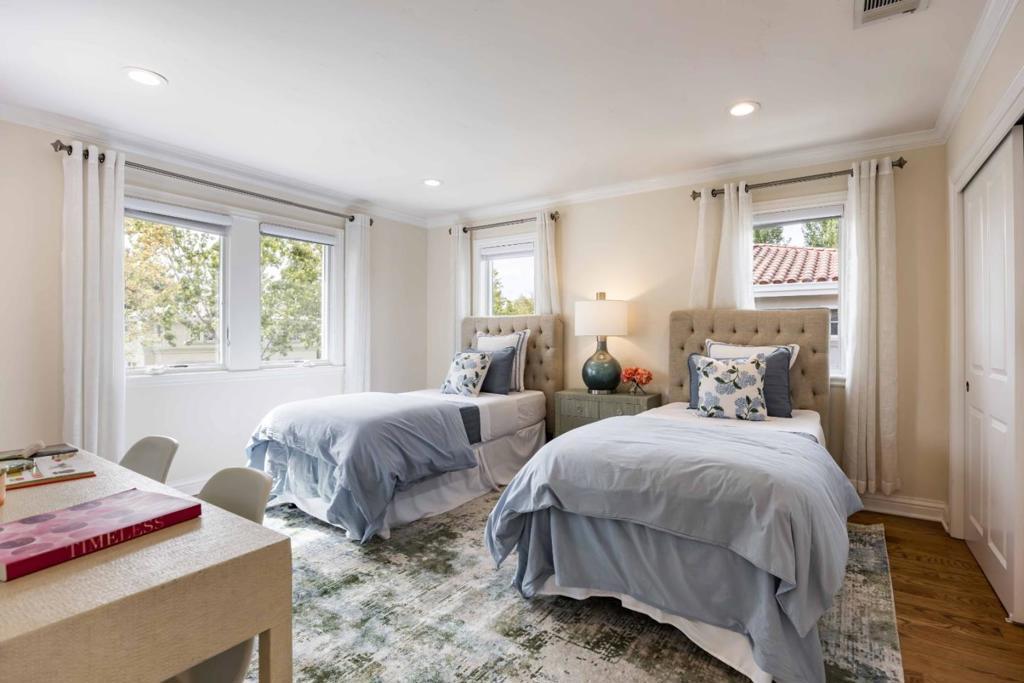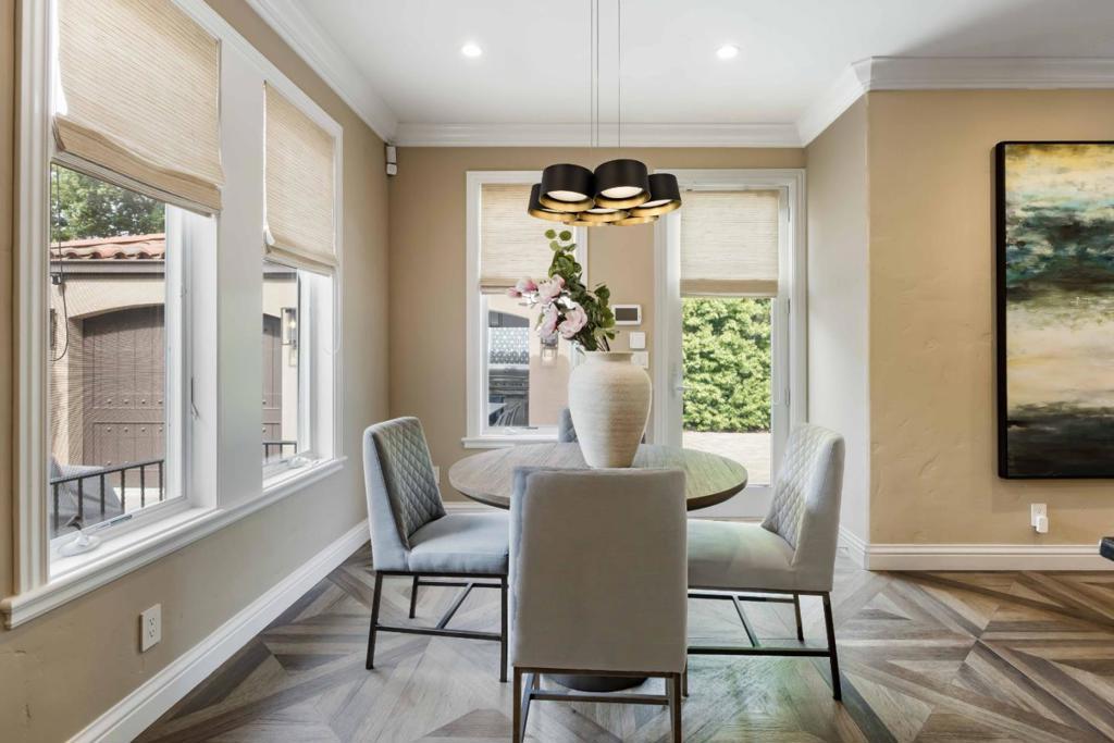 Tucked on a quiet cul-de-sac, this modern Mediterranean home pairs great curb appeal with over 4,500 sq ft of luxury. Hardwood floors, arched entryways, and natural light enhance formal rooms, a chef's kitchen with top-tier appliances, and a walk-out family room. The lower level features flexible space with a wet bar and a temp-controlled wine cellar for ~1,000 bottles. Six spacious bedrooms are spread across all three levels, including a light-filled primary suite with a jetted tub and separate shower. Outdoor highlights include a large third-floor terrace and an entertainer's backyard with a built-in grill, gas firepit, and covered patio with a heater. Additional features: AC on all levels, whole-home and backyard Sonos system, and a detached garage with gated driveway. Close to Terman Park, The Village at San Antonio Center, top commute routes, and top-rated Briones, Fletcher, and Gunn schools.