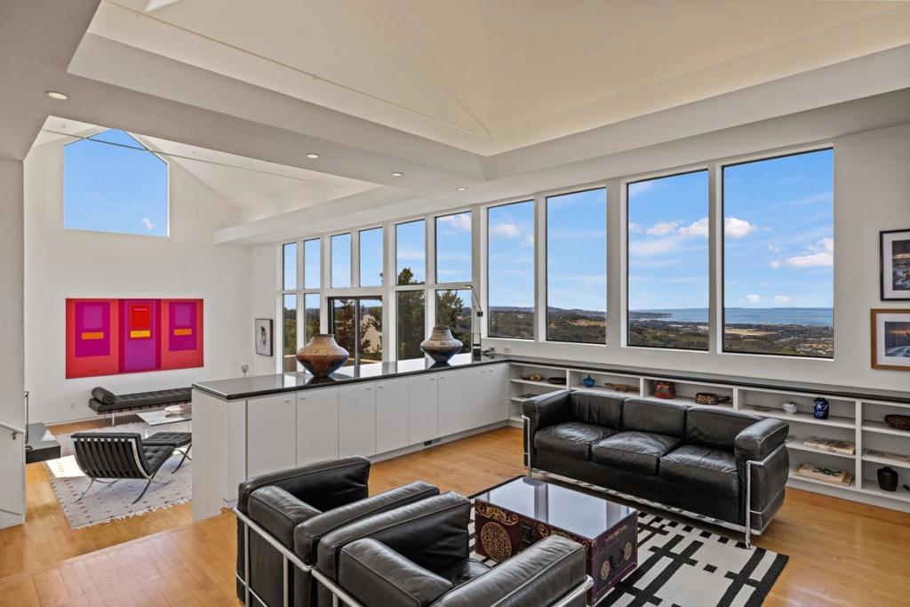 Contemporary elegance with breathtaking Monterey Bay views. Perched atop the serene and lush setting of Saddle Road, this contemporary modern masterpiece embodies a refined architectural vision defined by elegant proportions, clean lines, and meticulous attention to detail. Soaring ceilings and strategically placed light tunnels flood the home in natural light, creating a luminous and uplifting ambiance. The open-concept floor plan flows with grace, intentionally designed to guide your gaze toward the sweeping panoramic views of rolling oak-studded hills and the Monterey Bay beyond. Sleek, floor-to-ceiling cabinetry blends form and function, offering minimalist beauty and exceptional utility in every space. This home is a harmonious blend of contemporary design, artistry, and natural serenity just minutes away from all the wonderful amenities of the Monterey Peninsula.