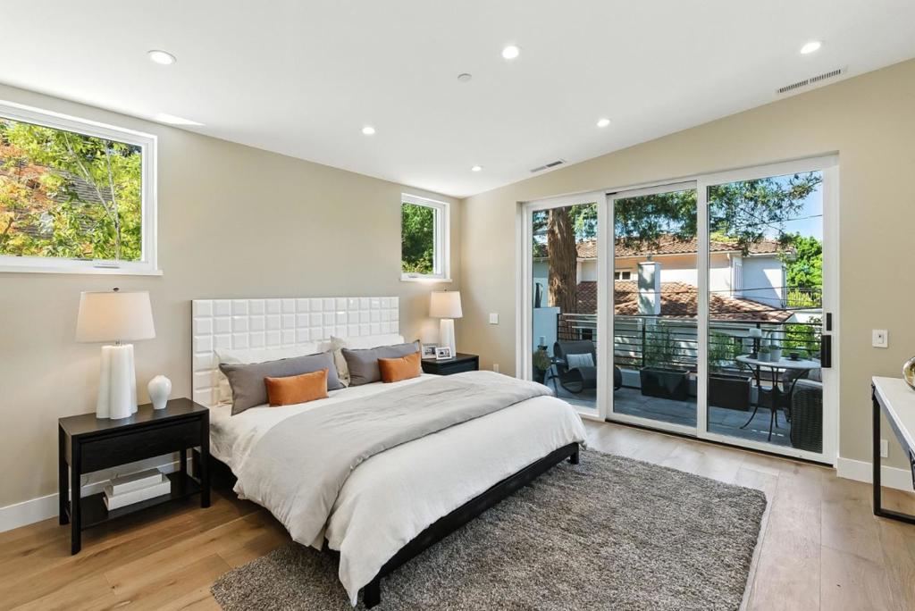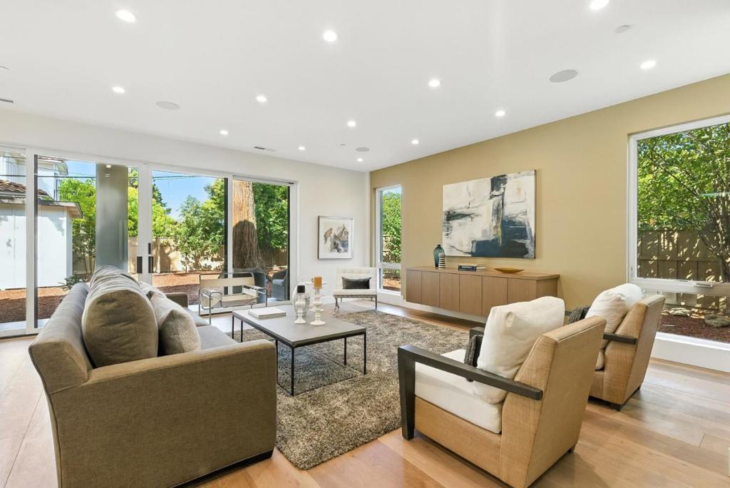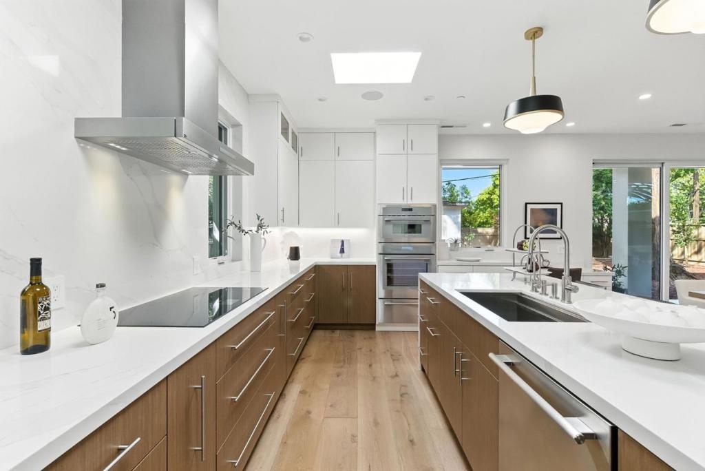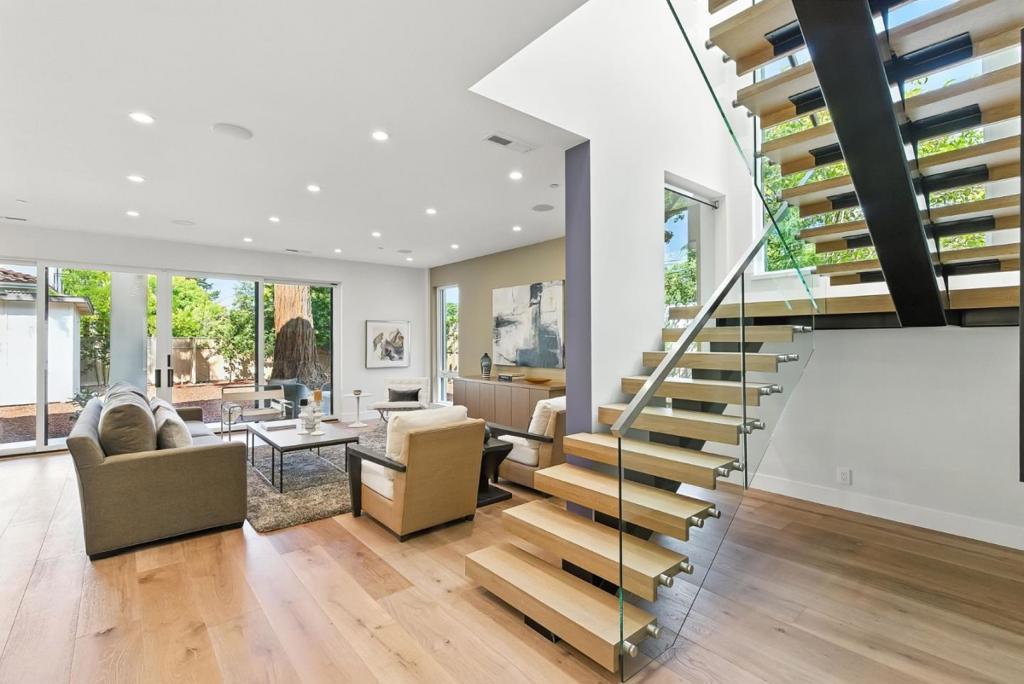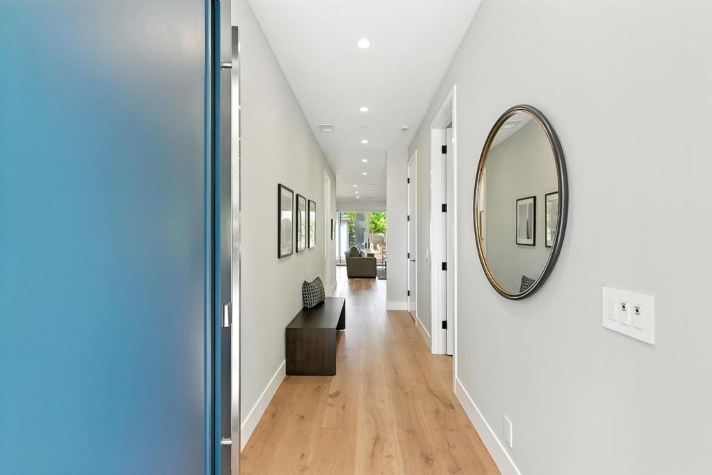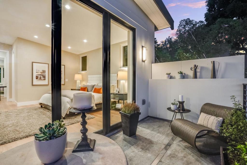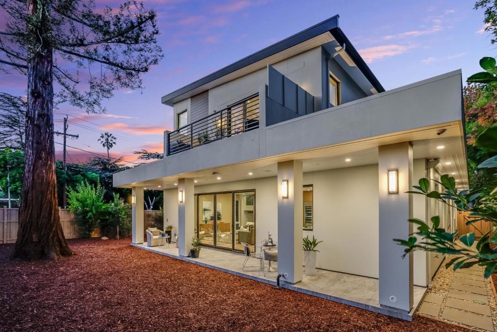 Completely new completed in June 2025. Beauty is more than skin deep 5 ft. deep foundation, steel framing, 10 in. thick exterior walls - be sure to see the features list in the property disclosures. Living space 2420 sq. ft. home, plus 434 sq. ft. garage & 221 sq. ft. patios & balcony. No remnants of the old structure remain, this stunning contemporary blends thoughtful design with luxurious finishes crafted for modern living & refined entertaining. The gallery-style foyer leads to a dramatic open-concept space, anchored by a striking modern staircase. The kitchen is a true showpiece, outfitted with Thermador appliances. A custom wine tower adds elegance, perfect for entertaining. Ample cabinetry provides generous storage, while a fresh air exchange system ensures cooking odors are continuously replaced with clean, filtered air. All four bedrooms feature ensuite bathrooms with Grohe fixtures and Toto bidets, combining comfort and modern luxury for residents & guests. The expansive primary suite opens to a private balcony with views of mature trees while the spa-inspired bathroom includes a soaking tub, oversized shower, & a serene atmosphere to begin or end your day. Engineered for both beauty & performance, the home also includes advanced insulation, dual HVAC systems, & solar.