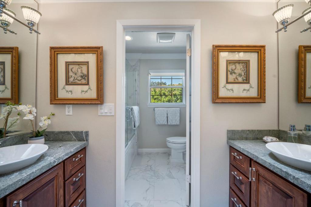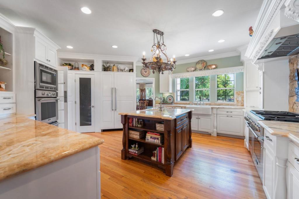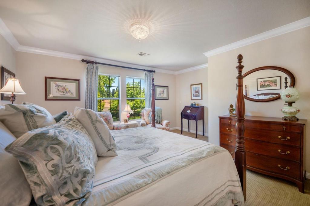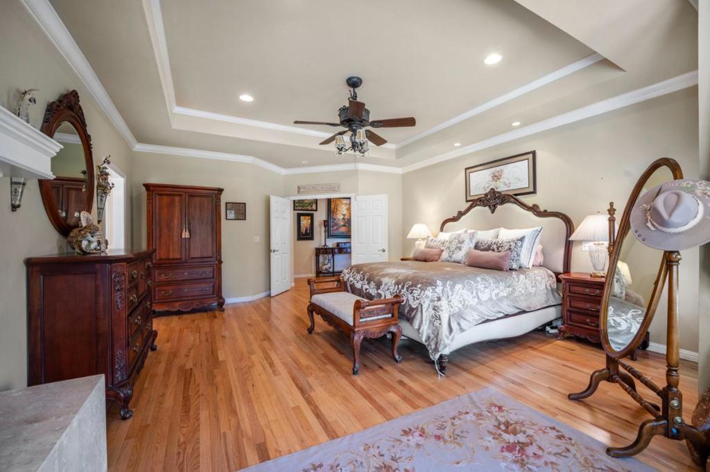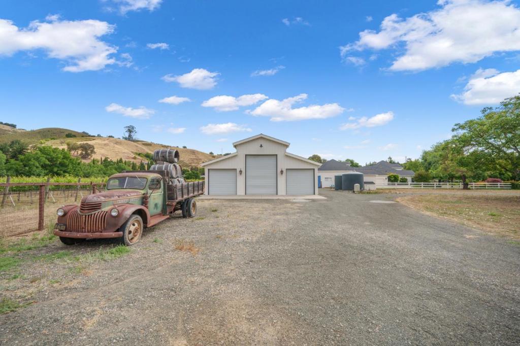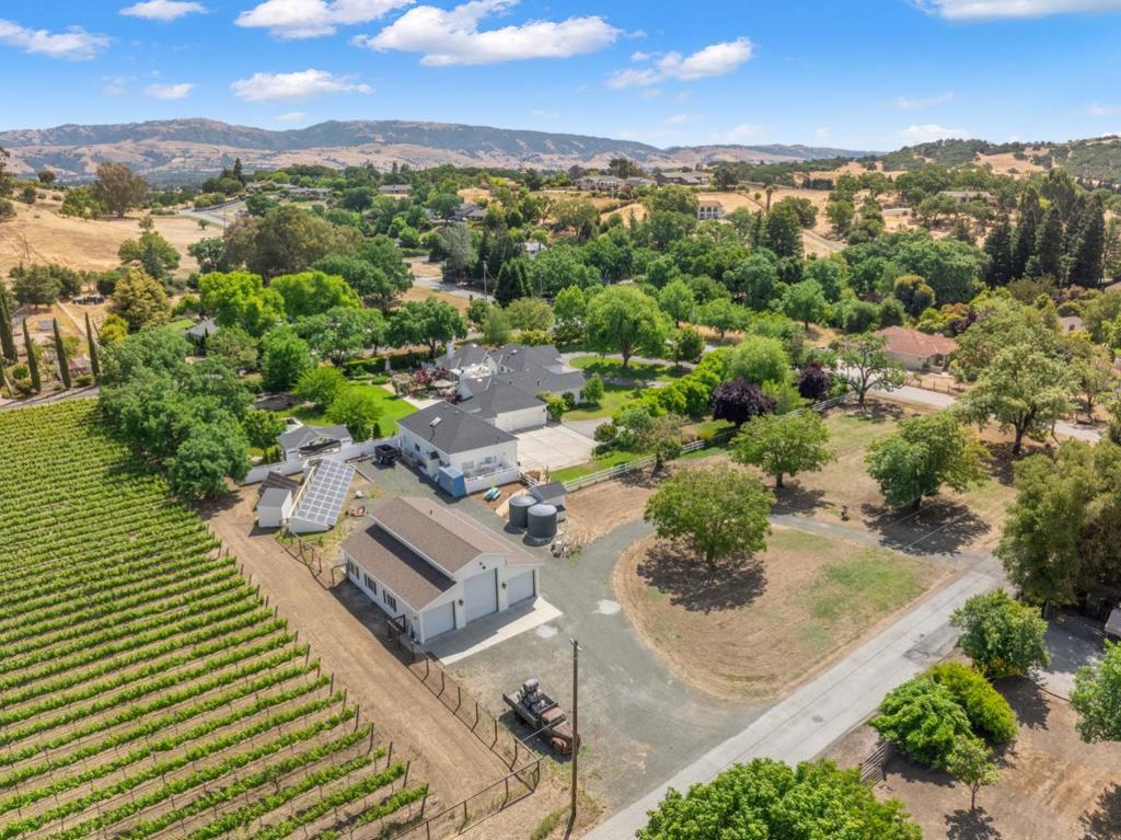 Experience luxurious country living in this stunning Morgan Hill estate on 5 gated acres! The home features 4621 sq ft of living space with a ground floor primary suite, downstairs bedroom with an en suite bathroom, 3 bedrooms upstairs, 4.5 baths, and an office. The gourmet kitchen boasts Thermador appliances, a 6-burner gas range, 3 ovens, pantry, and a large island. The family room, with its cozy fireplace and wine bar featuring two 98-bottle Thermador wine coolers, is perfect for gatherings, while formal living and dining rooms add sophistication. The property is an entertainer's dream with a sparkling pool, outdoor kitchen, gazebo, covered patio, fire pit, bocce ball court, and expansive lawns. A private 1.25-acre vineyard with Primitivo grapes is currently sold to local wineries. Car enthusiasts will love the dual 3-car garages, one with a private studio & bathroom, plus upstairs living space, totaling approx 1302 sq ft. A 1,920 sq ft barn with roll-up doors serves as an RV barn or event venue. Enjoy sustainable living with two wells and owned solar panels for the house and pool heater. Relax in the hot tub or savor panoramic hill views from the upstairs balcony. Plenty of room for guests with dual entrances and ample parking. Make this stunning estate your sanctuary today!