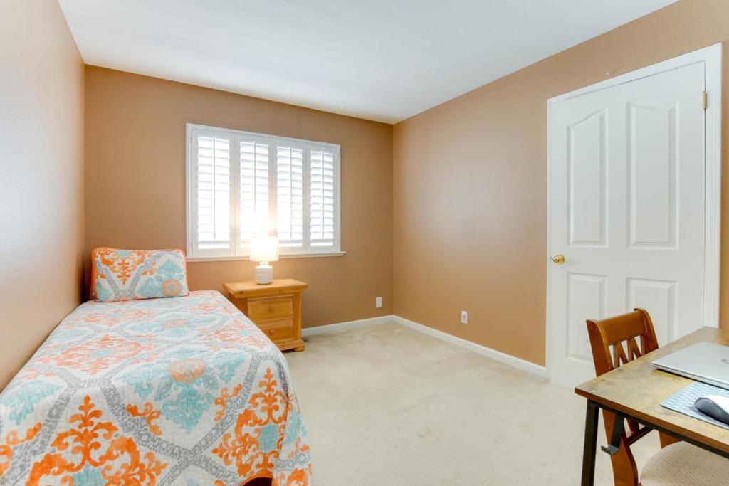 This spacious 4 bedroom with converted downstairs den made into 5th bedroom, 2-bathroom home offers a comfortable lifestyle with its well-thought-out design and modern amenities. The kitchen is a culinary enthusiast's dream, featuring a built-in oven range with gas, a convenient island, newer Formica countertops, a dishwasher, microwave, garbage disposal, and a pantry for ample storage. The home boasts a variety of flooring options, including carpet, laminate, and tile, to suit any taste. Enjoy cozy evenings by the tile faced fireplace in the separate family room which joins the kitchen area for cozy gathering for meals with family and friends, which can accommodate for the more casual dining and entertaining. There is a formal dining room for the more intimate gatherings with an easy access to the kitchen with the pass-though area. The primary bathroom includes double sinks and an oversized tub, providing a spa-like retreat. Laundry convenience is found on the upper floor, simplifying household chores. Additional highlights include a walk-in closet, central AC for comfort, and a 3-car garage. This Hollister home is truly a blend of functionality and style, ready to welcome its next owners.