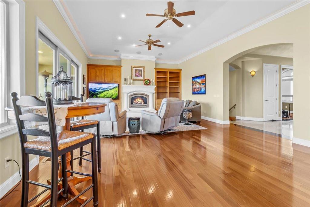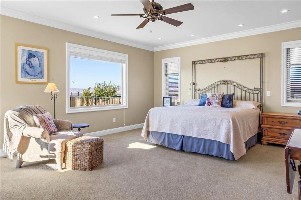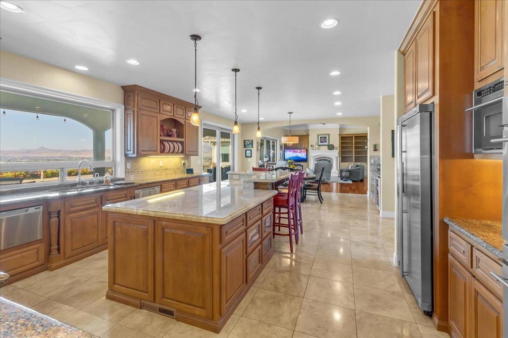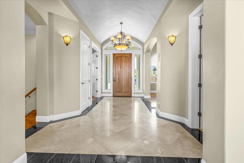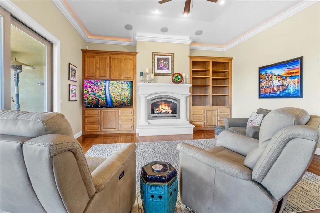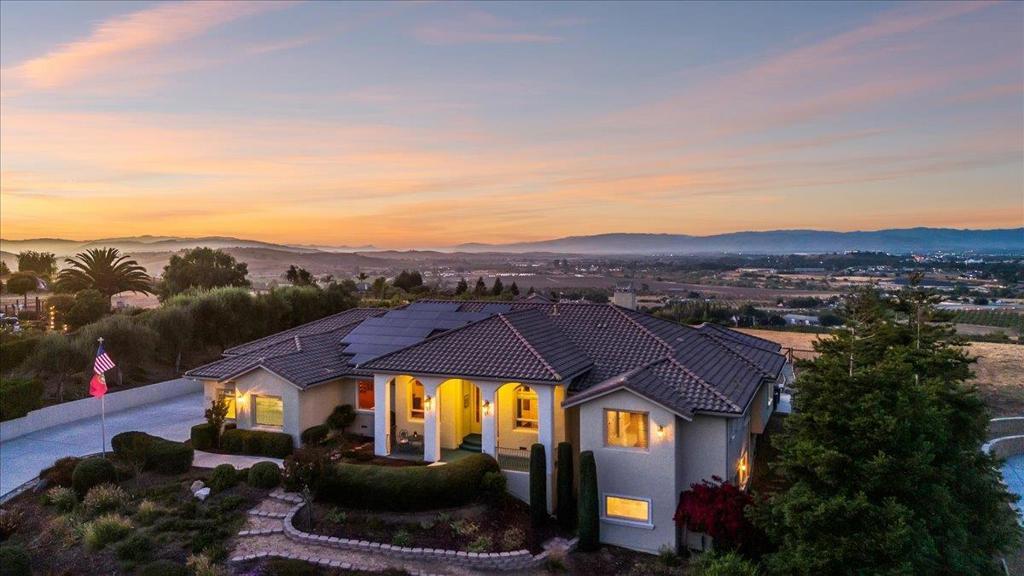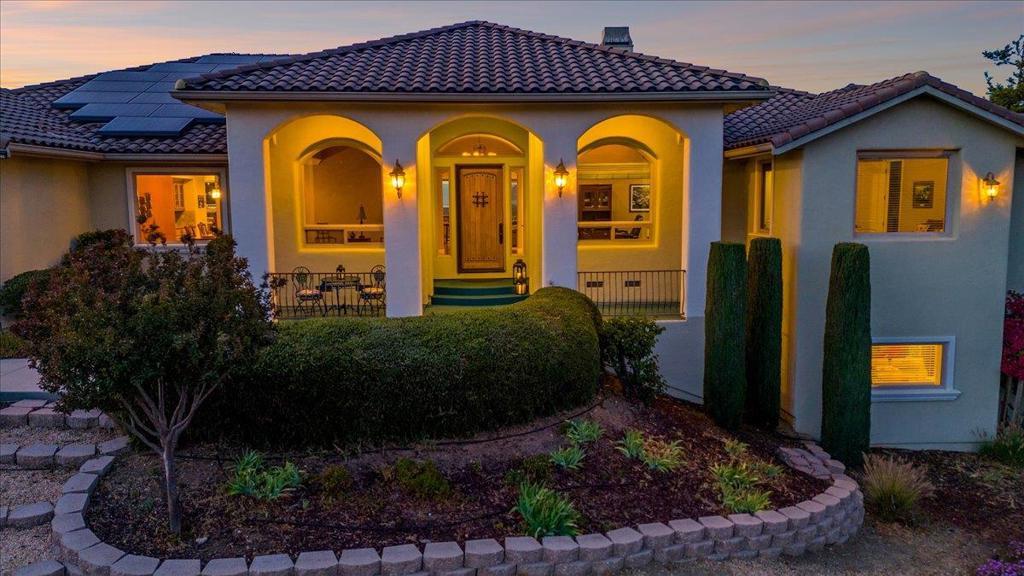 Well-Appointed Home in Gated Foothill Community with Panoramic Views.Over 4,000 Sq Ft + 700 Sq Ft Finished Bonus Room | 1+ Acre | 4 Beds 3.5 baths+ Office in Gated Community. Enter through a barrel-ceiling foyer into this stylish custom home with 4 beds, 3.5 baths, an office, and a large bonus room with a private entrance. Formal living/dining rooms feature crown molding and rich finishes. The open family room offers built-ins, surround sound, custom gas fireplace that flows into a chef's kitchen with granite island and countertops, custom cabinetry, double ovens, a 5-burner range, dual drawer dishwashers, a walk-in pantry with wire shelving, and a separate butler's pantry with barrel ceiling. Travertine and hardwood floors, high ceilings, dual-zone HVAC, solar panels, and solid 8-ft doors throughout. Expansive laundry/utility room with granite counters, deep sink and desk. The Primary suite has a spa-like bath, jetted tub, triple-head shower, and deck access. The private guest/in-law suite features a separate entrance, sitting area, and full bath. Jack & Jill bedrooms share a full bath. Enjoy city lights views from a spacious deck and patio with gas & solar-heated pool, spa, vineyard, fruit trees, 3-car garage, and storage in the subarea. HOA includes clubhouse and park.
