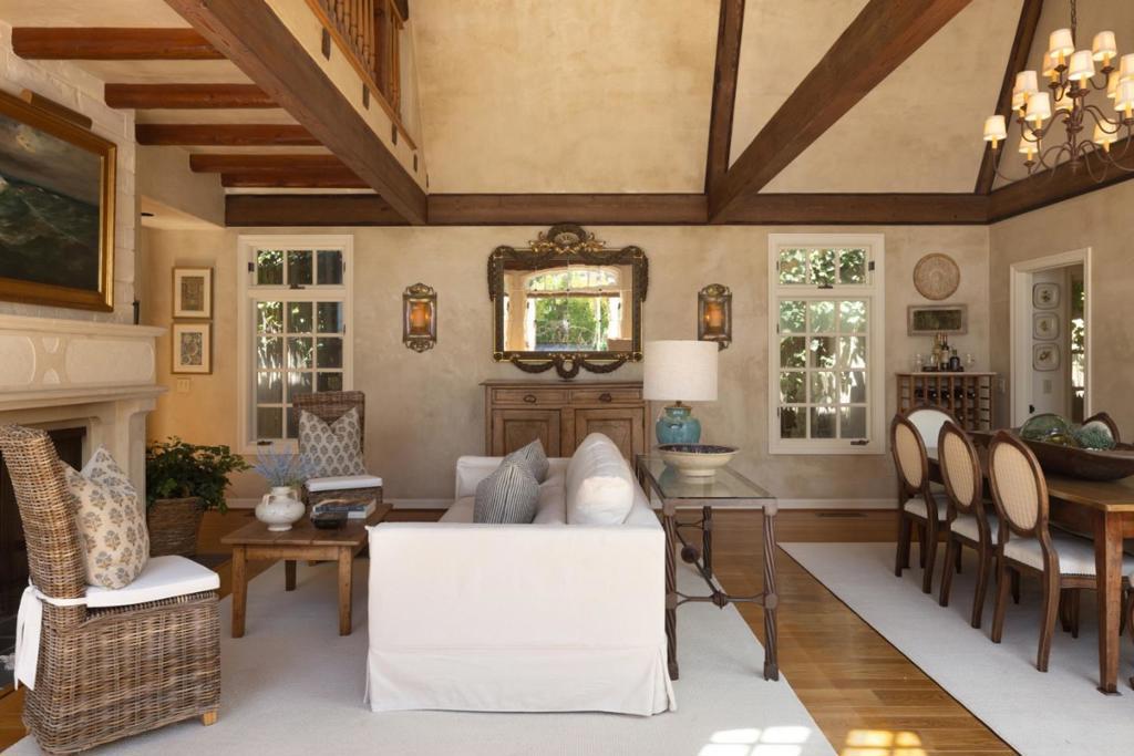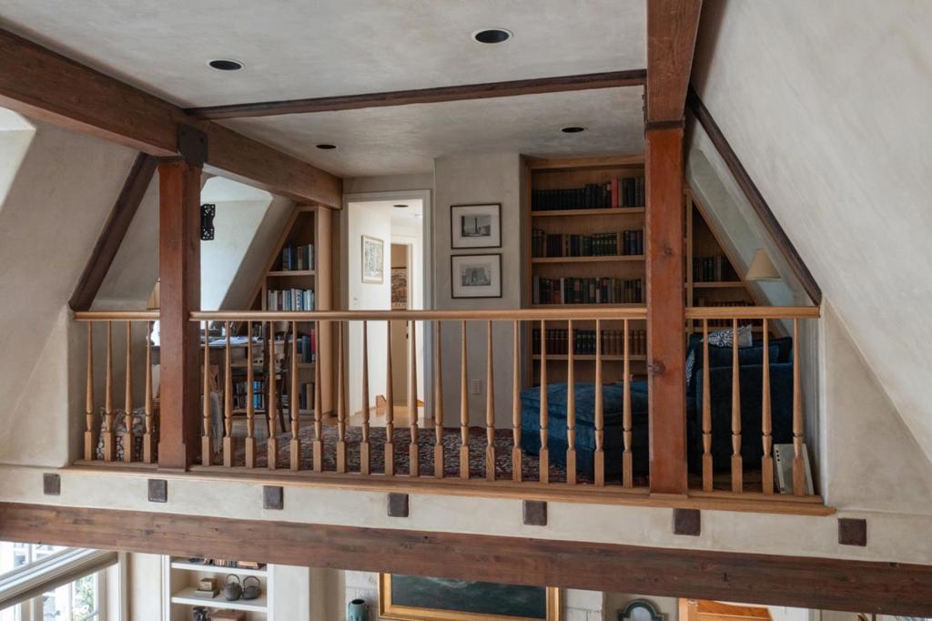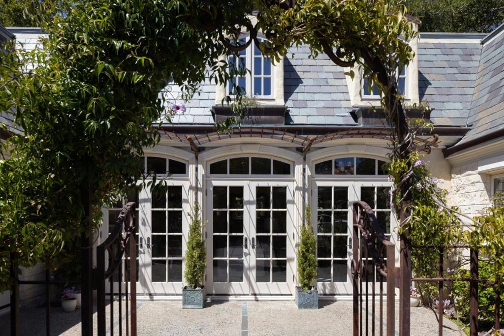 Bathed in sunlight on a quiet, south-facing corner just 3 blocks from the beach in Carmels coveted Golden Rectangle, this French Provincial jewel evokes timeless elegance and European charm. A slate roof, patinaed copper gutters, tall arched French doors and windows, and wrought iron accents grace the limestone and stucco exterior. Inside, vaulted ceilings, hand-hewn wood beams, and Venetian plaster walls elevate the interiors with warmth and sophistication. The grand living room centers around a carved limestone fireplace flowing seamlessly to a refined dining area and a cozy kitchen with its own hearth. The soothing sound of waves drifts through open windows and doors, bringing the coasts rhythm into daily living. A bright, main floor primary suite offers a peaceful sanctuary with direct access to sun-dappled patios, perfect for morning coffee or relaxing after a sunset stroll along the beach. A privately situated 2nd bedroom and bath offer stylish comfort for guests, while an inviting library loft and whimsical childrens bunk bed nook above provide quiet spaces to read or dream. Whether cherished as a romantic pied-à-terre or lived in year-round, this storybook home, complete with garden pathways and a single-car garage, is a rare find in the heart of Carmel-by-the-Sea.