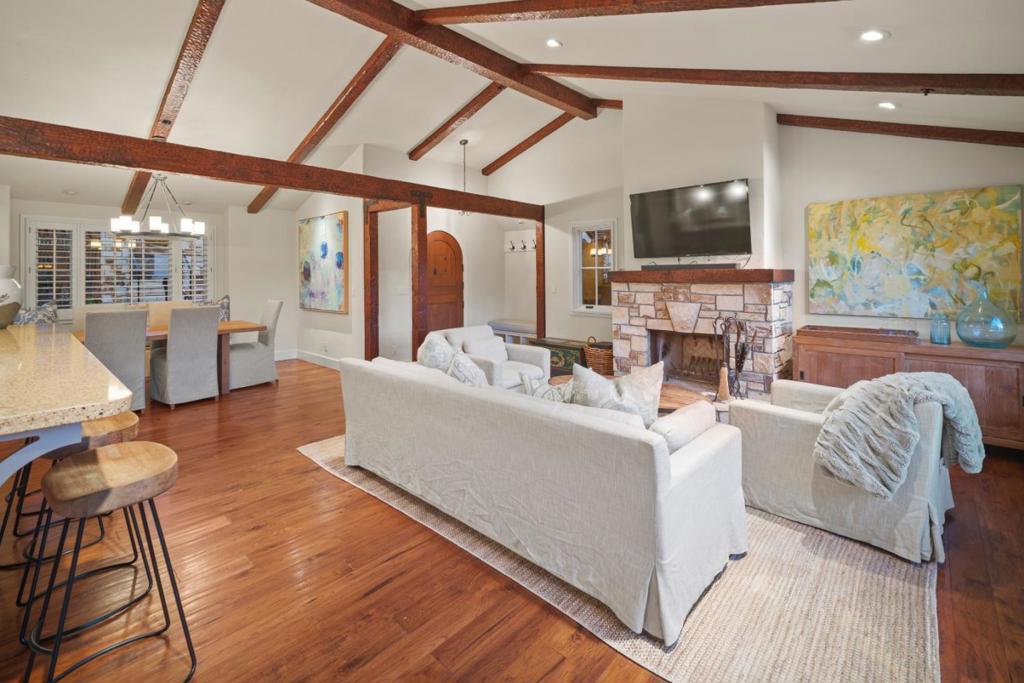 This beautifully updated 4 or 5 bedroom, 3 & 1/2 bath home offers 2,241 sq. ft. of stylish living space on a downtown 6,000 sq. ft. lot. The home features hardwood floors, updated kitchen and bathrooms, and fresh paint inside and out. Enjoy expansive views from Point Lobos to The Lodge and Pebble Beach Golf Links, with year-round sunset ocean views from the upstairs bedroom and balcony. Relax and entertain on the spacious main level deck off the great room, overlooking the freshly landscaped backyard. Conveniently located with easy access to Carmel Beach, Pebble Beach, and Downtown Carmel to enjoy the world class shopping and restaurants. A one-of-a-kind, must-see charming and spacious Carmel coastal retreat!