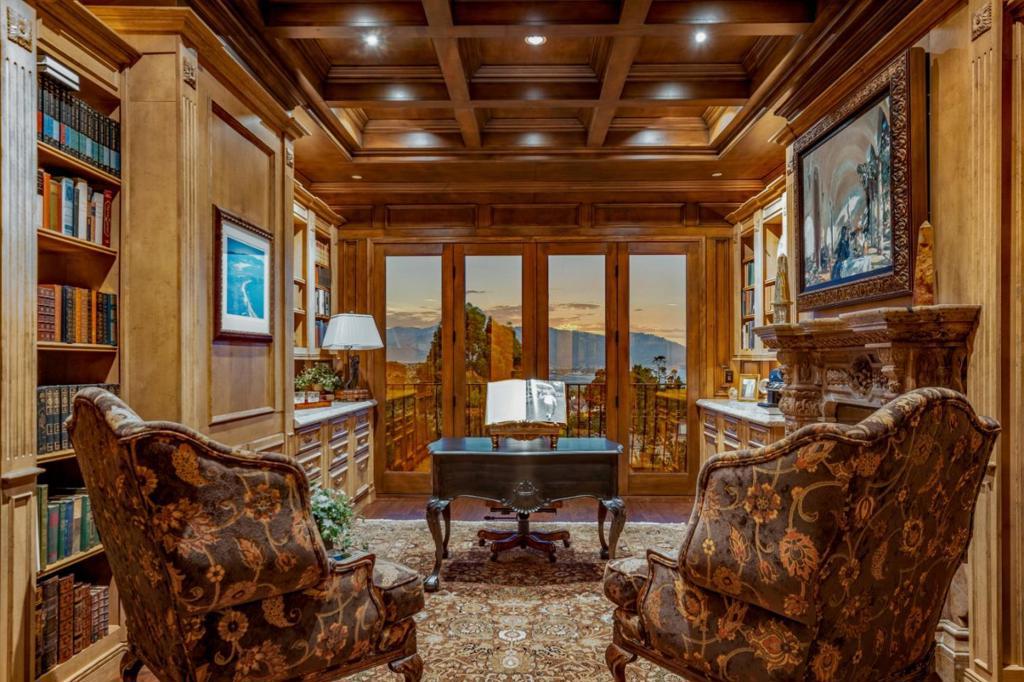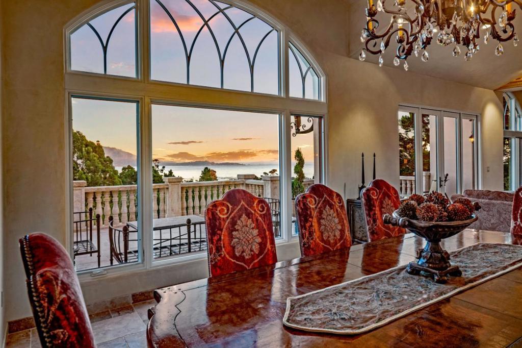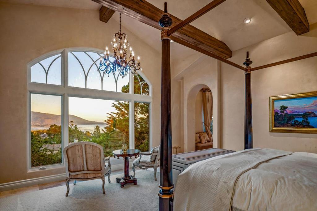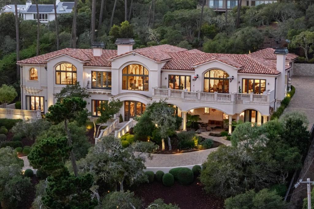 You are going to love this spacious, private, gated estate with fantastic views of Stillwater Cove located above The Lodge at Pebble Beach. There are large south facing windows bathing the interior with natural light and frame the scenic beauty of Carmel Bay and Point Lobos and the Pebble Beach Golf Course. The main level has high ceilings with exposed beams and is home to the beautiful primary retreat, an open space for your living room, dining area, breakfast nook that is bookended by two marble fireplaces and of course the kitchen with a sizable butler's pantry. Take the elevator down to the lower level where there is a family room, an amazing home theater with murals of Pebble Beach painted on the wall, a workout room and a wine cellar with a wine bar and 3 more ensuites and a large guest suite.