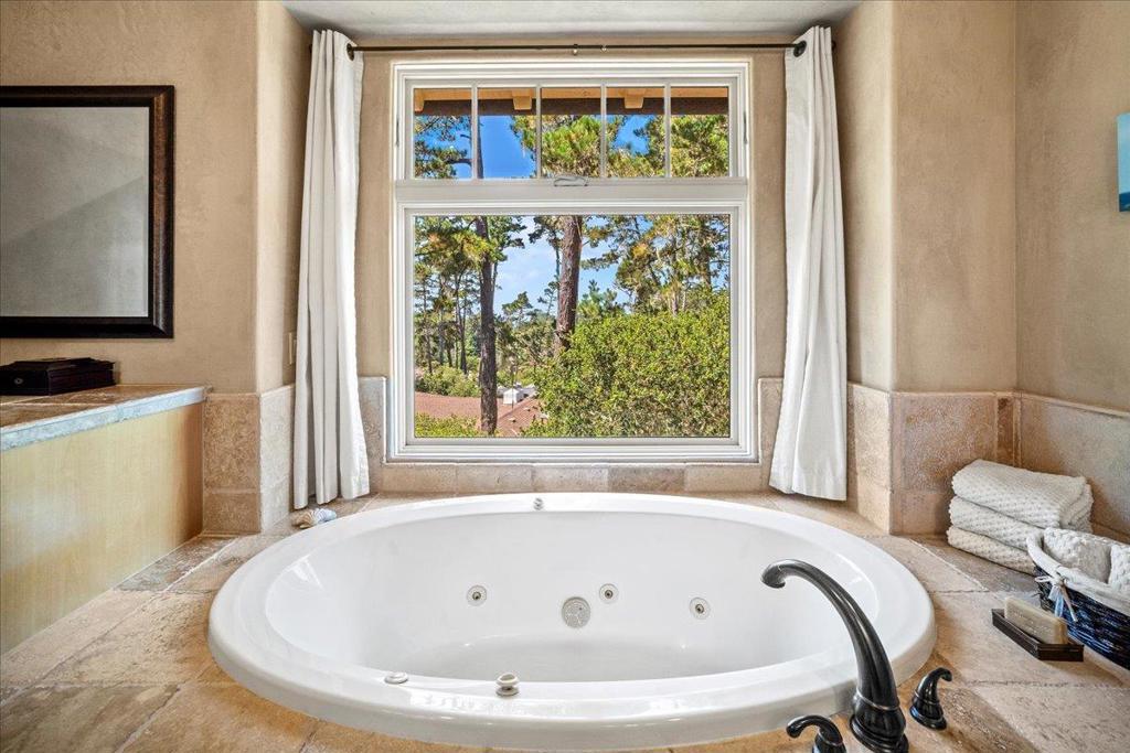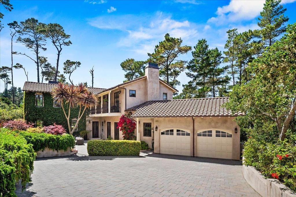 Tucked behind a private gate, nestled on an oversized 1/3 acre lot, this exquisite Spanish Mediterranean retreat offers timeless design, refined craftsmanship and unmatched privacy. This spacious home is surrounded by a meticulously landscaped yard with scenic patios, balconies and a hot tub over looking the peaceful garden making it ideal for relaxing or entertaining in elegance and comfort. The property sits adjacent to several hundred acres of forested preserve with walking and riding trails offering the best of outdoor opportunities. This home features 4 spacious bedrooms and 3.5 bathrooms, including two elegant primary suites, one on the main level, both with spa inspired bathrooms and private outdoor access. Special perks such as a whole house generator, car lift and safe pet in and out access enhance the livability. Ocean peeks are visible throughout the home, where large windows and graceful balconies welcome natural light and coastal breezes. Located moments from Monterey Peninsula Country Club, world-class golf and the scenic 17 Mile Drive as well as shopping, this property offers both seclusion and convenience in the heart of Pebble Beach.