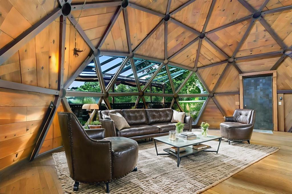 Tucked at the end of a quiet one-lane road, this remarkable geodesic dome home channels the vision of Buckminster Fuller in a stunning architectural statement. Nestled on a private one-acre hillside, it offers panoramic views of Diablo Valley and a true escape into nature. Exceptional Lafayette schools. The dome features recycled wood interiors, skylights, and expansive windows that fill the space with light. Unique touches, such as handmade stained glass, colorful cabinetry, and a custom shingled exterior, add charm and personality. Inside, a dramatic triangular window wall opens to a large deck, and the home features an updated kitchen, spacious bedrooms and baths, as well as both living and family rooms for relaxed, inspired living. In January 2025, during the PG&E power shutoff, Lafayette residents faced days without power. But this home, powered by solar panels and 2 Tesla battery backup, stayed fully functional. "While neighbors relied on flashlights, our lights were on, the fridge running, and our lives uninterrupted." All virtual staging is created solely for marketing purposes. Buyers shall satisfy themselves with a personal examination of the property. Seller is committed to fixing all mandatory inspection findings before closing of Escrow or crediting the Buyer.