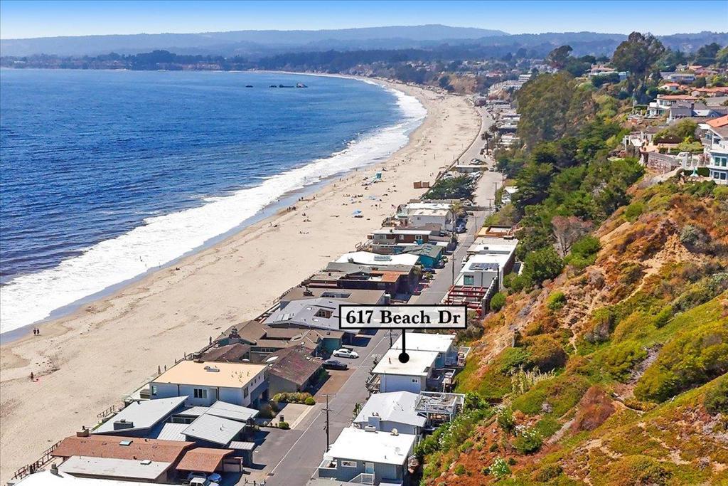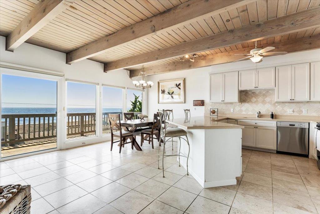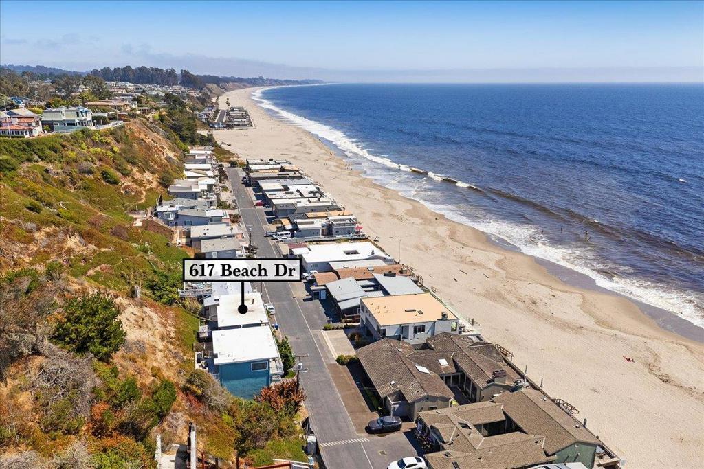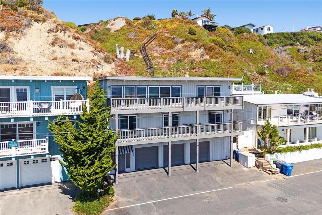 This charming coastal retreat offers sweeping Monterey Bay views from the kitchen, living room, and all 4 bedrooms. Located securely behind the gate in the Rio Surf & Sands community, the setting is unmatched. The great room showcases open-beam ceilings and a wall of glass that opens to the deck for effortless indoor/outdoor living. Kitchen, living, and dining flow together for easy entertaining and everyday comfort, and the floor plan provides excellent separation of space across three levels. Approximately 2,000 sq ft of living space plus a rare 3-car garage means plenty of parking and room for boards, bikes and beach gear. Positioned along the gentle hillside, the property, per seller, sustained no notable damage during the storm surges of the last two winters. From here you are minutes to Seacliff State Beach, Seascape Golf Course, and world-class hiking and mountain biking in The Forest of Nisene Marks State Park. Close to surf breaks, coffee, shopping, and dining - this isn't just a beach house - it is a launchpad for your Aptos lifestyle. Enjoyed by this family for over 30 years and surrounded by exquisite custom homes, the value and upside potential at this Beach Drive address are exceptional.
