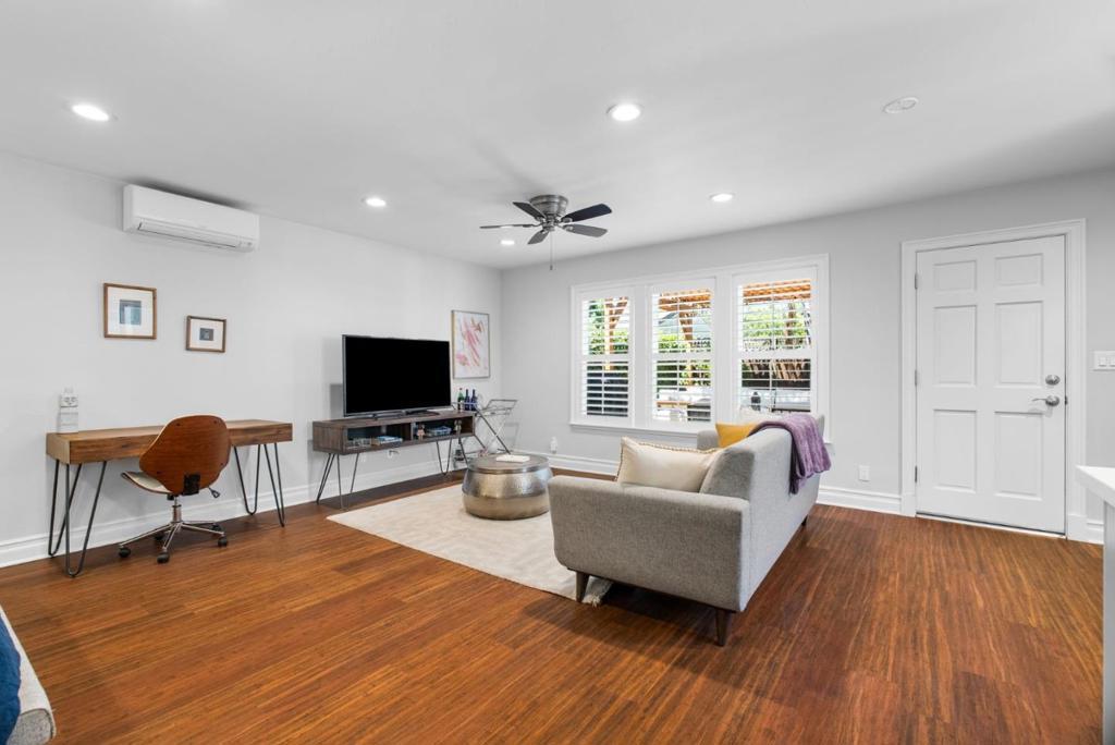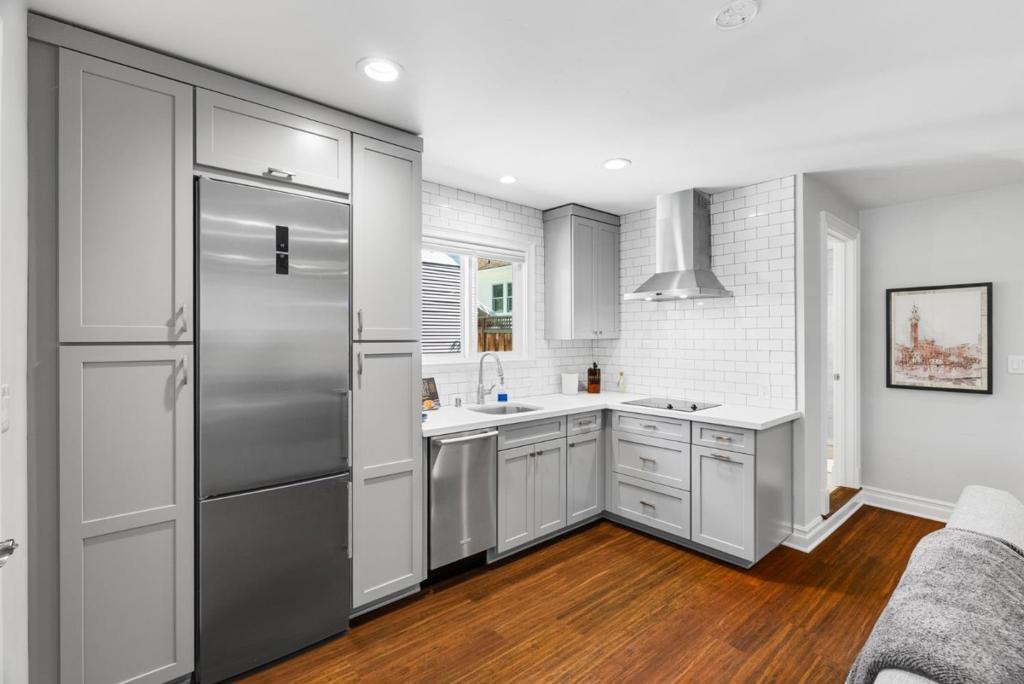 Pairing 21st century upgrades with classic Craftsman character, this remodeled and move-in ready single family home plus detached ADU (good for income generation or multi-generational living) offers almost 1,800 square feet of combined living space (1,267 sq ft 3 bed/2 bath main house and 517 sq ft detached designer ADU) in the vibrant heart of Shasta Hanchett Park, a short walk from CalTrain, Whole Foods, the Rose Garden, concerts and sporting events at the SAP Center, and endless local restaurants and coffee shops. Extensively fortified and upgraded both functionally and aesthetically, the laundry list of functional improvements include a sprawling, improved basement with a full vapor barrier, in-ceiling lighting, upgraded plumbing throughout, updated 200amp electric, updated central heat/air and ductwork, and professionally-installed hardscape with gated off-street parking. Solid oak hardwood floor, in-ceiling LED lighting, and dual pane windows; a fully-remodeled chefs kitchen with matching stainless appliances, farmhouse sink and garden window, a tasteful blend of solid wood cabinetry and floating shelving, quartz countertops, and Craftsman-appropriate subway tile from countertop-to-ceiling; solid wood doors; and two fully-remodeled spacious bathrooms.