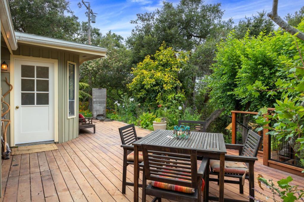 Secluded Retreat Bordering Conservation Land Privacy, Quiet, Endless Possibilities Rare opportunity to own a home on nearly 5 acres near Elkhorn Slough, in the community of Royal Oaks.This coastal property enjoys a unique microclimate cooler summers, mild winters, & fog-kissed mornings. The 2BR/1BA home features an open living area with hardwood floors, vaulted ceilings, and large bonus room perfect as a 3rd BR, studio/office. The kitchen offers cherrywood cabinetry and granite countertops. Enjoy privacy on the sandstone patio, canyon views from the redwood deck, or hike primitive paths to a view of Monterey Bay. Detached from the home nestled among oaks, are 2 inspiring hillside studios, ideal for creating: a writer's cottage, with built-in desk, and a light-filled artists retreat, with French doors that open onto a large deck with a peek of the slough. On the lower portion of the parcel, a contemplative garden invites reflection. Raised beds of organic herbs/veggies, 2 water features, and room for animals & possibly a second structure. Nature lovers will appreciate the abundance of wildlife on the property including 3 occupied barn owl nest boxes. This is a one-of-a-kind property with mild weather, privacy and quiet, yet minutes from Highway 1 or the 101. Sanctuary awaits.