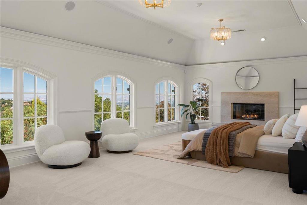 Situated at the end of a private cul-de-sac, this gated Saratoga estate offers sweeping views of the Bay and surrounding vineyard valleys. Designed for both privacy and entertaining, the property features a gated entry, discreet fencing, and a driveway with parking for 10+ cars. Inside, more than 7,500 sq ft of living space spans three levels, showcasing custom millwork, artisan glass, and expansive terraces. Highlights highlights include multiple guest suites, home office, music room, theatre, gym, and game rooms. The resort-style grounds include a pool, spa, and multiple terraces with space for gardens, a cabana, or vineyard. Just about five minutes to grocery stores, shopping, and amenities, and about ten minutes to Highway 85, this property combines seclusion with convenience. A rare opportunity to own a private Saratoga retreat at the summit of Silicon Valley.
