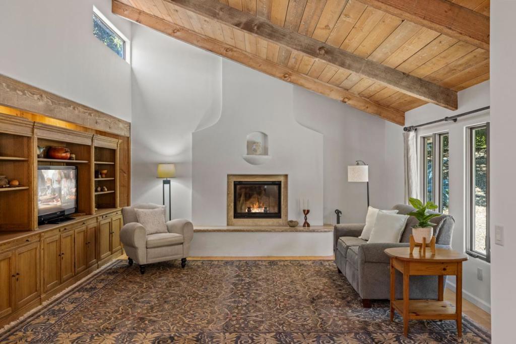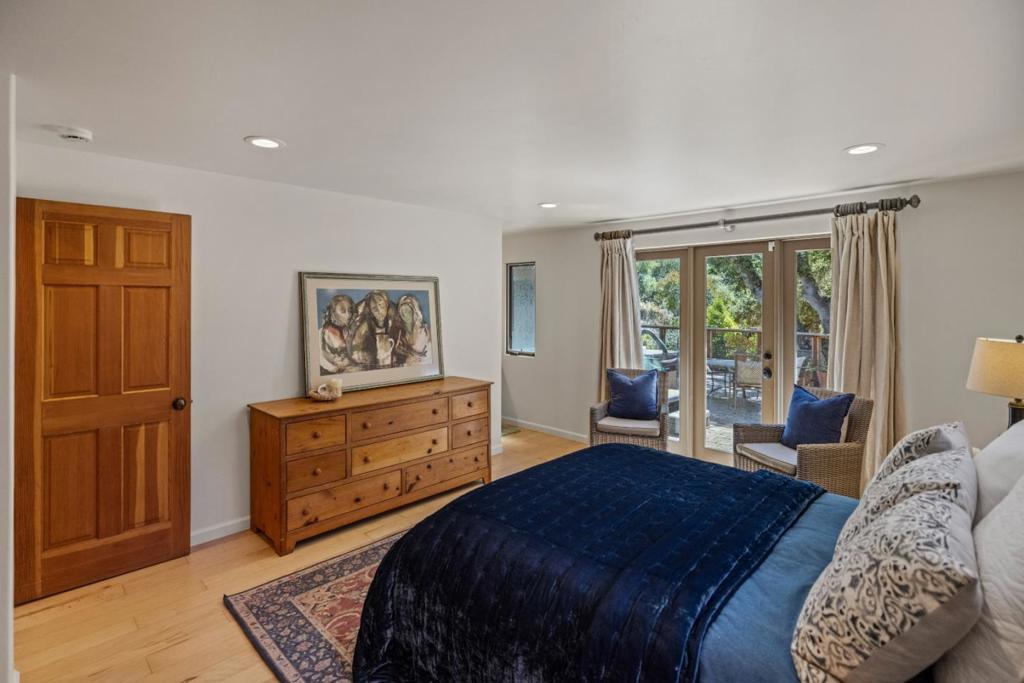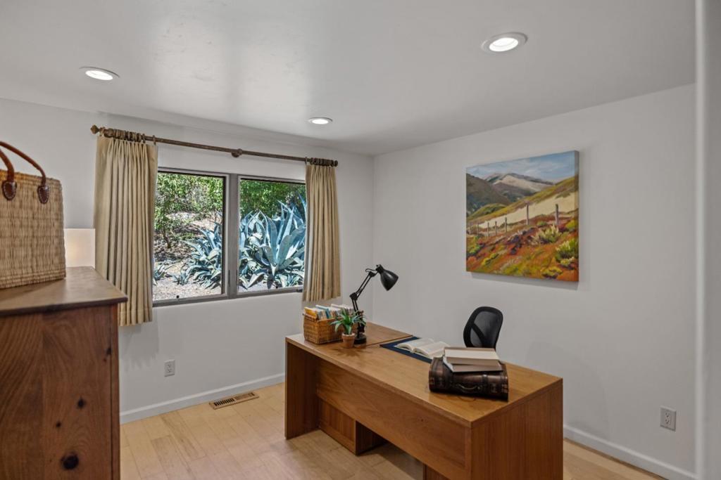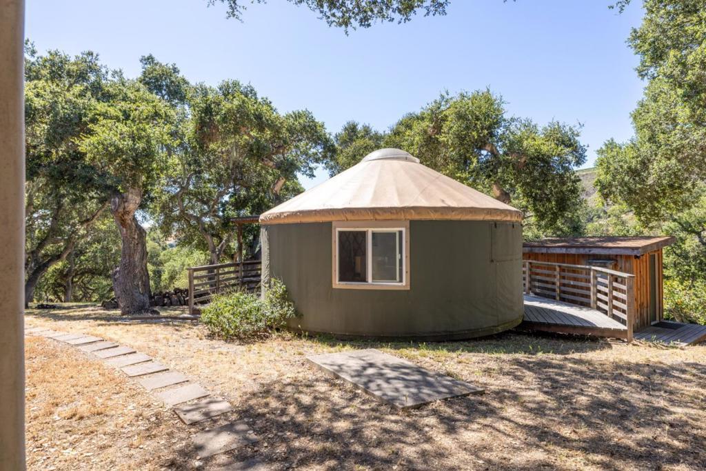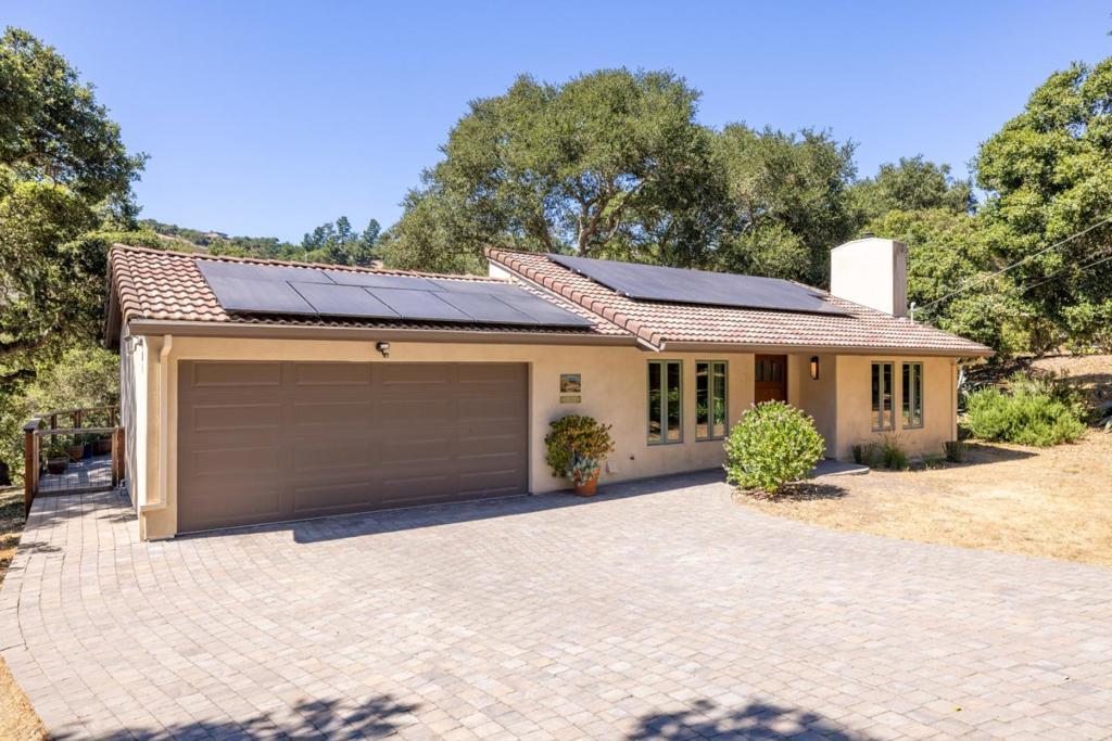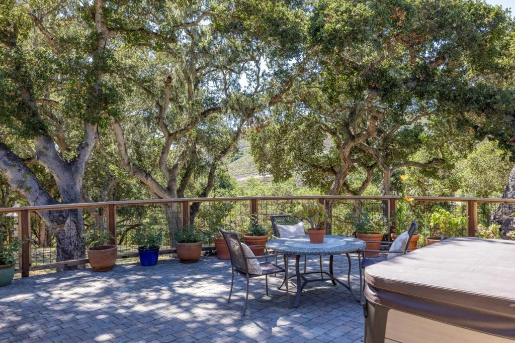 Although this fascinating home on two-and-a-half acres of golden land conveys a beautiful sense of remoteness and tranquility amid nature, it is within easy reach of anywhere you want to explore on the Monterey Peninsula. Its prime position within the Hidden Hills community of Carmel Valley places it midway between the Monterey-Salinas Highway 68 corridor and the base of Carmel Valley. Once inside, notice your gaze drawn instantly upward by an elegantly rustic, pitched ceiling meeting the top of a kiva-inspired wood-burning fireplace in the living room. Pass through an informal dining area to enter a gourmet chef's kitchen that features a center island with a chic, light wood countertop. Rich wood flooring runs throughout nearly every room of this three-bedroom dwelling with a calm, elemental Southwestern spirit that melds gorgeously with the surrounding countryside. Outside on an expansive, oak-enclosed patio, sink into the soothing waters of a spa tub as you breathe in the revitalizing scents of earth and trees. A separate yurt waits at the hill's edge, serving as a bonus room. Might it be your yoga studio? Or, perhaps, a library or private guest retreat? Here is a property that has mastered the art of versatility, and done so in a way that feels at once artful and profound.