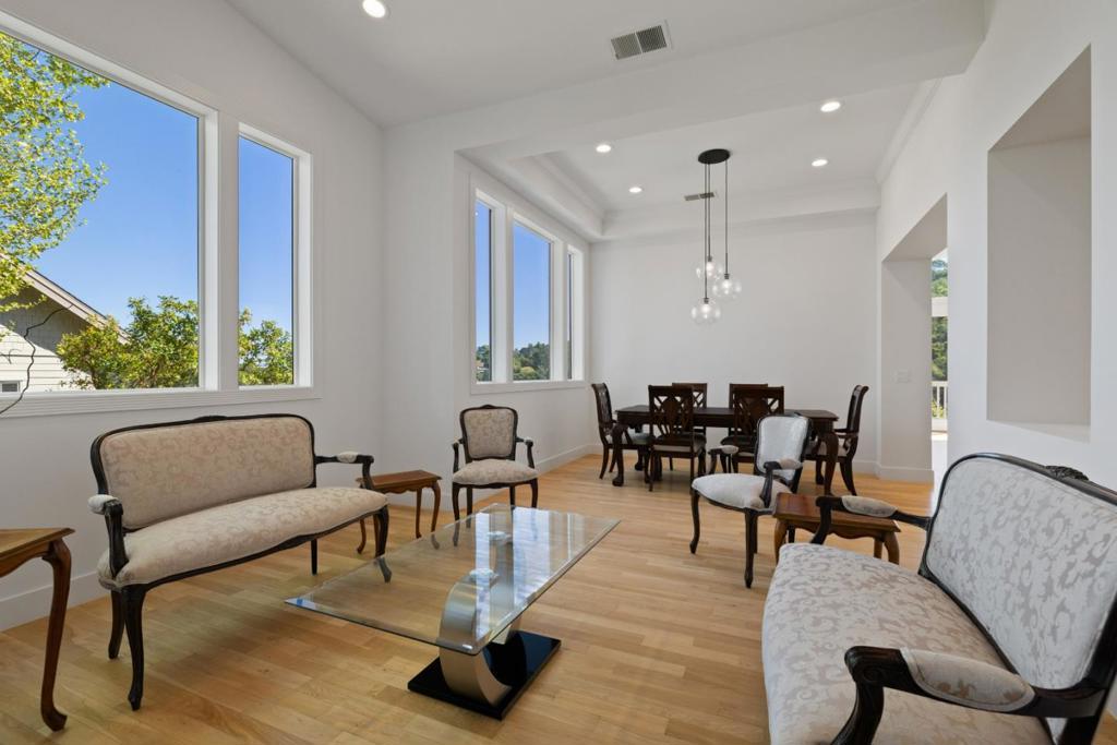 This approximately 3,200 sq. ft. home offers size, quality, and flexibility in a serene setting with beautiful valley views. Designed with high ceilings and abundant natural light, the floor plan perfectly balances formal and casual living. The main level features a formal living room, a cooks kitchen with a large island, granite countertops, and high-end appliances, along with two dining areas. The family room with fireplace opens to expansive decks, creating seamless indoor-outdoor living. Two bedrooms and two full bathrooms complete this level. The lower level includes a spacious primary suite with fireplace, walk-in closet, and a large bathroom. There are also two additional bedrooms, a full bath, and a second family room opening to the decks. Additional highlights include a wine room, inside laundry, a three-car garage, parking for three cars in front of the garage plus two guest parking spaces, a huge full-height storage area, refinished wood floors, and carpet. An excellent option for multi-generational living or work-from-home flexibility. Conveniently located near highways, shops, and restaurants. Well maintained and pristine inside and out.