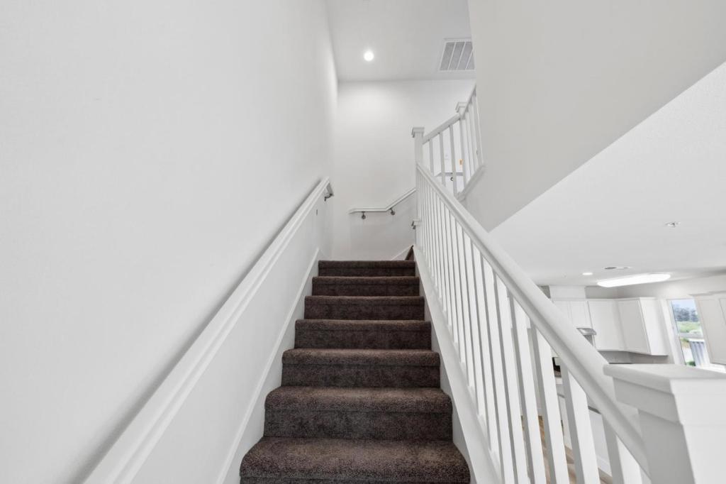 Hillcrest Residences' sales office is located at 511 Ohlone Pkwy Watsonville, CA 95076. This 3-bedroom, 3.5-bath townhome offers 1,622 sq. ft. of thoughtfully designed living across three levels. The Playa floor plan includes ensuite bedrooms on each floor, a half bath, and multiple spaces for both relaxation and productivity. Designer upgrades and a neutral color palette give the home a clean, modern aesthetic from countertops to flooring. The first level features a private ensuite bedroom and a tandem 2-car garage with storage. On the main level, the open-concept kitchen connects seamlessly to the dining and great rooms. A built-in nook adds flexibility for a home office or reading-nook, and the kitchen opens to a large private balcony. Upstairs, the primary suite includes two closets, bathroom with double sinks, and a stand-alone shower. Additional features include luxury plank flooring and CAT-5 hardwired internet for enhanced connectivity. Community amenities will include walking and biking trails, a sports court, fitness par course, bocce ball court, BBQ areas, picnic tables, and a children's play area.